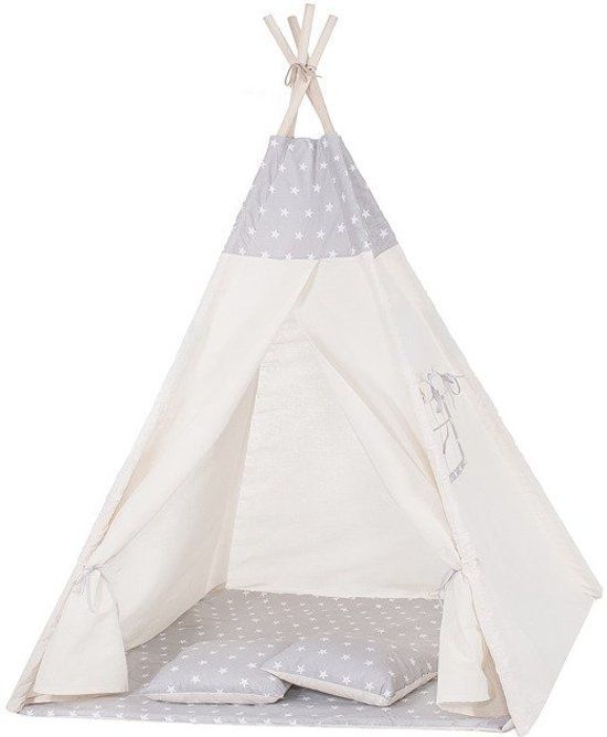 Tipi Zelt Wigwam beige mit grau 100% Baumwolle H160xB120xT100 cm Sternenmotiv ink