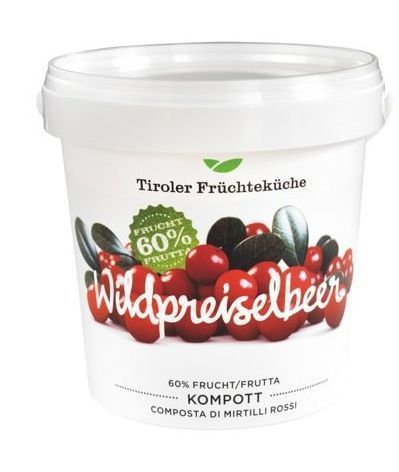 Tiroler Früchteküche Wildpreiselbeer Kompott 1 KG 1 bis 6 Stck
