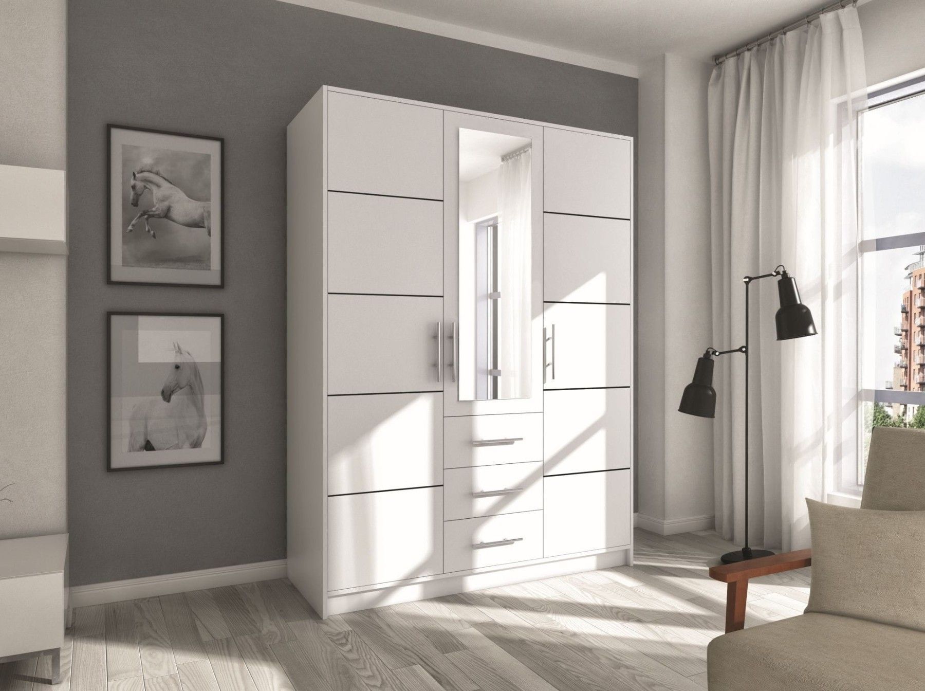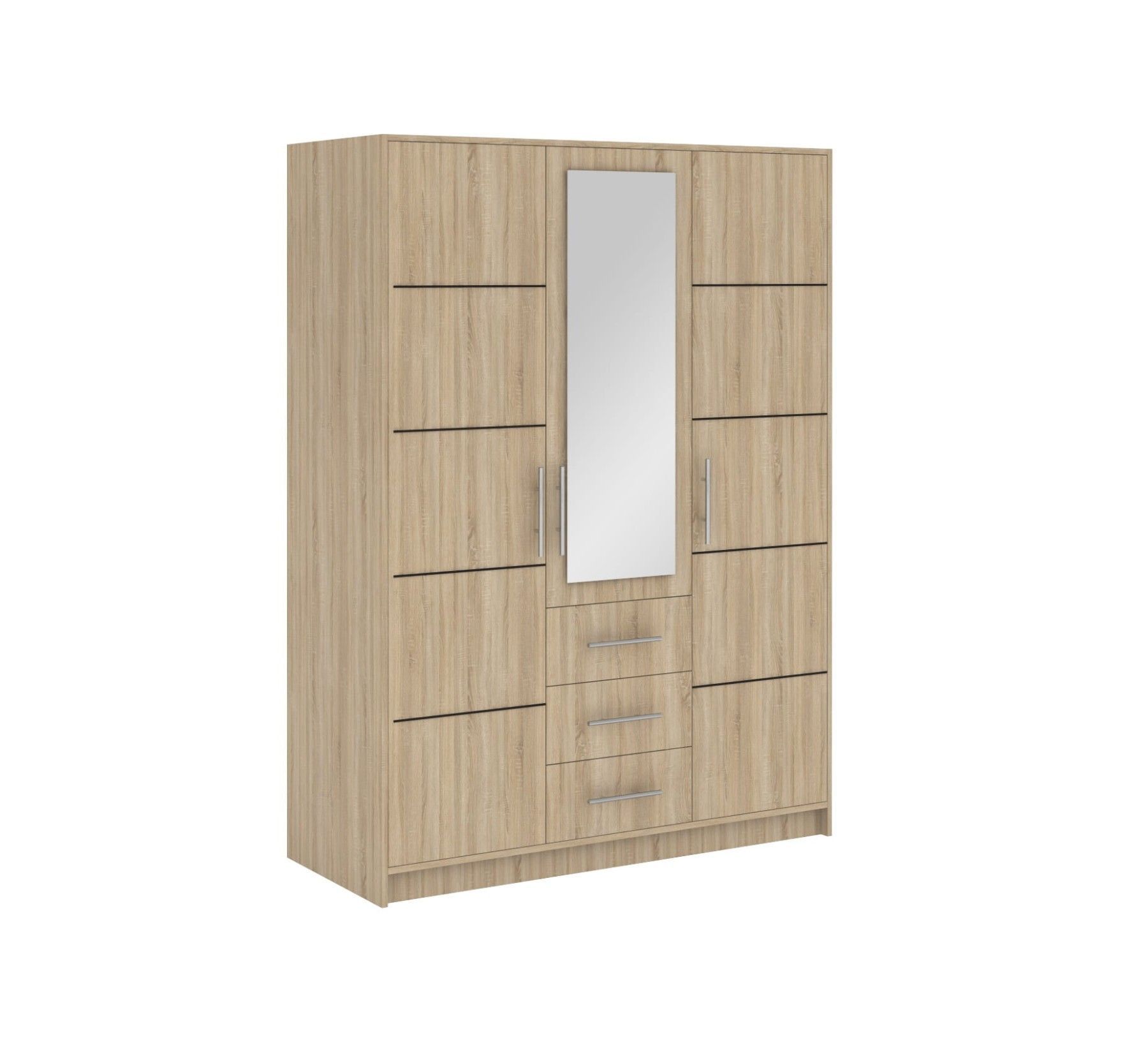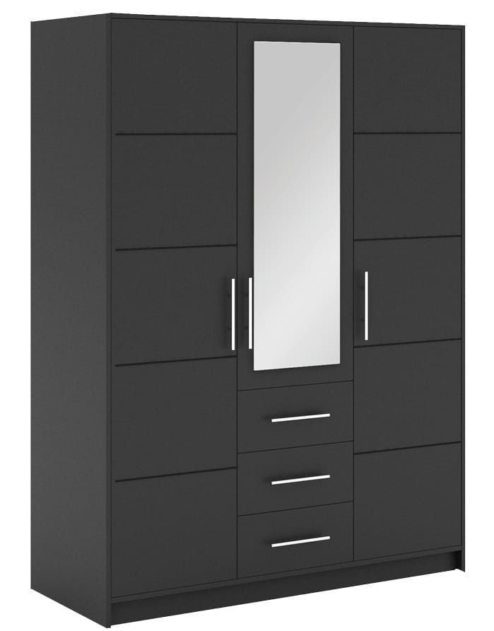 017666076782 Schrank - TISA SPEZIFIKATION Ma ße: Breite: 147 cm Höhe: 200 cm Tiefe: 58 cm Farb e: Eiche sonoma + Spiegel Weiß + Spiegel Eiche Wellington + Spiegel Graphit + Spiegel Produktbeschreibung Kleiderschrank ist aus laminierter Platte. Der Kleiderschrank hat drei tradi