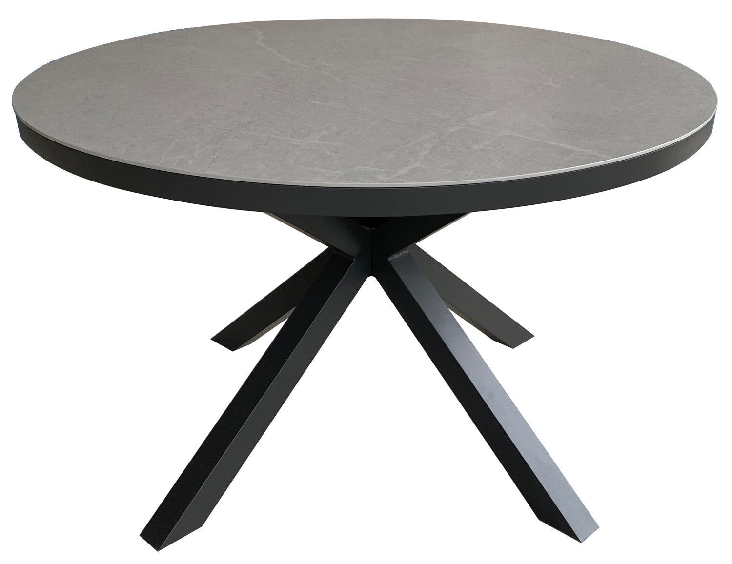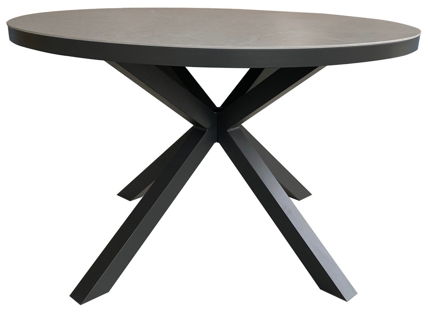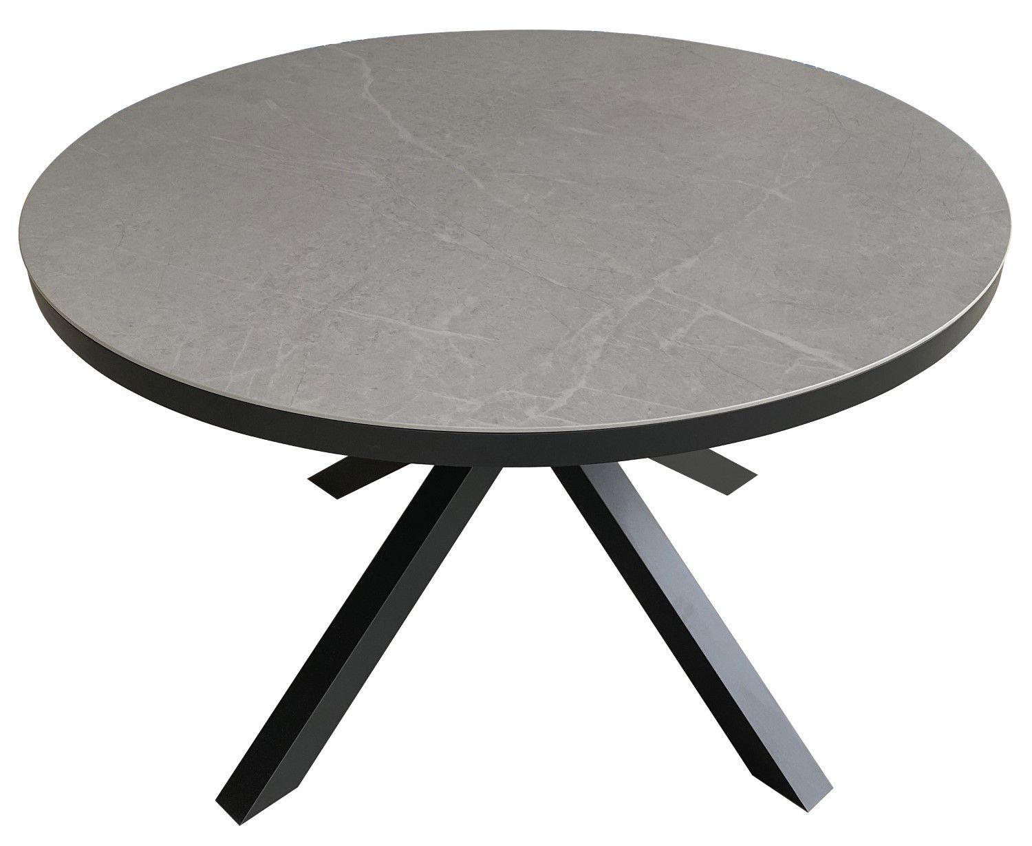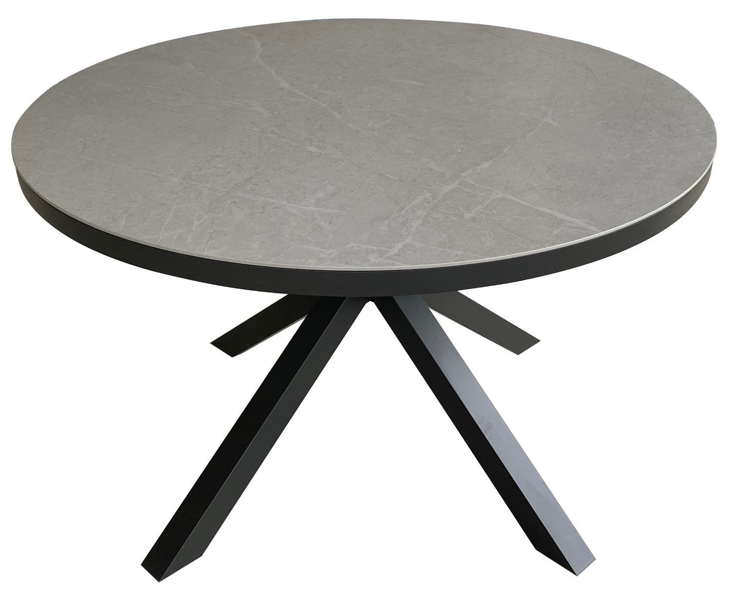 Tisch Almeria - 120 cm rund - gesinterter Stein hellgrau - Gestell Kreuz-Form