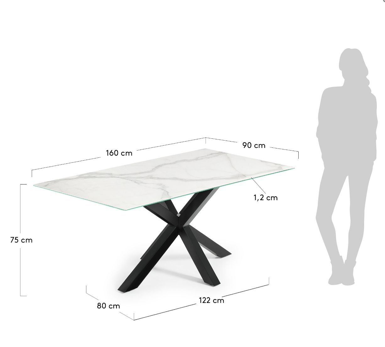 Tisch Argo 160 x 90 x 75 cm Porzellan Kalos blanco, schwarze Stahlstruktur Neu