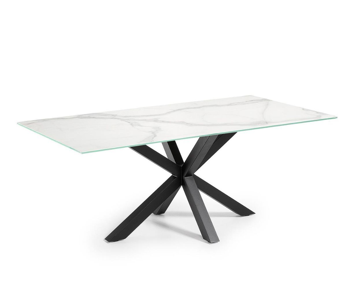 Tisch Argo 180 x 100 x 75 cm Epoxidschwarz und Kalos blanco Glas, schwarze Neu