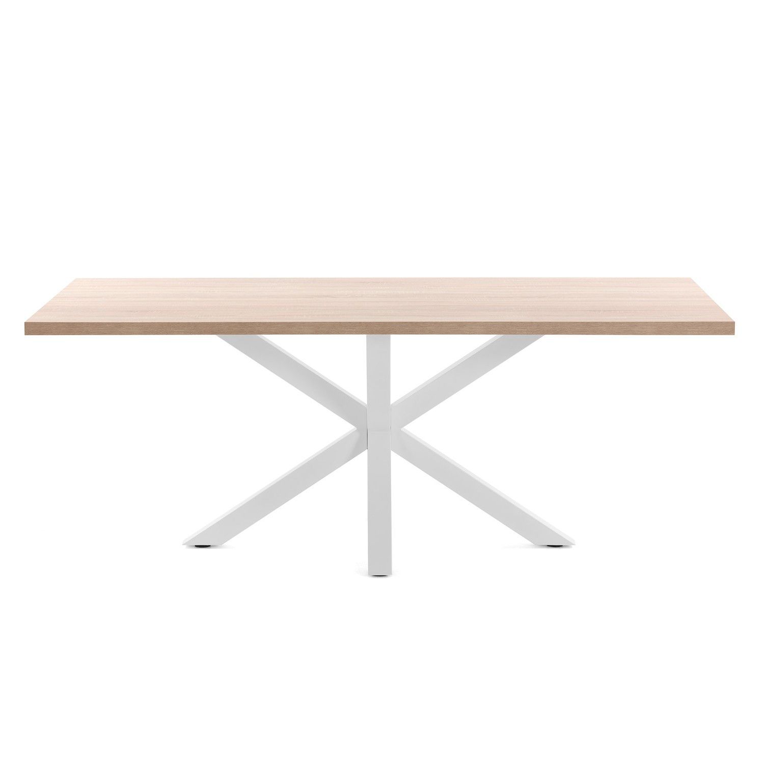 Tisch Argo 200 x 100 cm mit Melamin natur und weißen Stahlbeinen