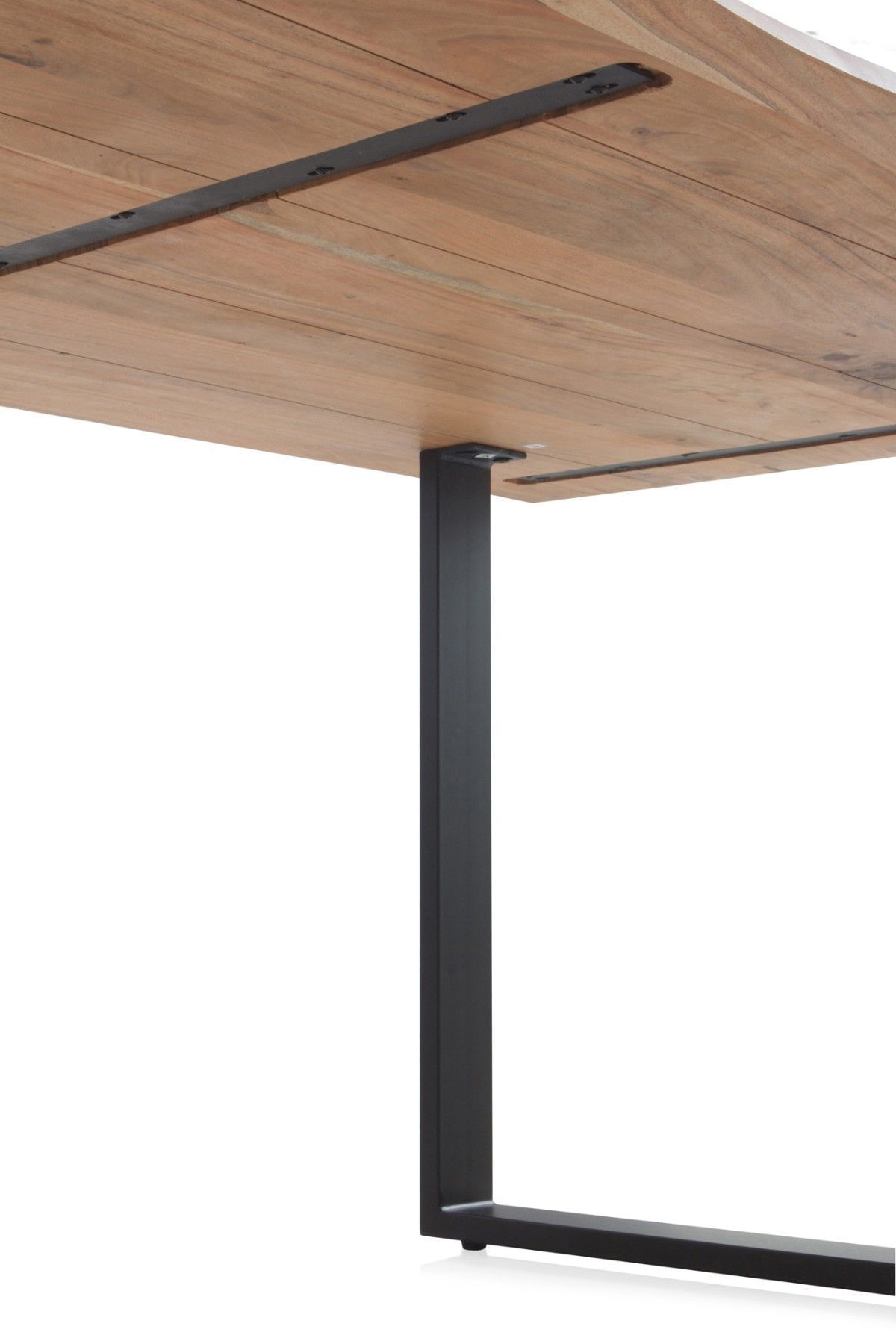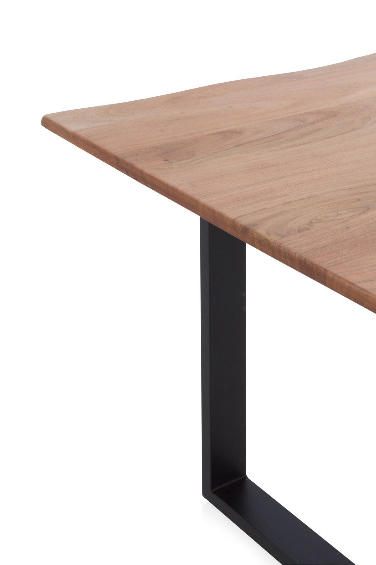 Tisch aus massivem Akazienholz 160 x 90 cm mit schwarzen Metallbeinen