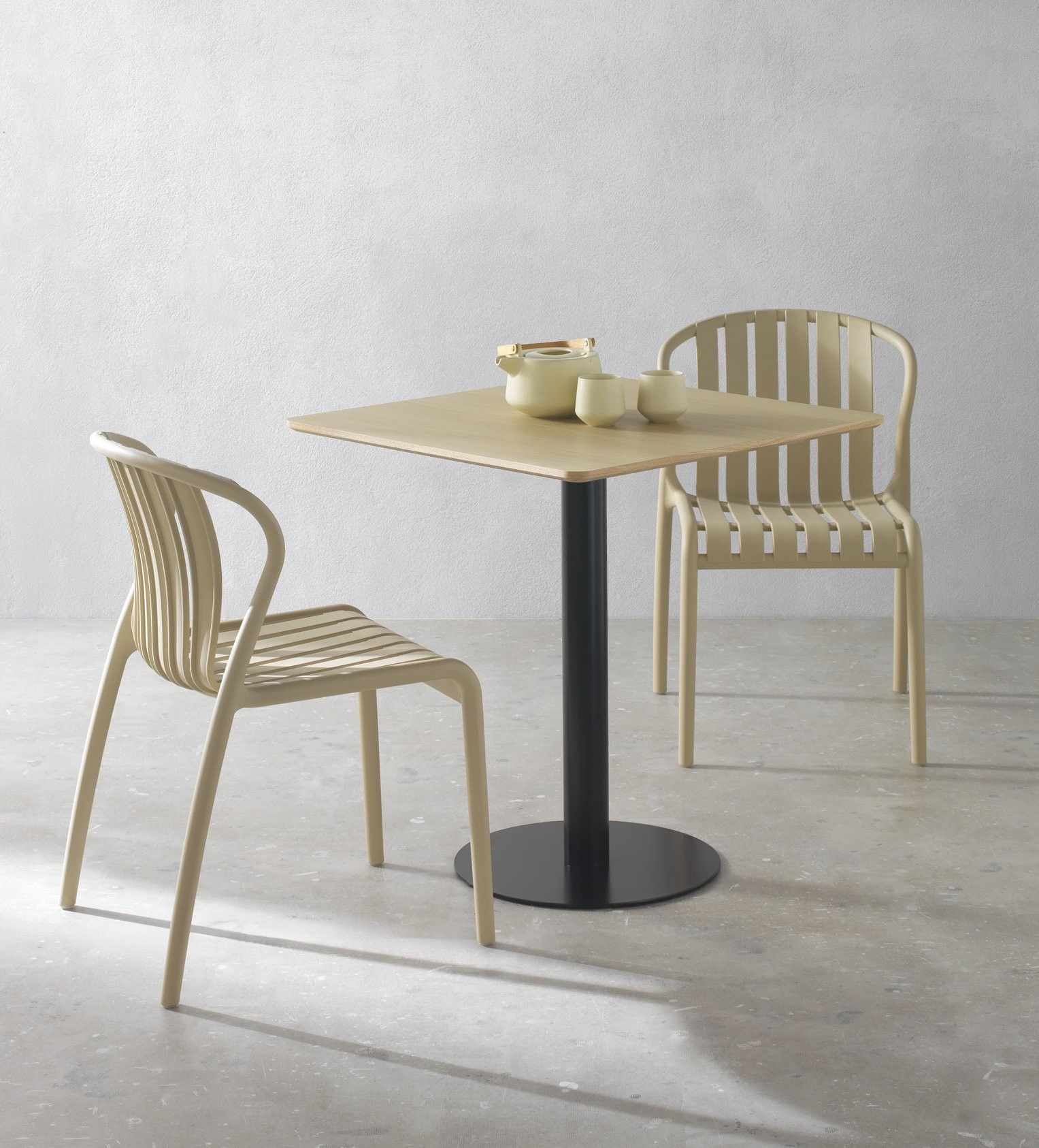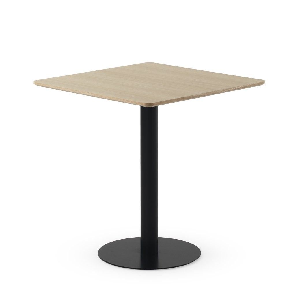 Tisch aus Melamin in Esche, Mittelfuß aus schwarzem Metall 70x70