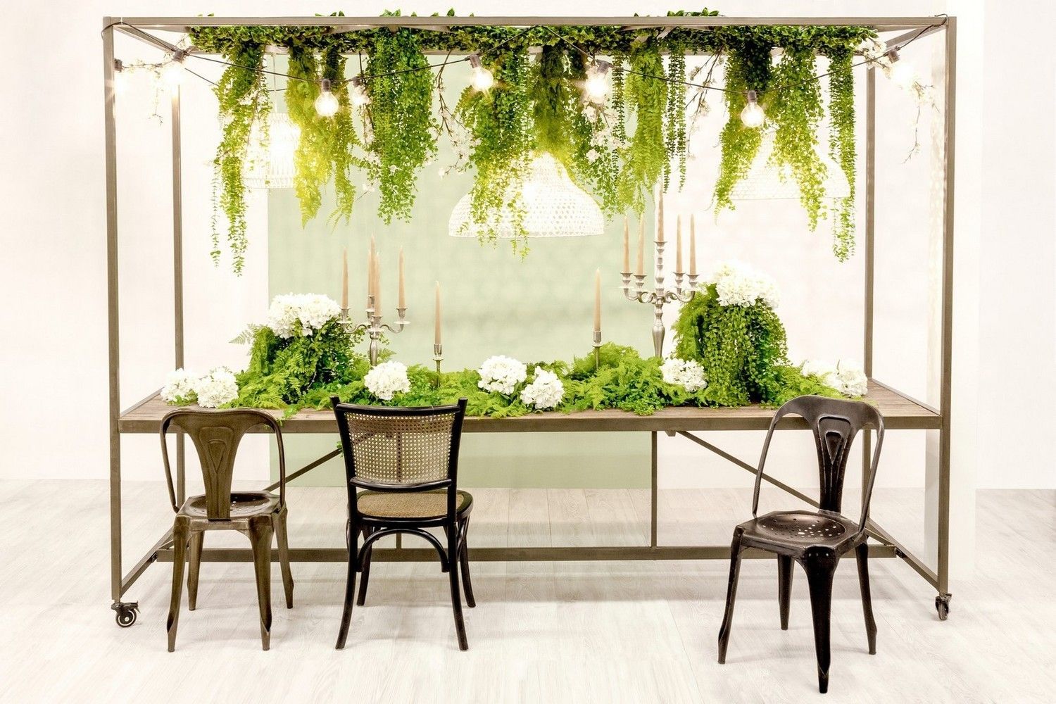 Tisch Ausstelltisch 310 x 90 x 210 cm Gestell aus Stahl Tischplatte aus Tanne