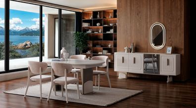 Esszimmer-Set mit Tisch, 6 Stühlen, Sideboard und Spiegel