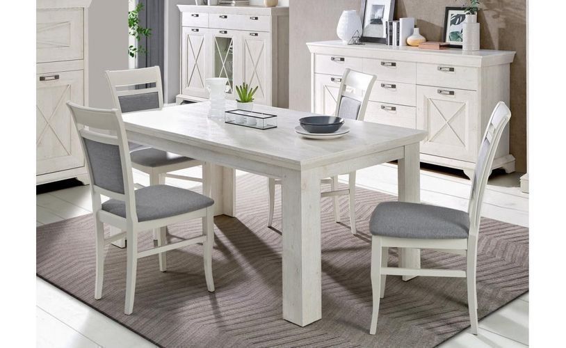 Tisch Kashmir KSMT40, Küchentisch, Esstisch ausziehbar 160-207 cm (Pinie Weiß)