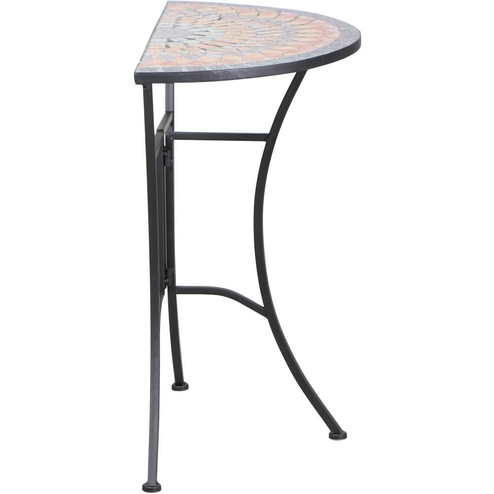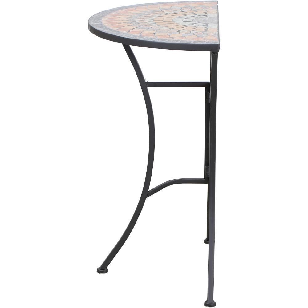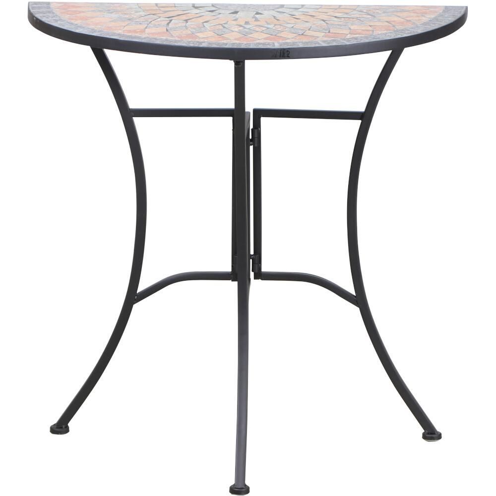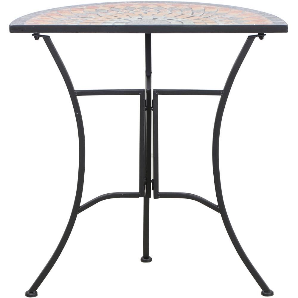 SIENA GARDEN Tisch Prato halbrund 70 cm Gestell aus Stahl in matt schwarz, Tischplatte aus Kerami