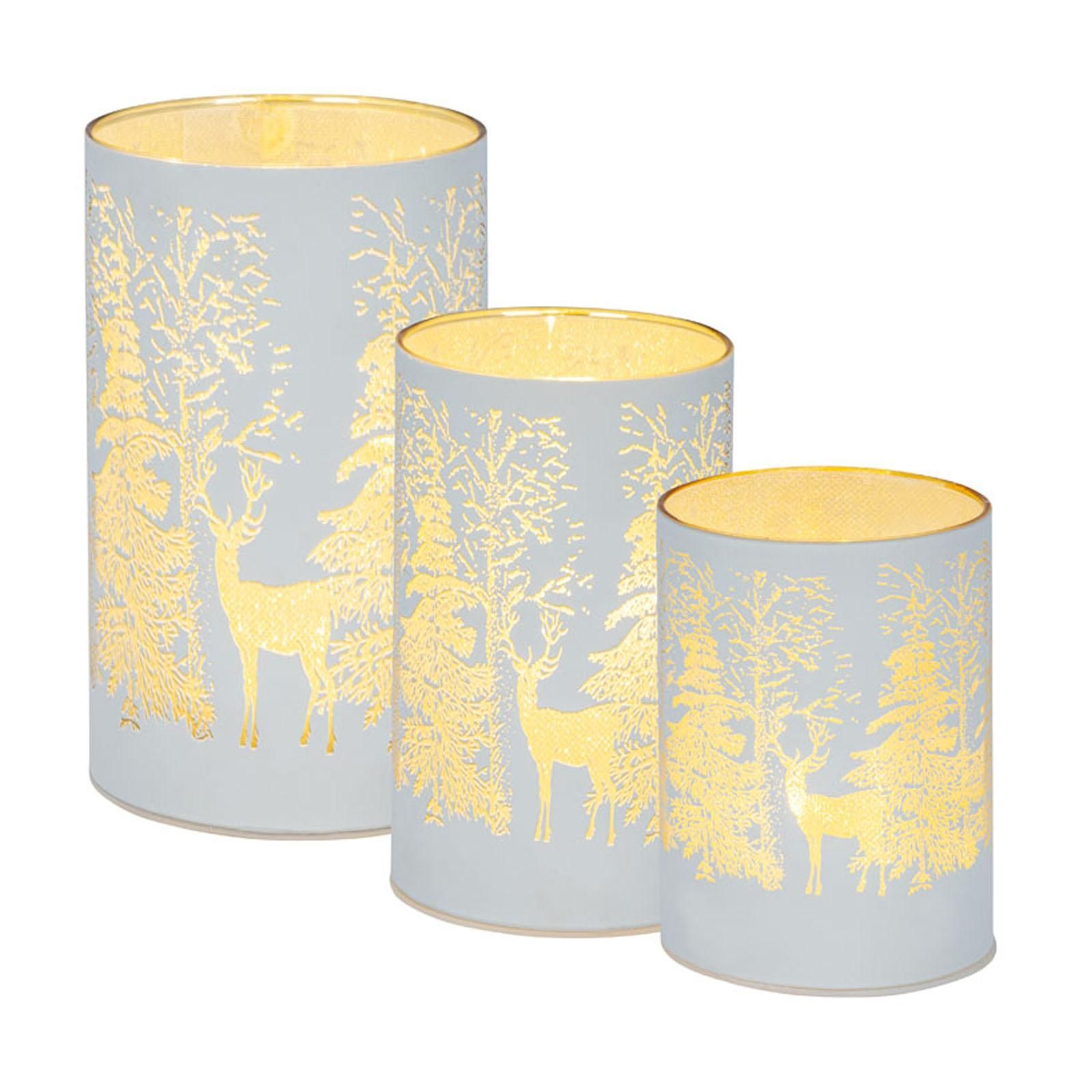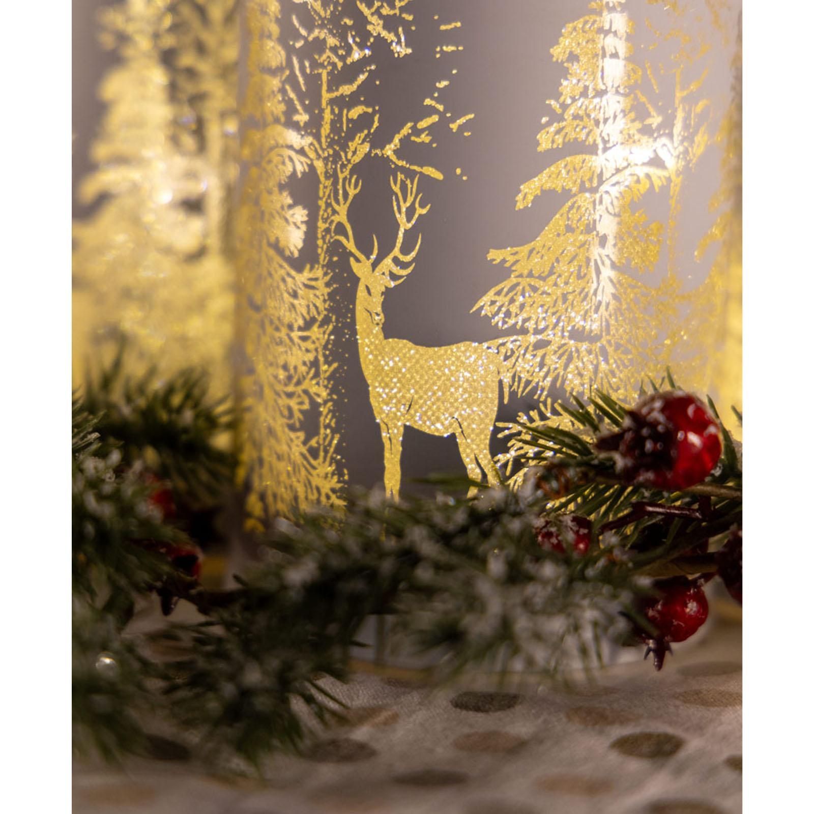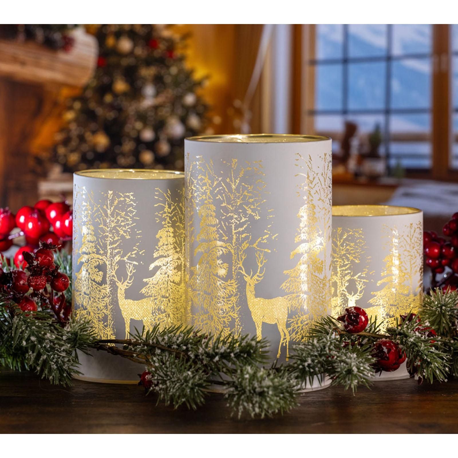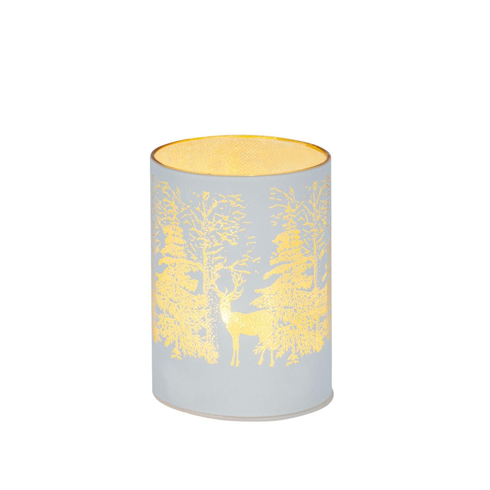 Tisch-Windlicht 10 x 7,5 cm weiss Hirsch Weihnachts-LED Glaswindlicht Lichtglas