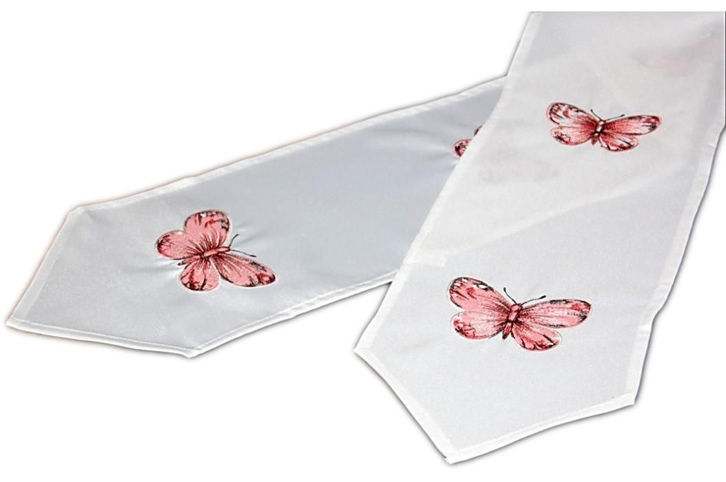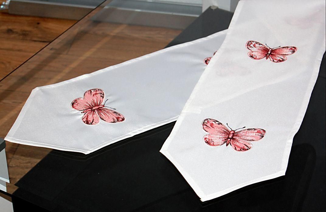 Tischband 20x145 Schmetterlinge Rosa Stickerei Tischläufer Tischdekoration Frühling S