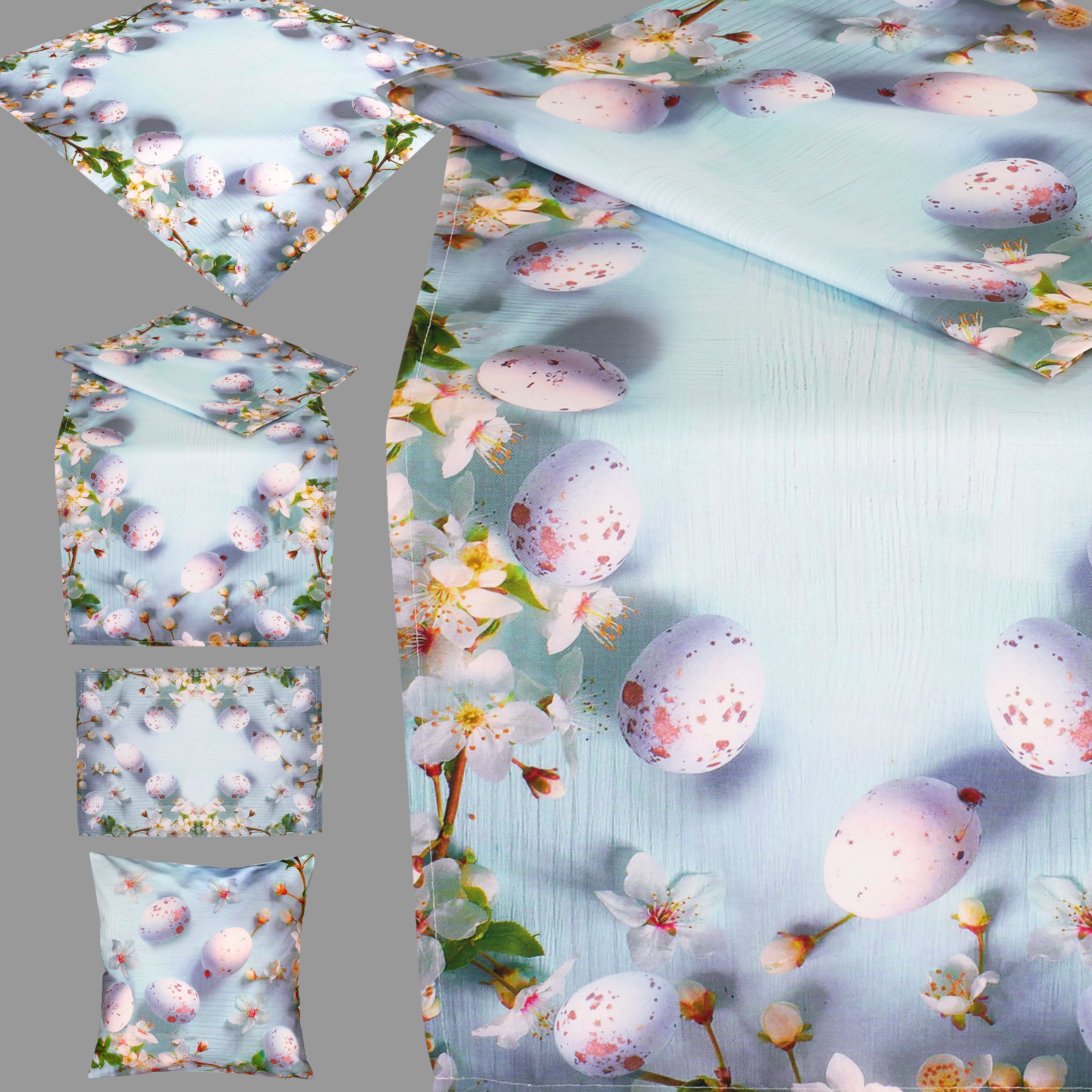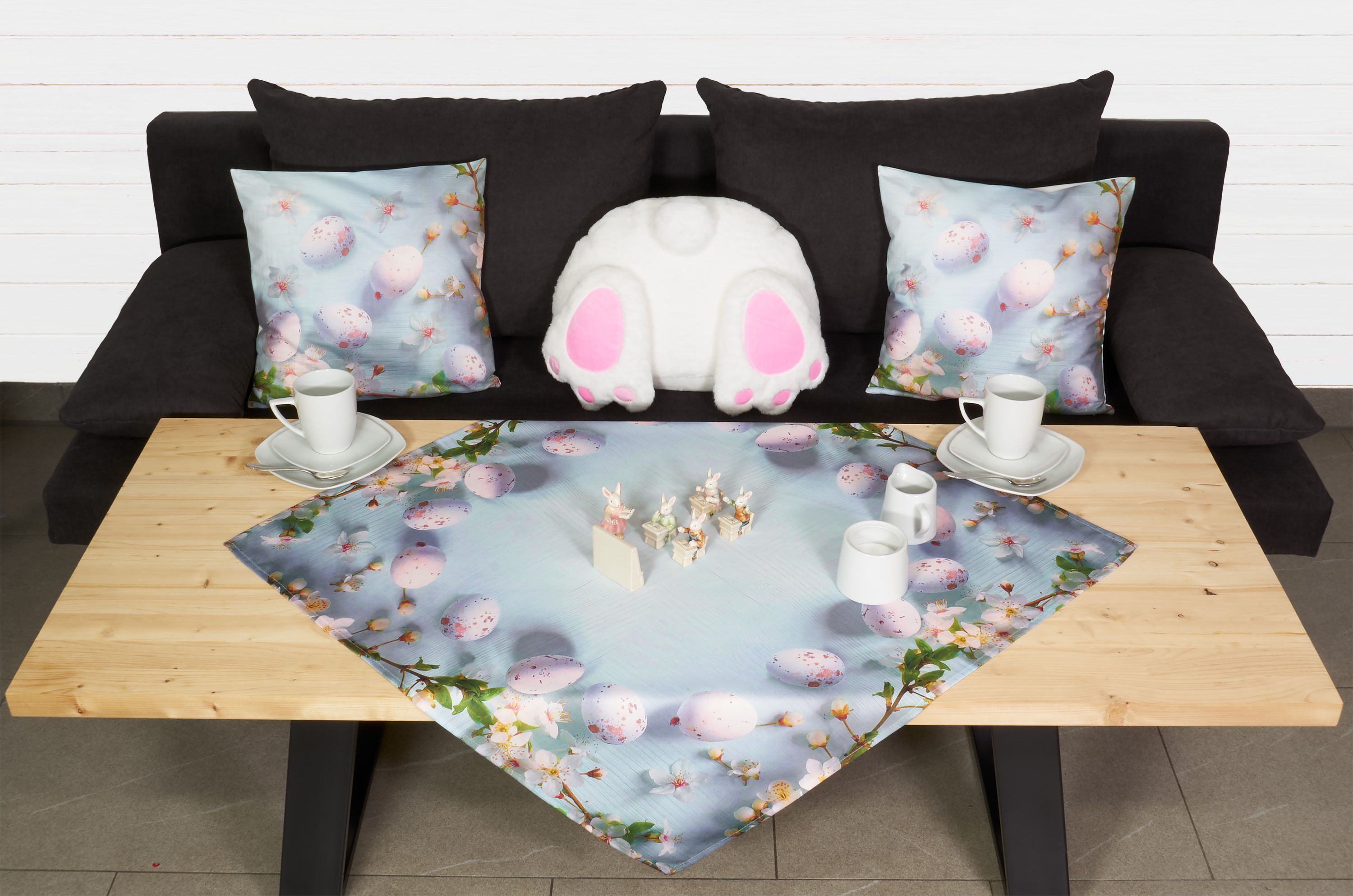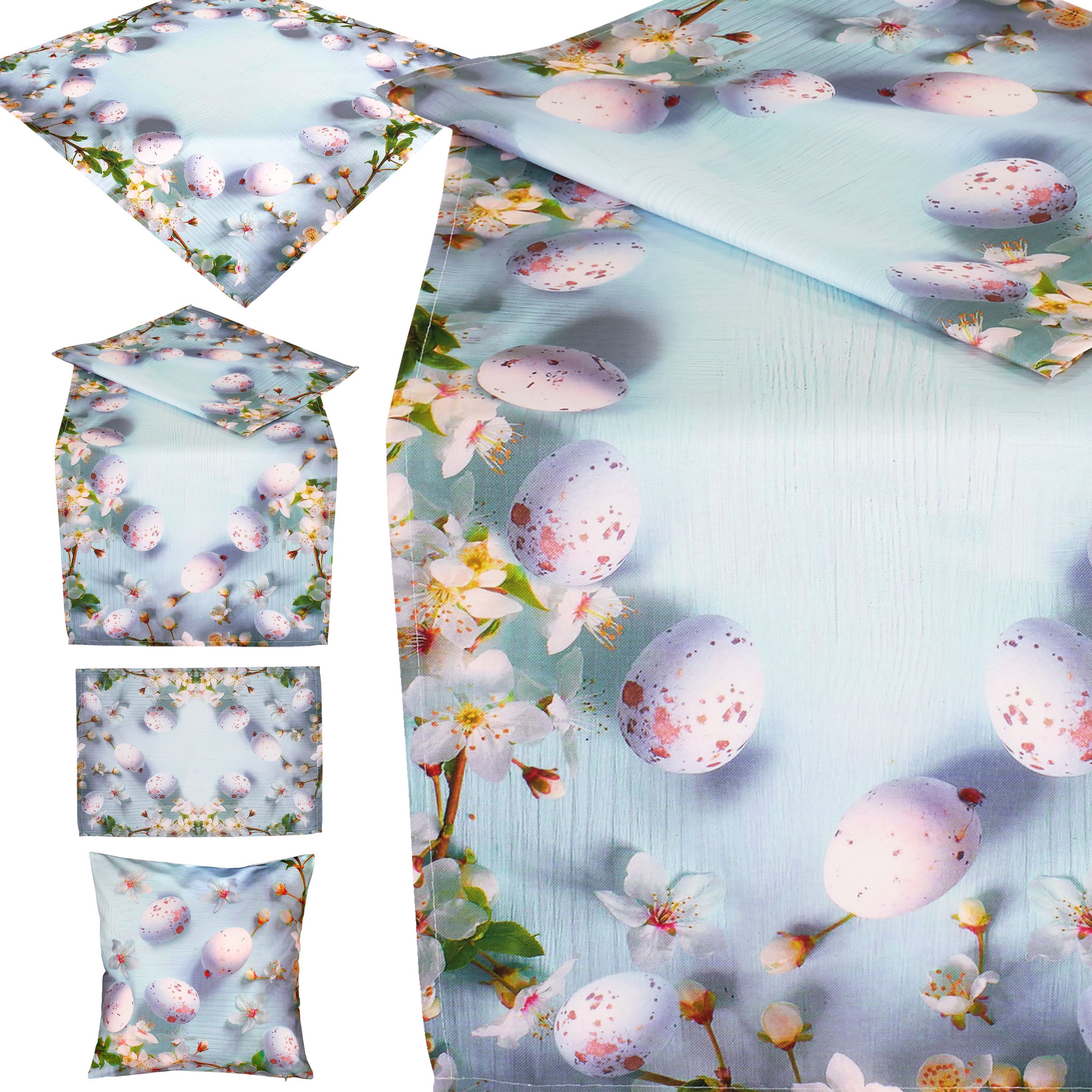 Tischdecke Ostern Tischläufer Kissenbezug Eier Osterdekoration Hellblau Rosa