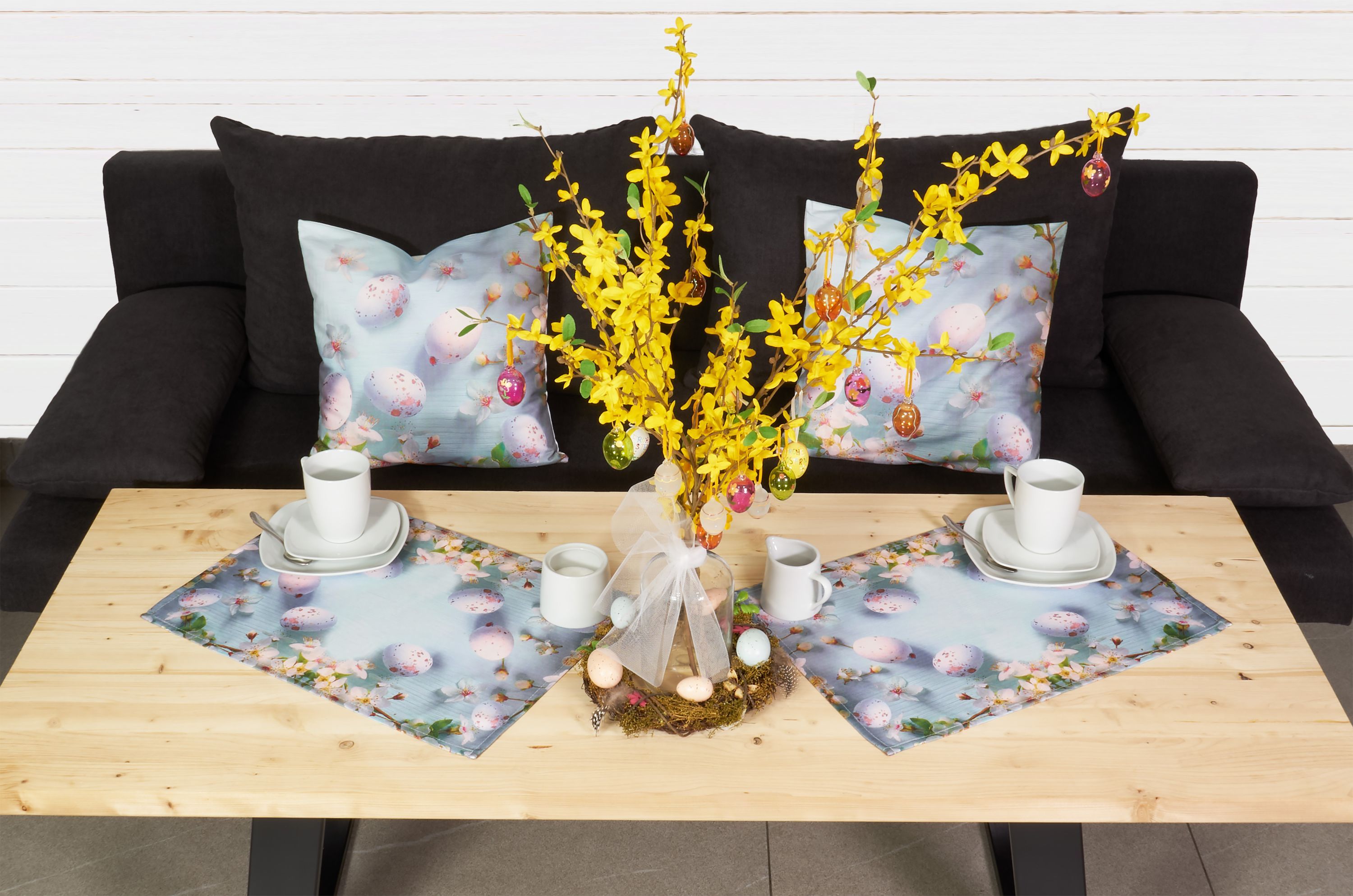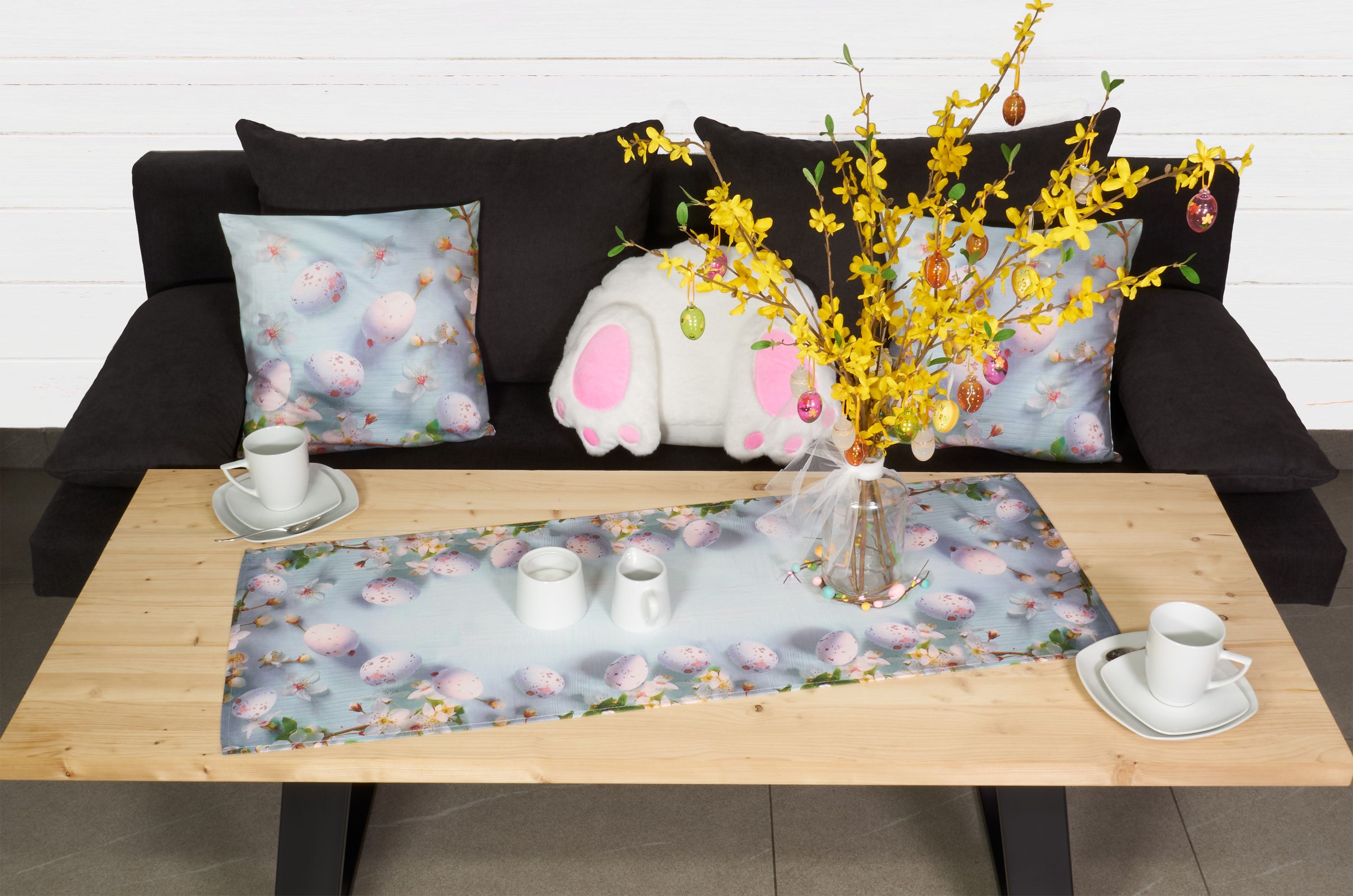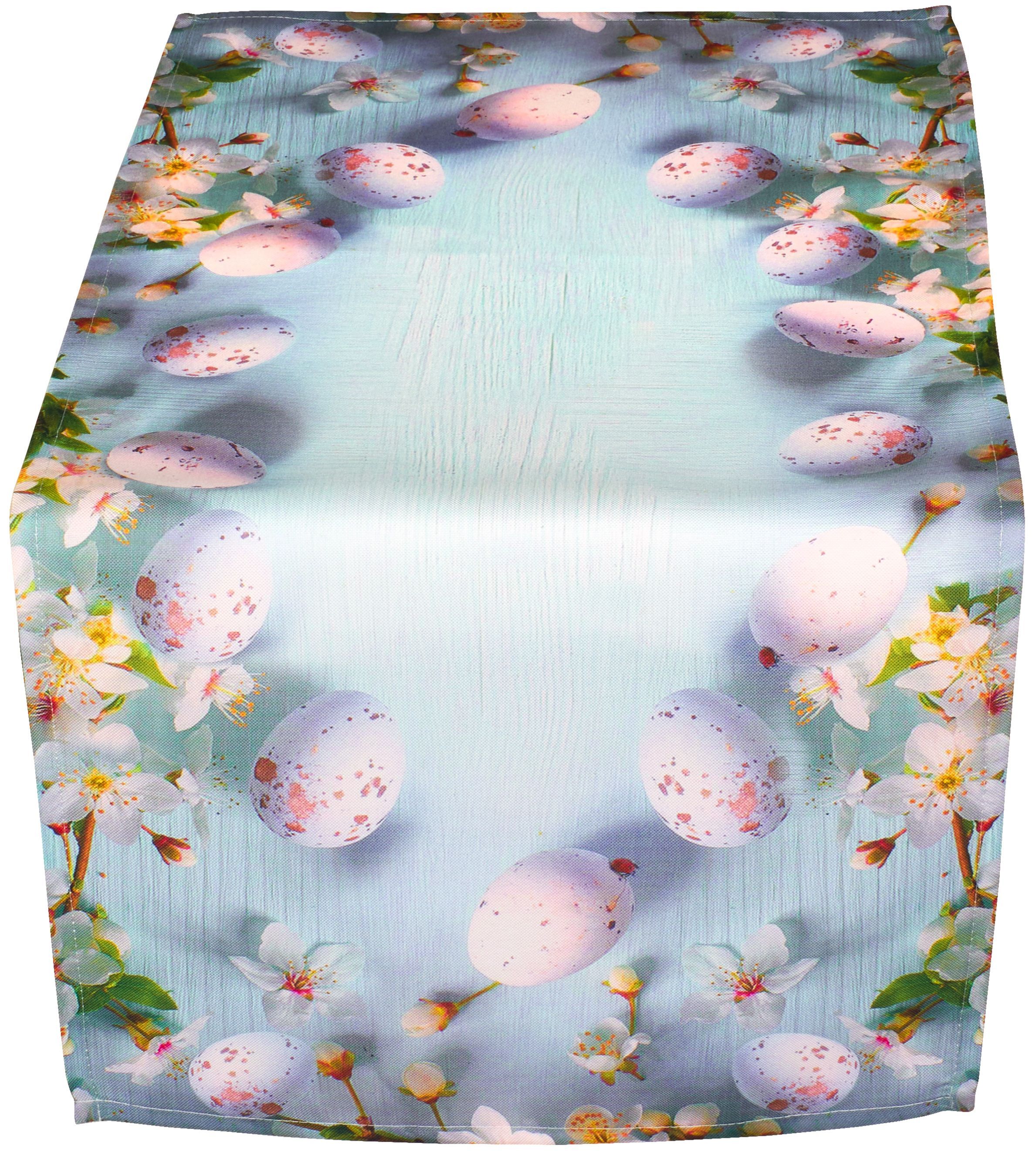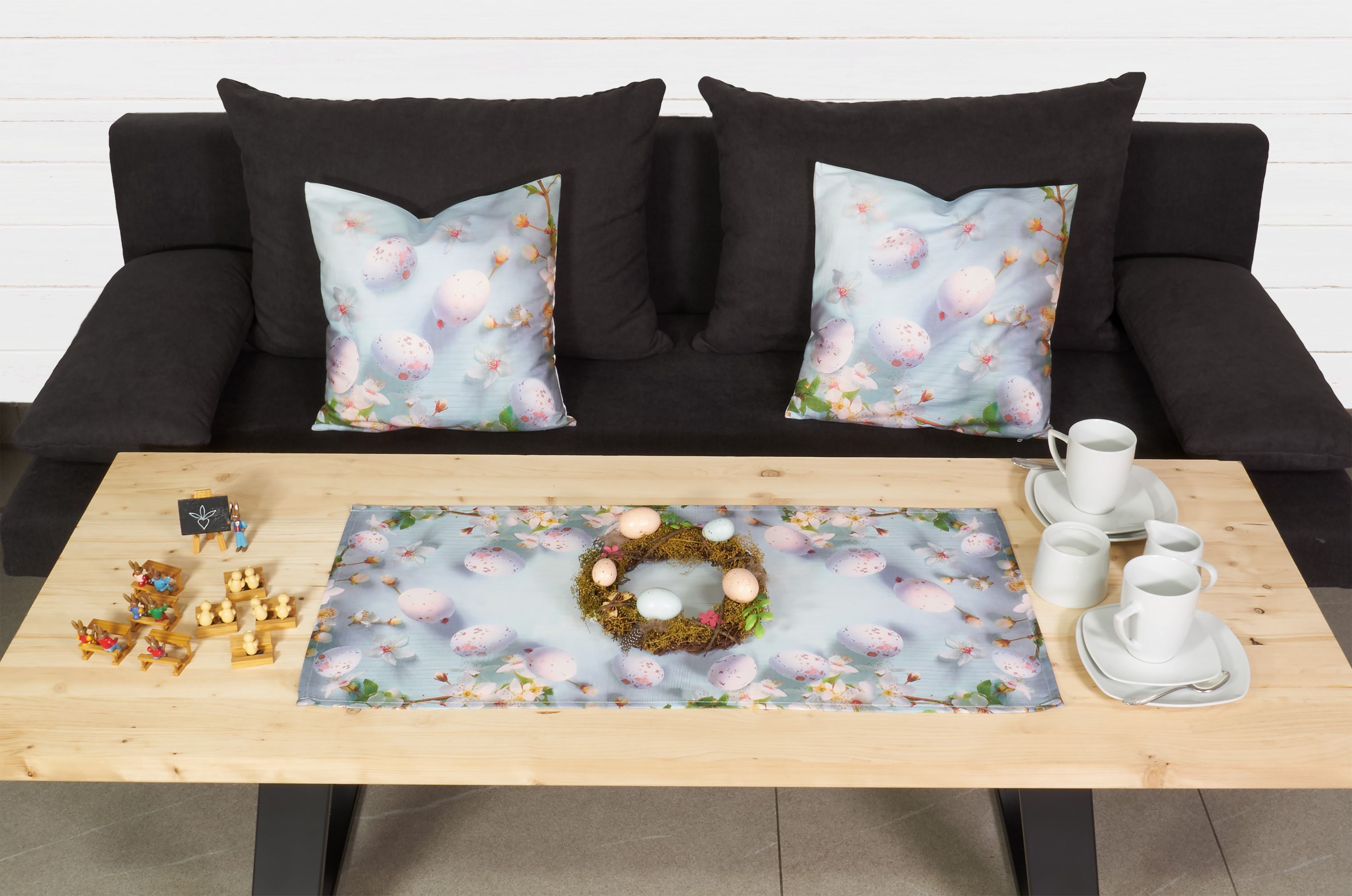 Tischdecke Ostern Tischläufer Kissenbezug Eier Osterdekoration Hellblau Rosa