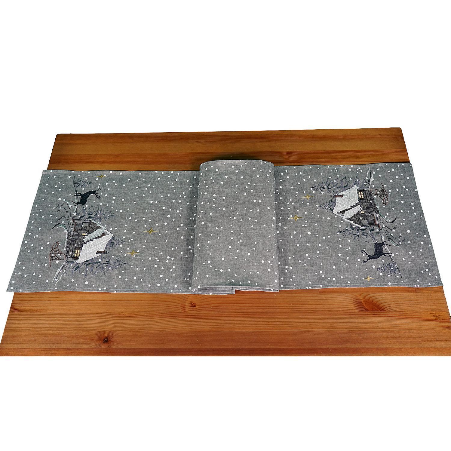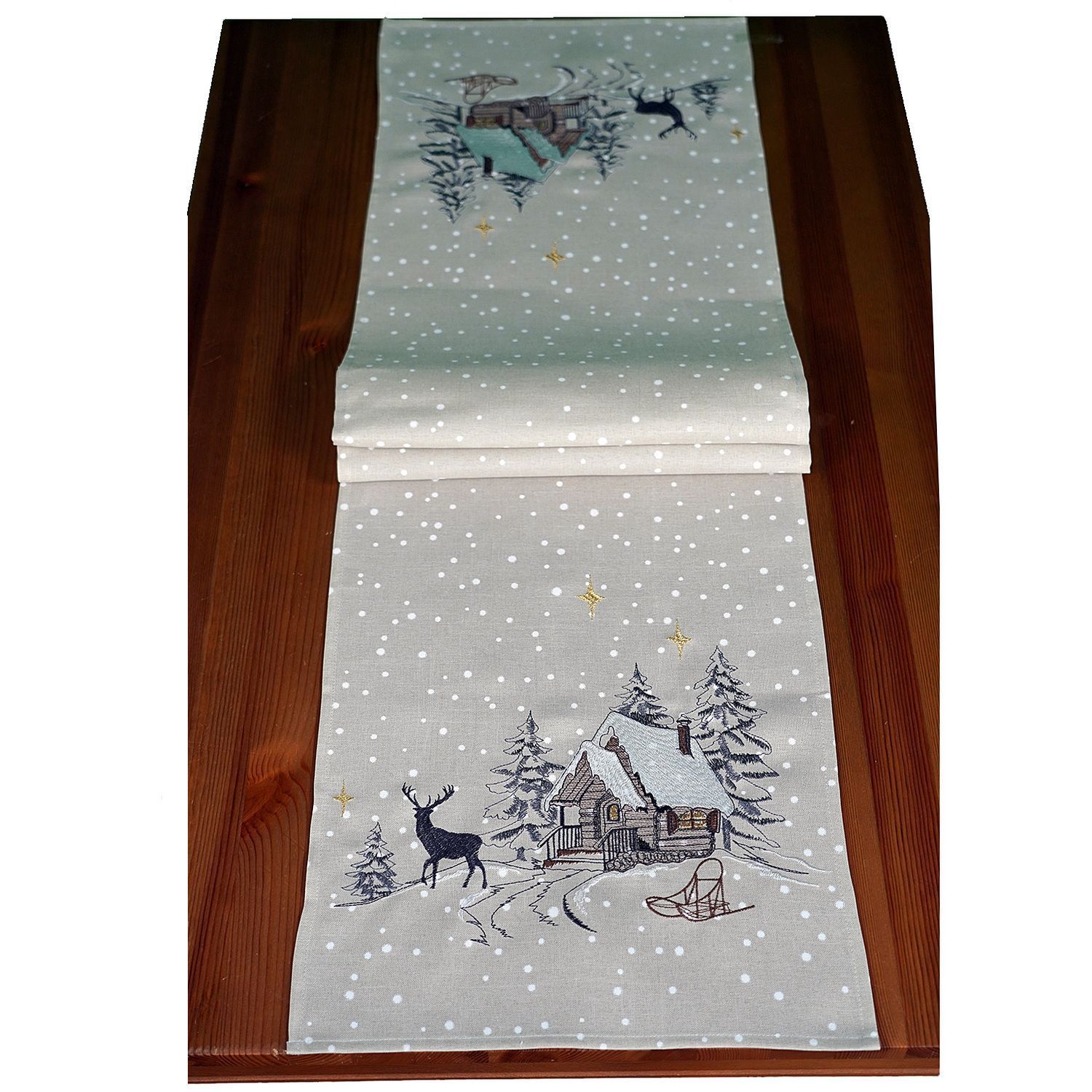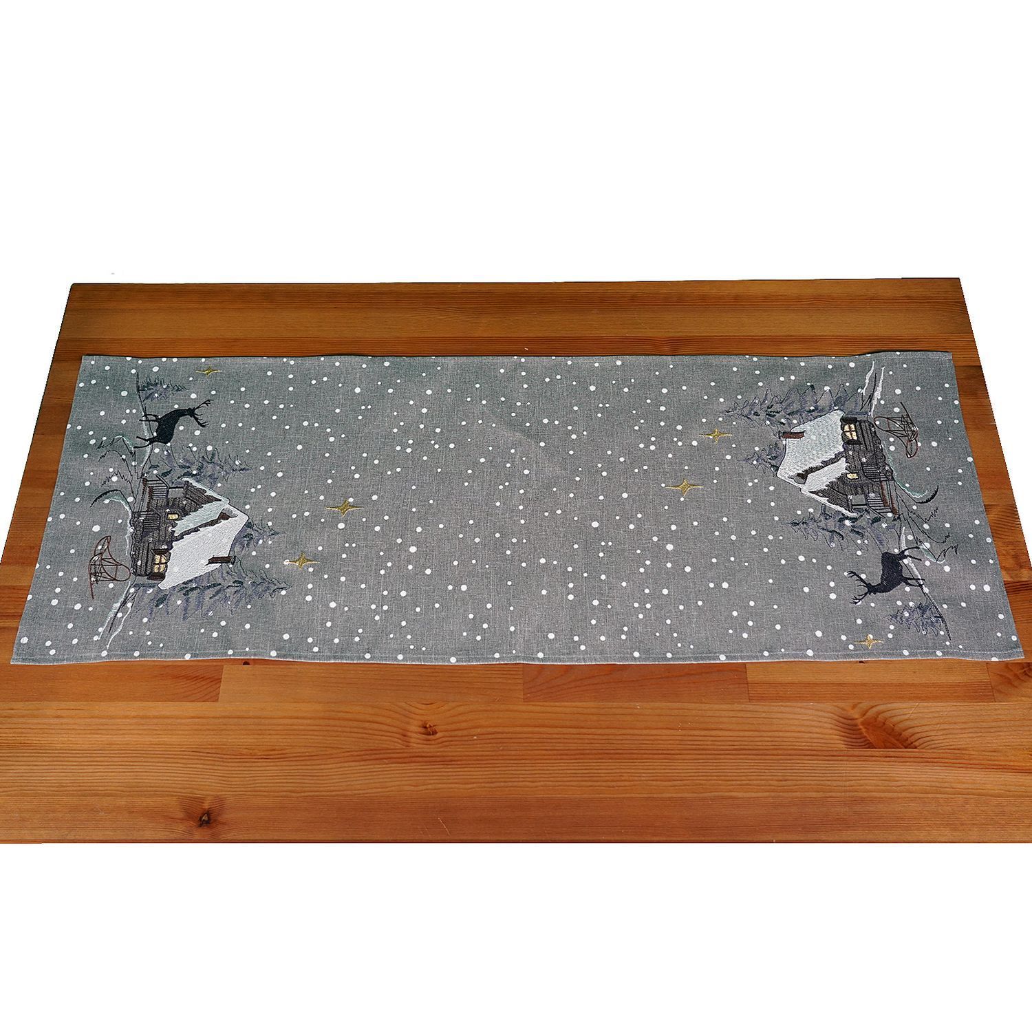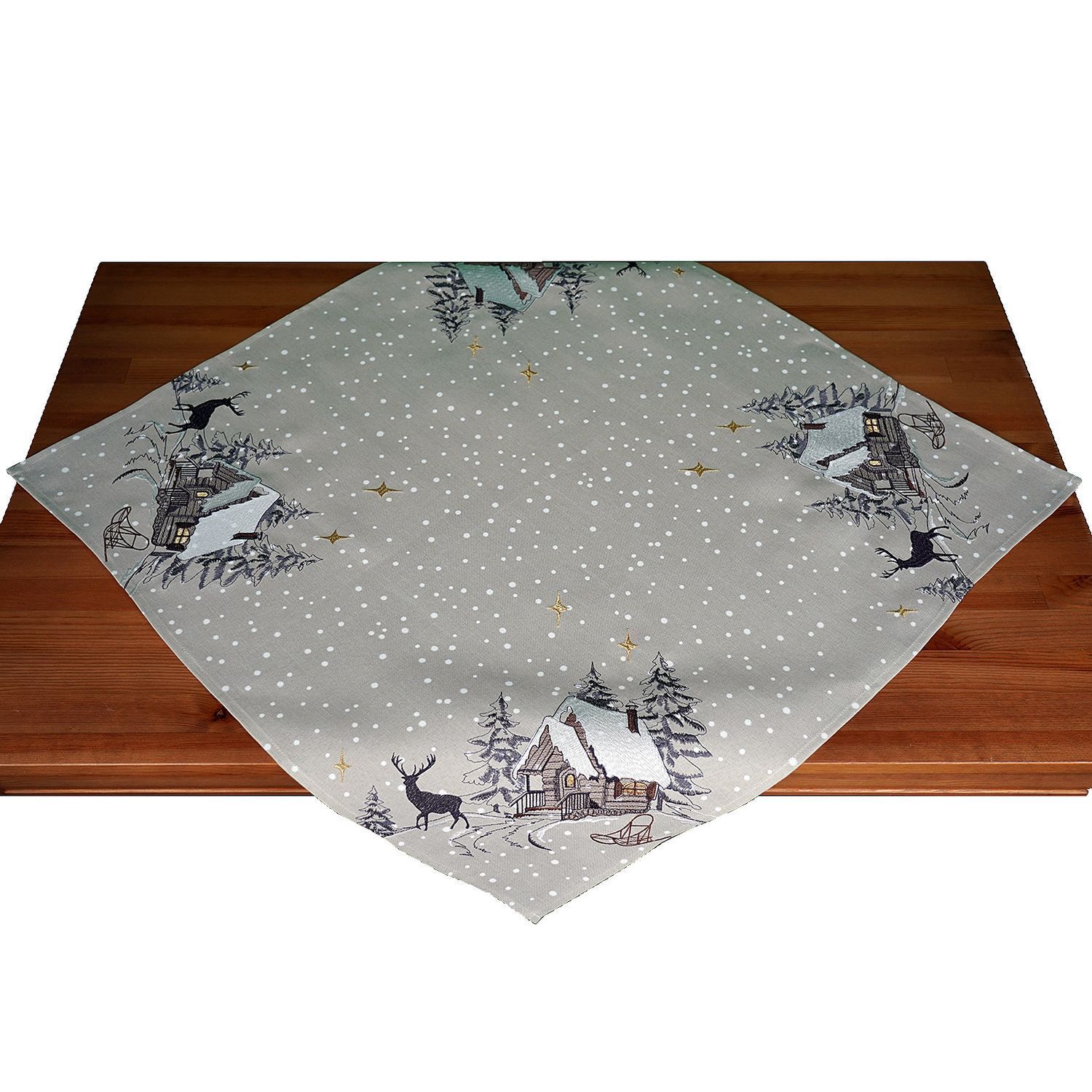 Tischdecke Stickerei Winterwald Tischtuch Weihnachtsdekoration