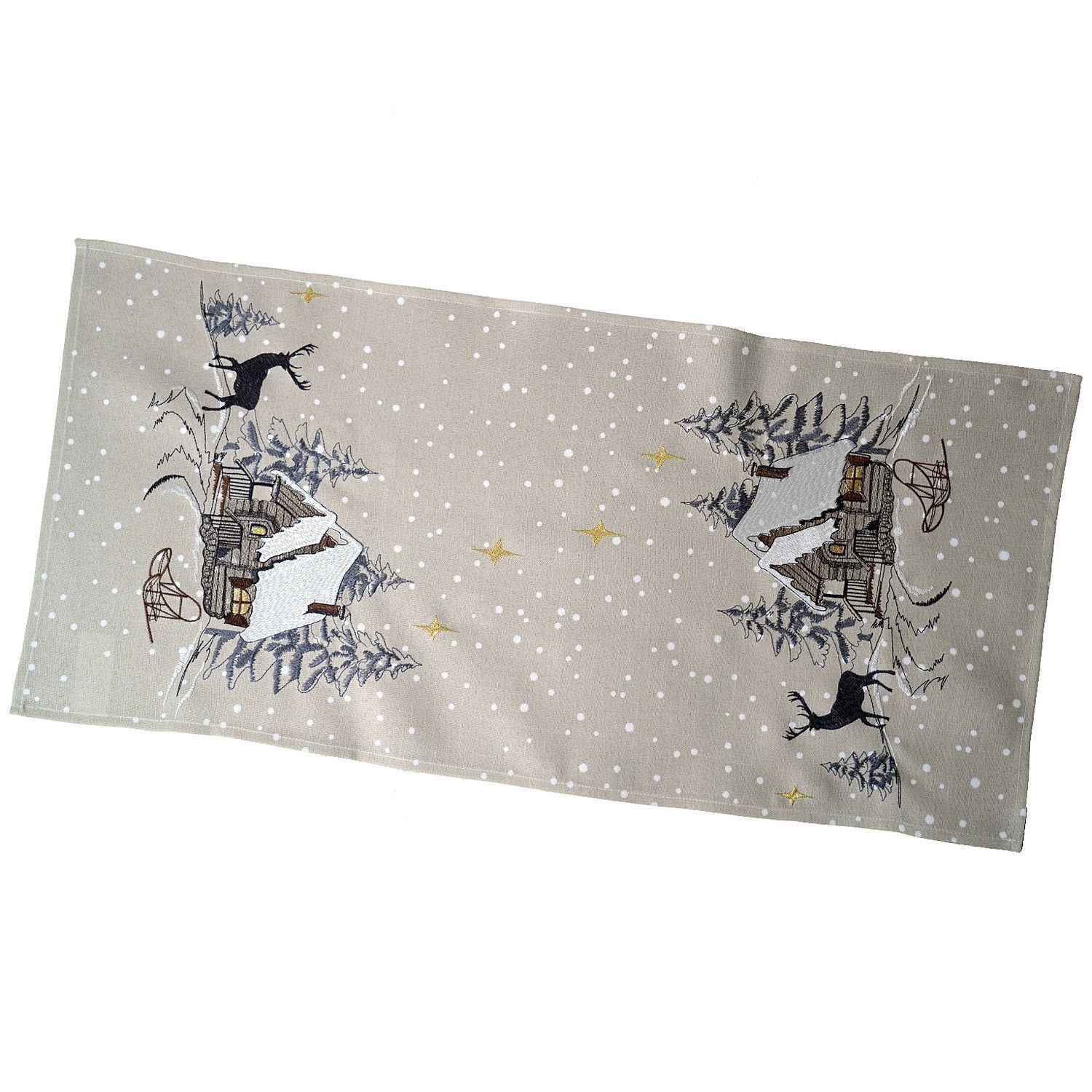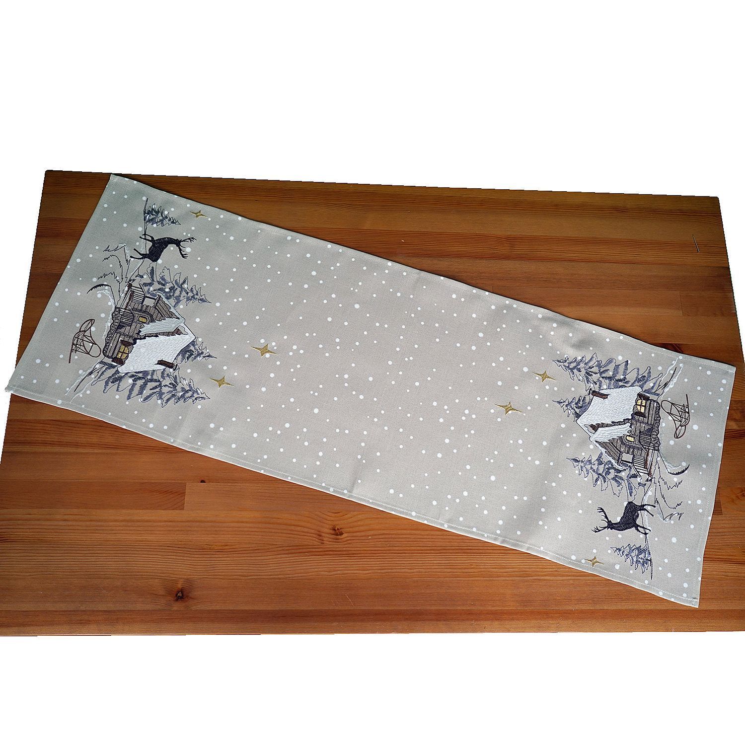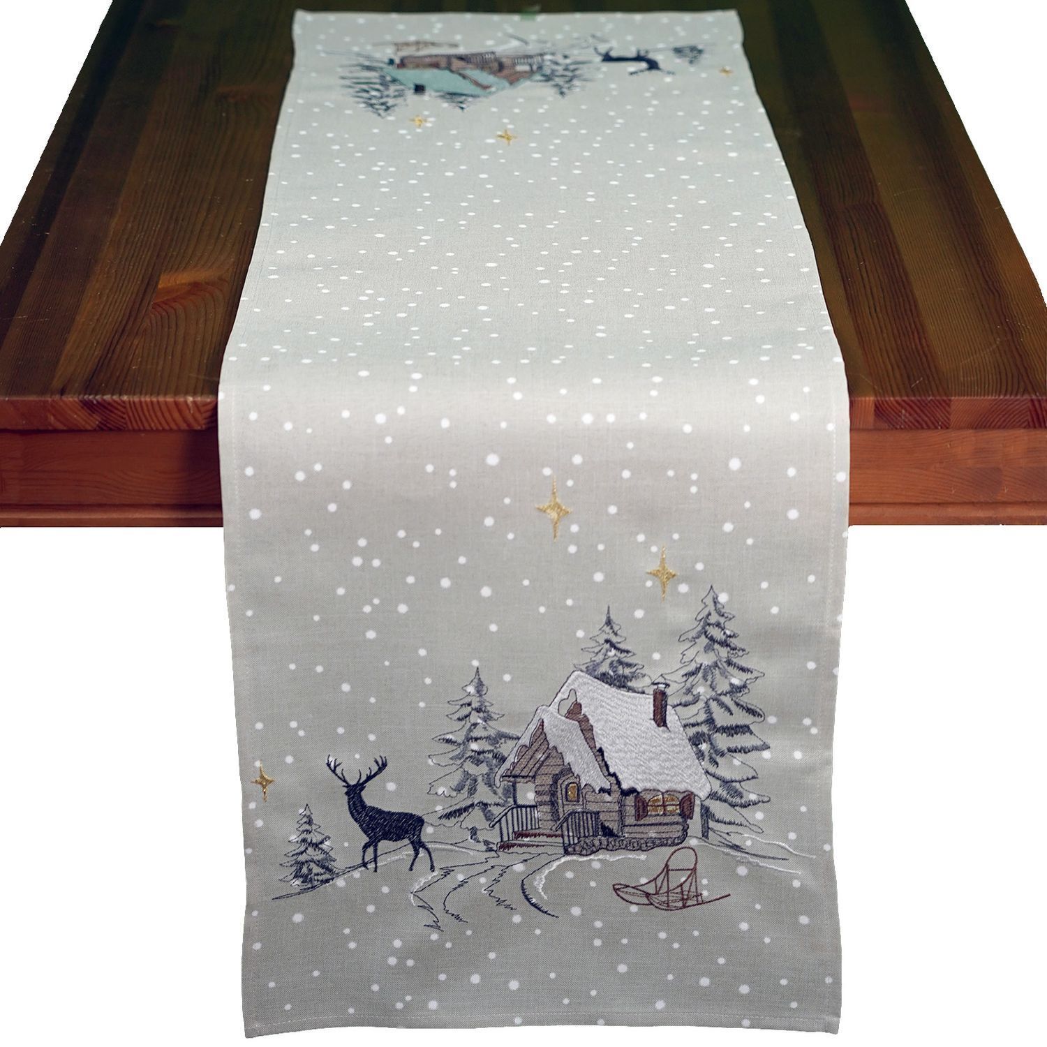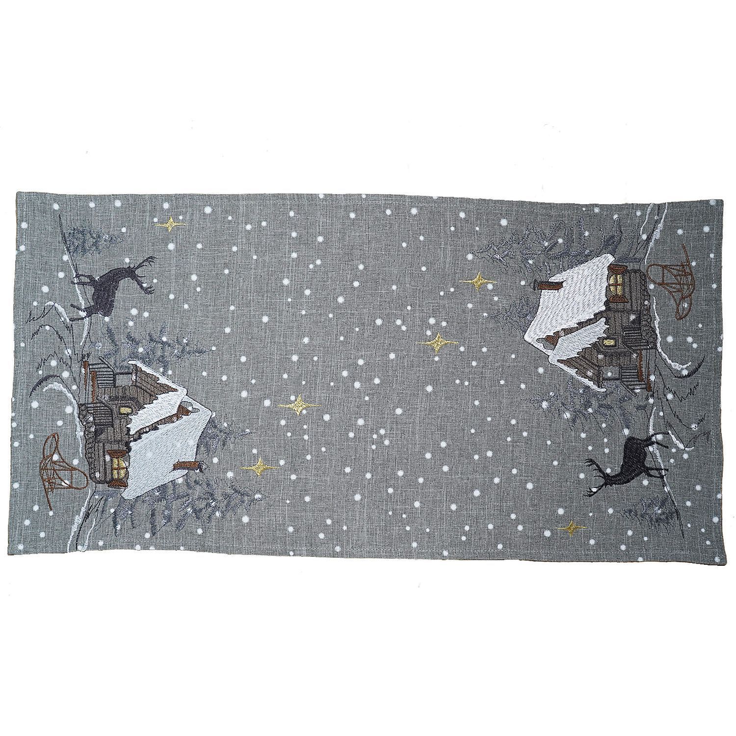 Tischdecke Stickerei Winterwald Tischtuch Weihnachtsdekoration