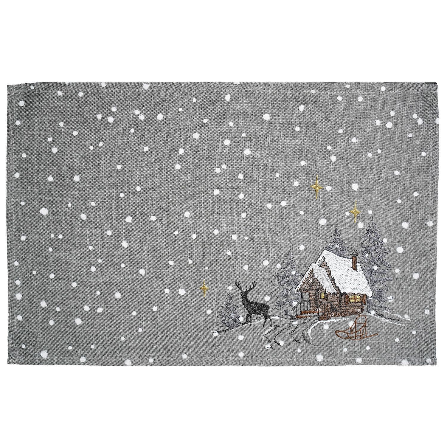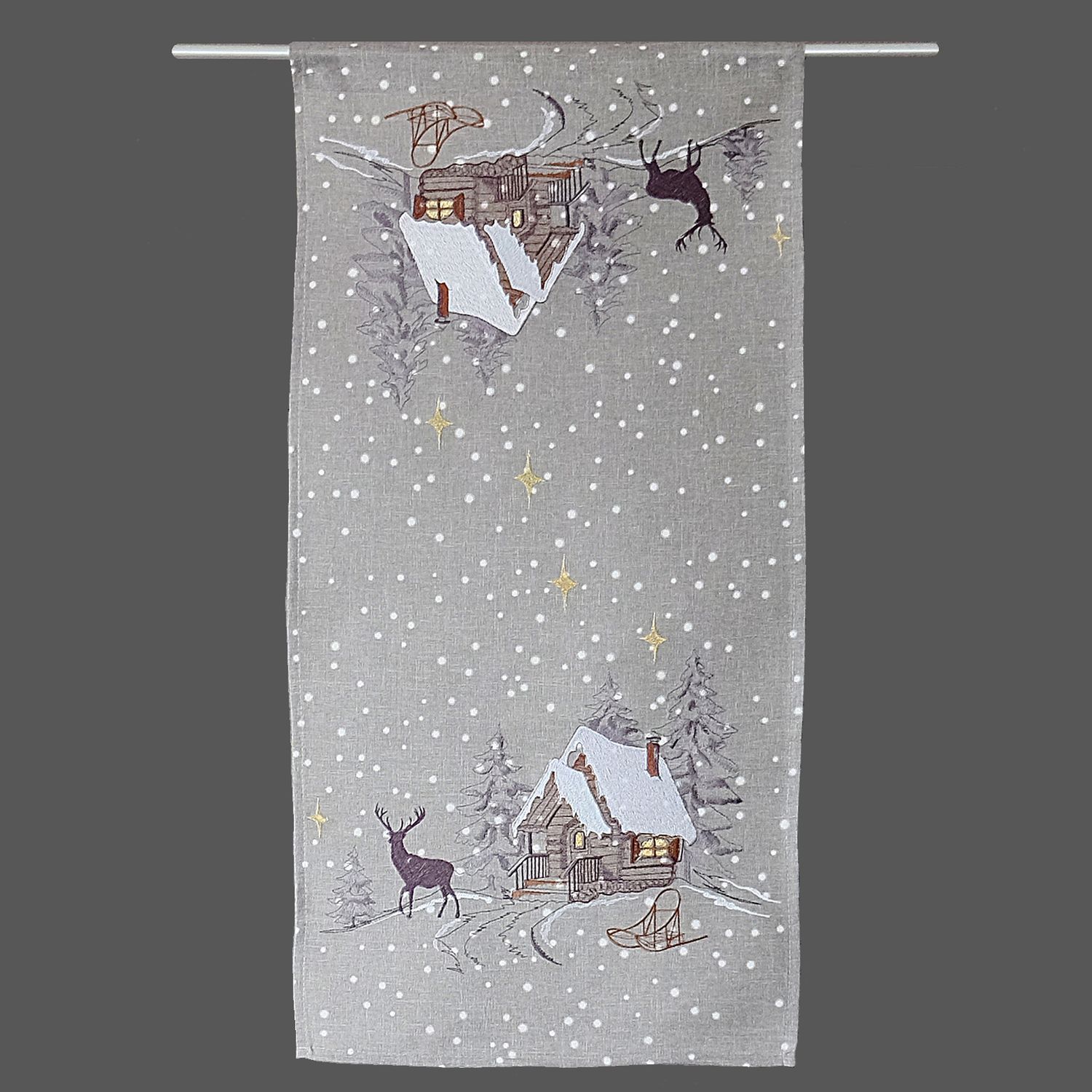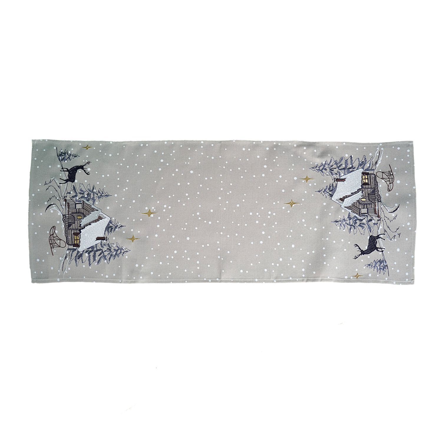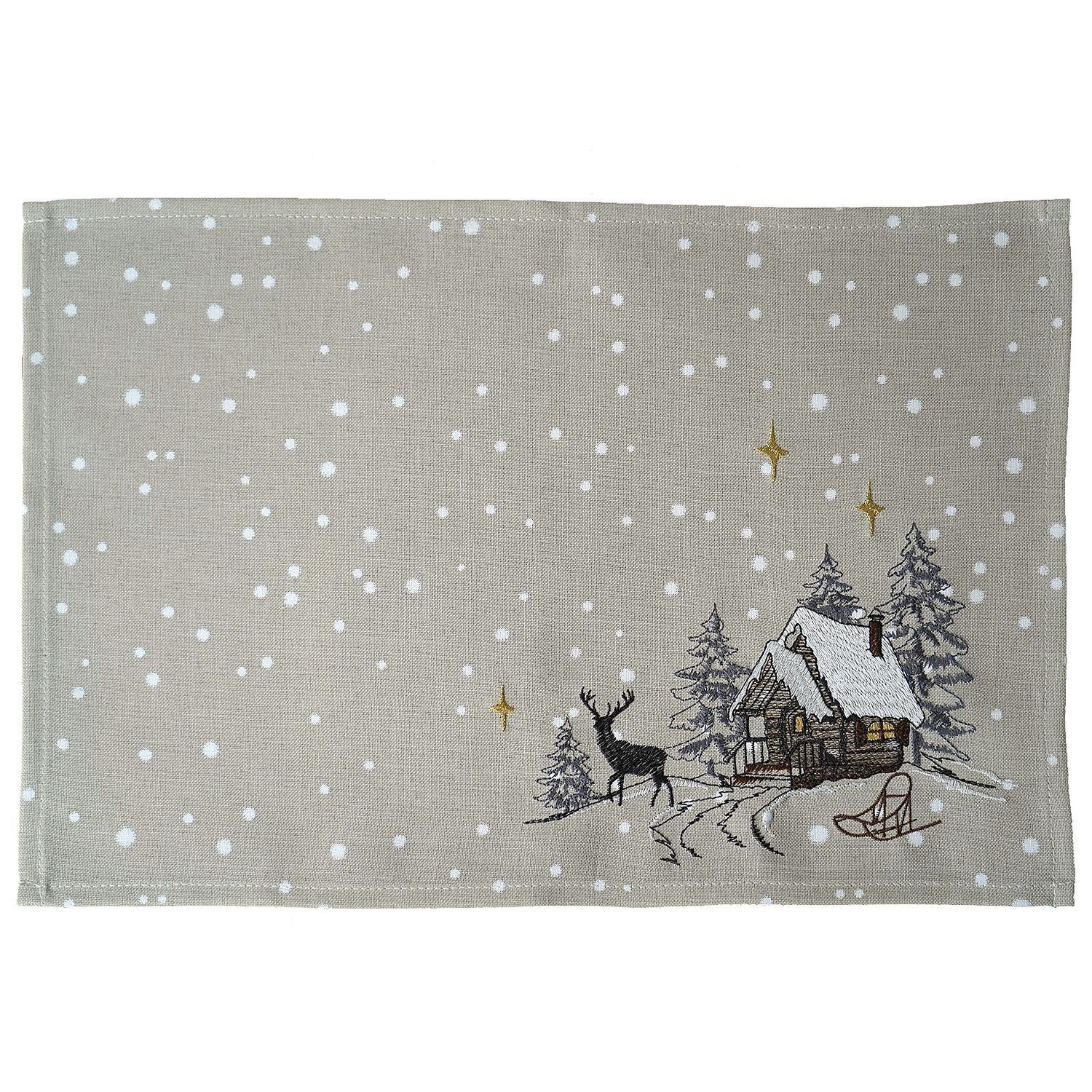 Tischdecke Stickerei Winterwald Tischtuch Weihnachtsdekoration