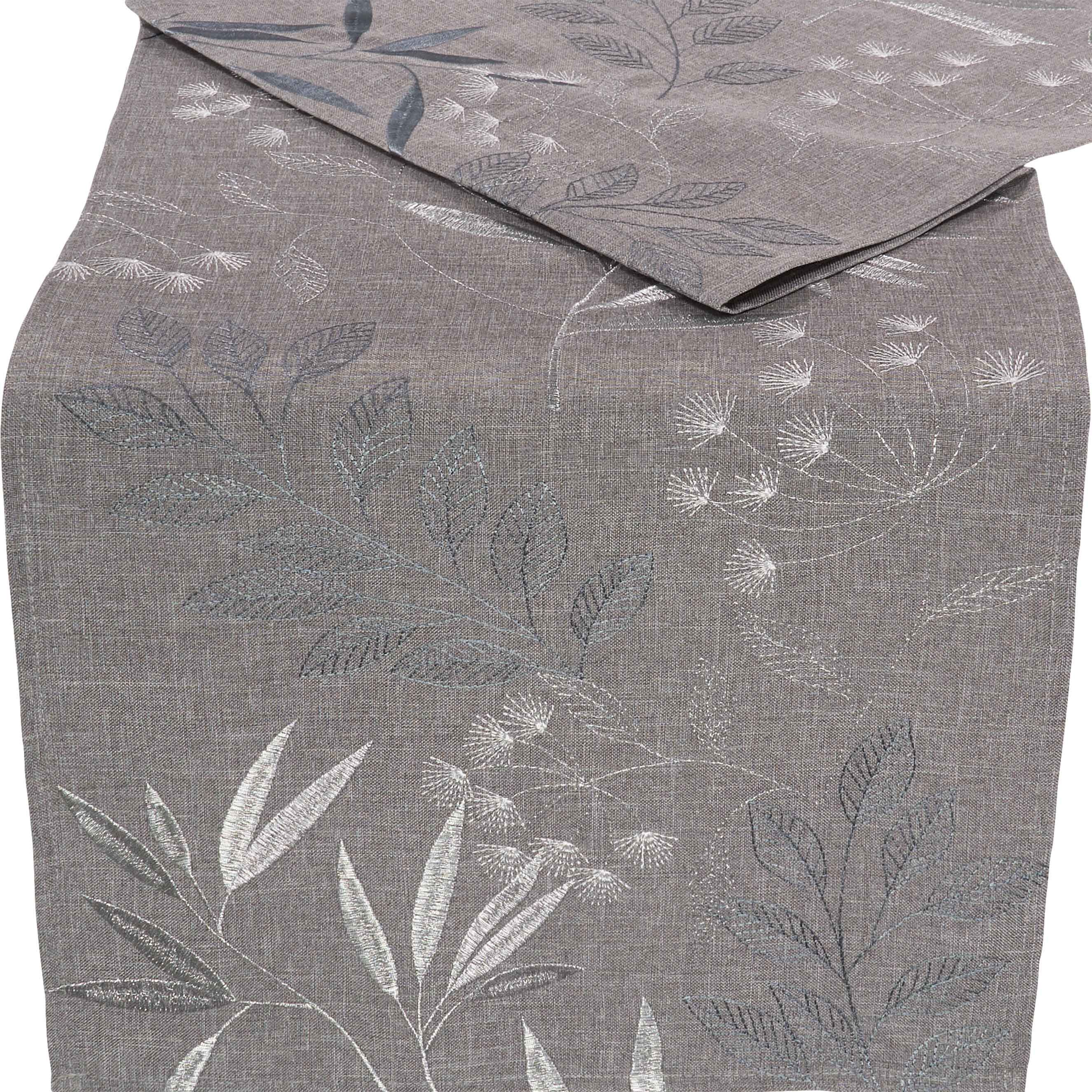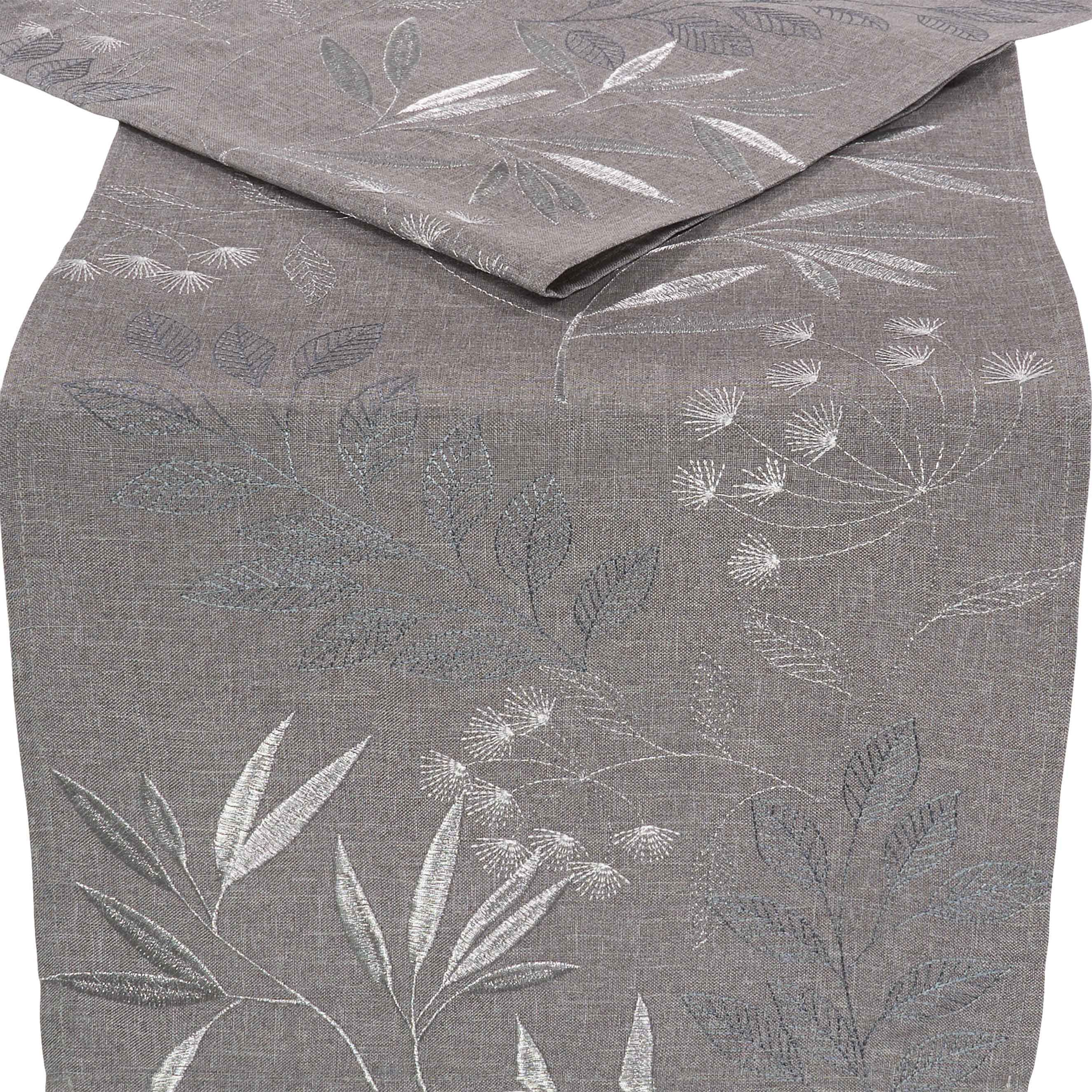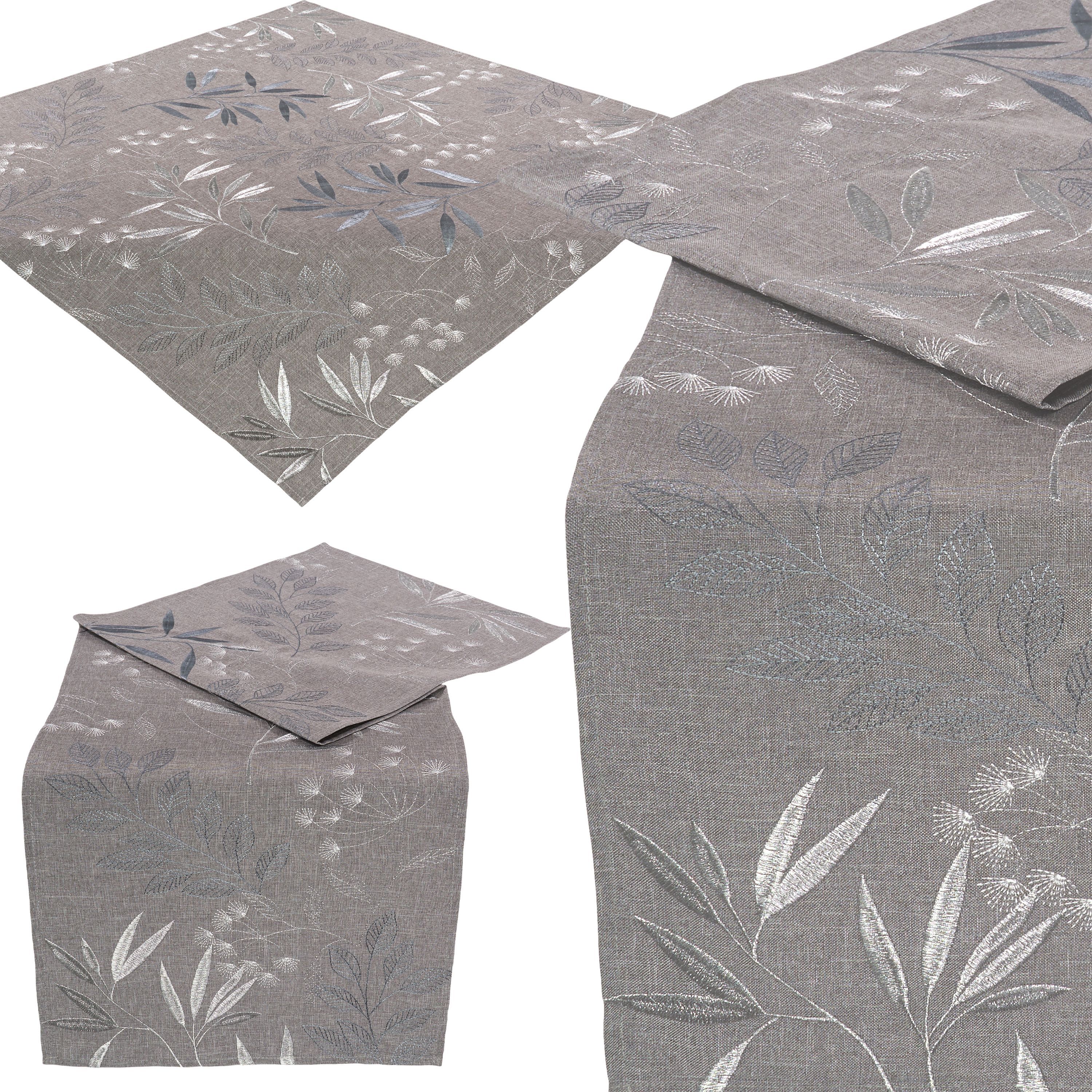 Tischdecke Tischläufer Modern Bestickt Mitteldecke Tischwäsche Hellgrau Blätter