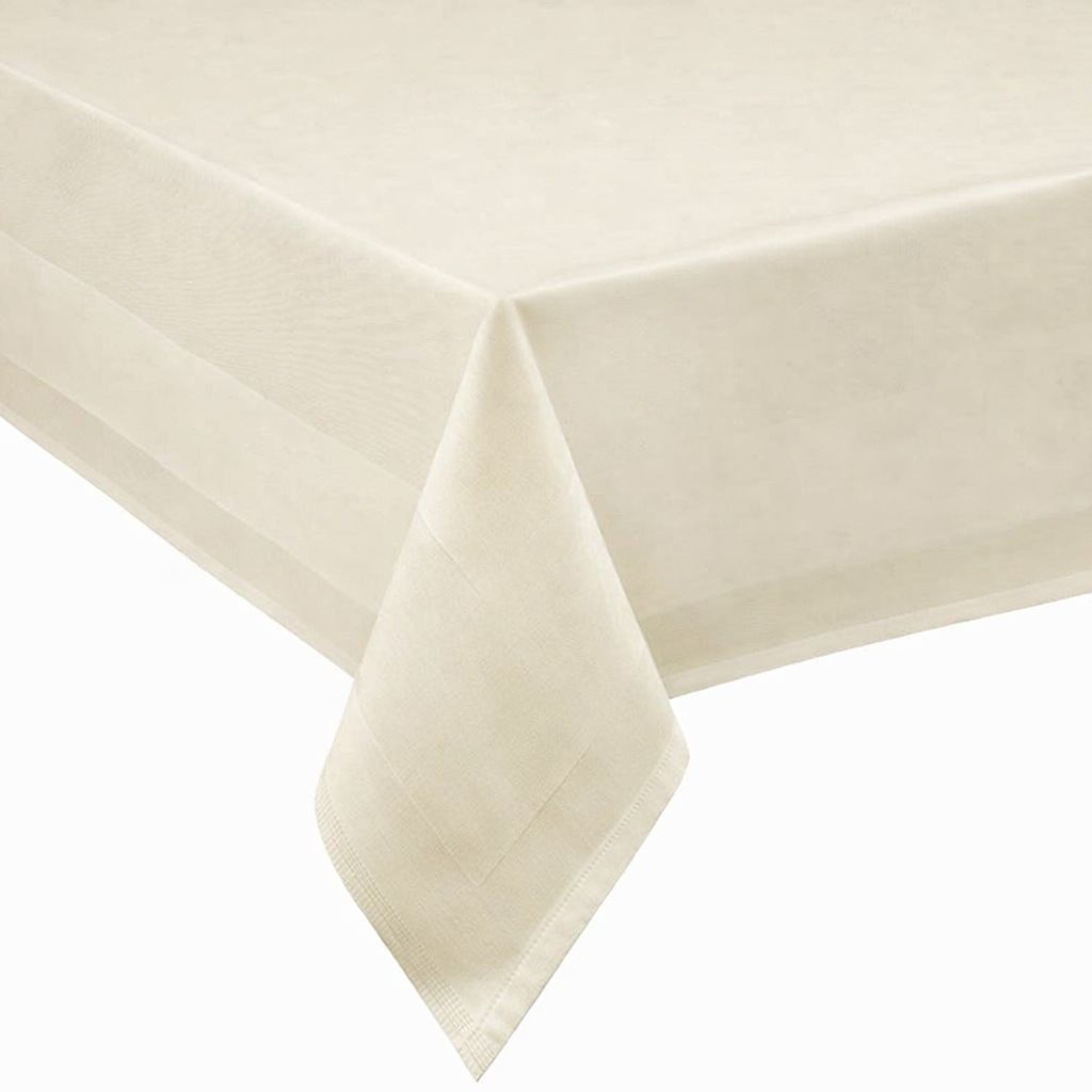 Tischdecke Tischtuch mit Atlaskante Breite 130 cm Damast champagner Baumwolle