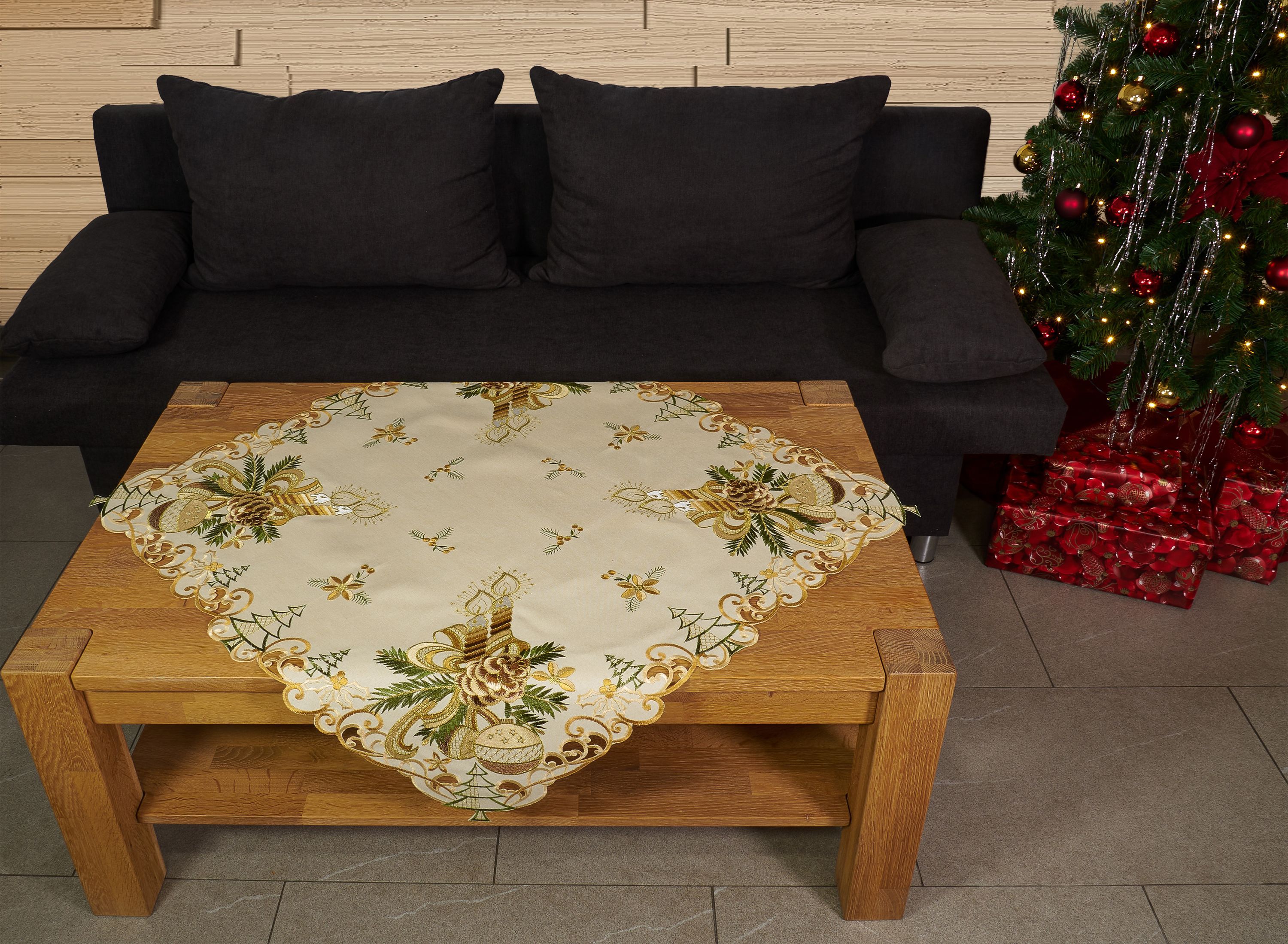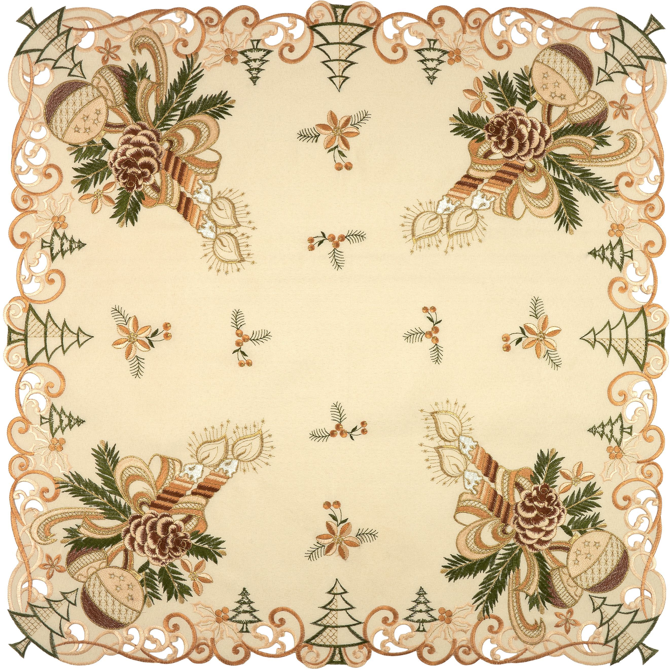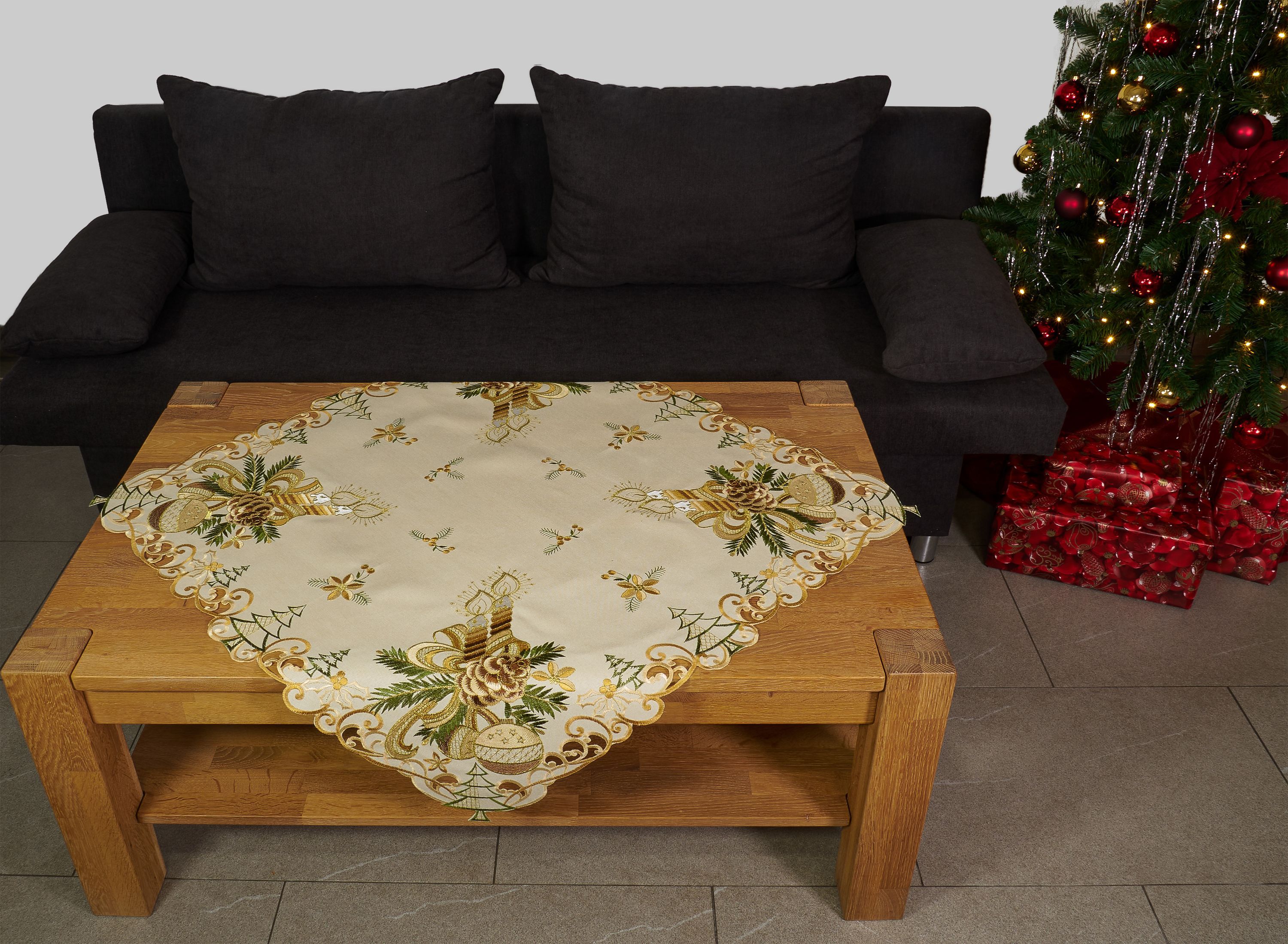 Tischdecke Weihnachten Mitteldecke Weihnachtsdecke 110 x 110 Decke Gold Bestickt