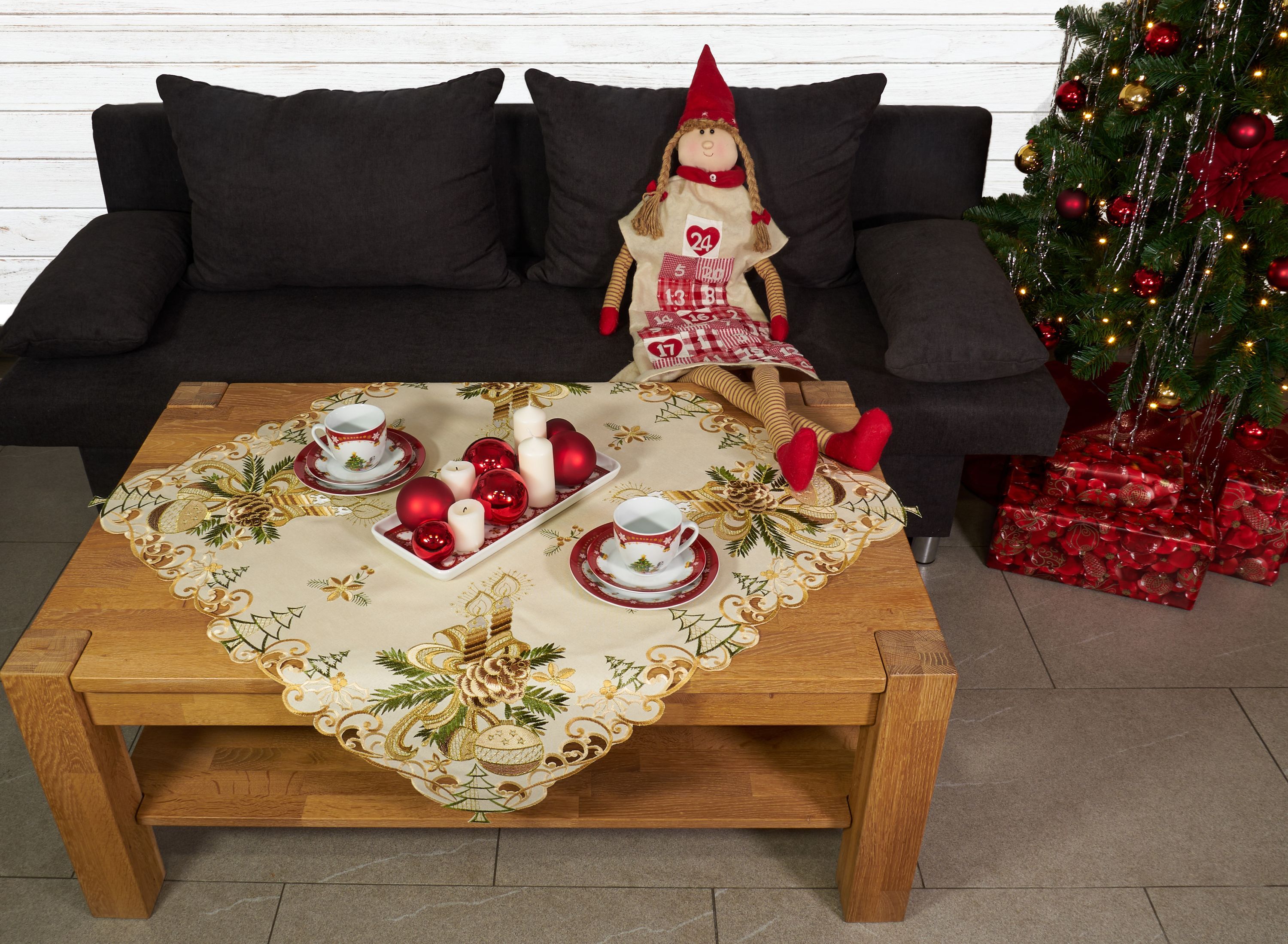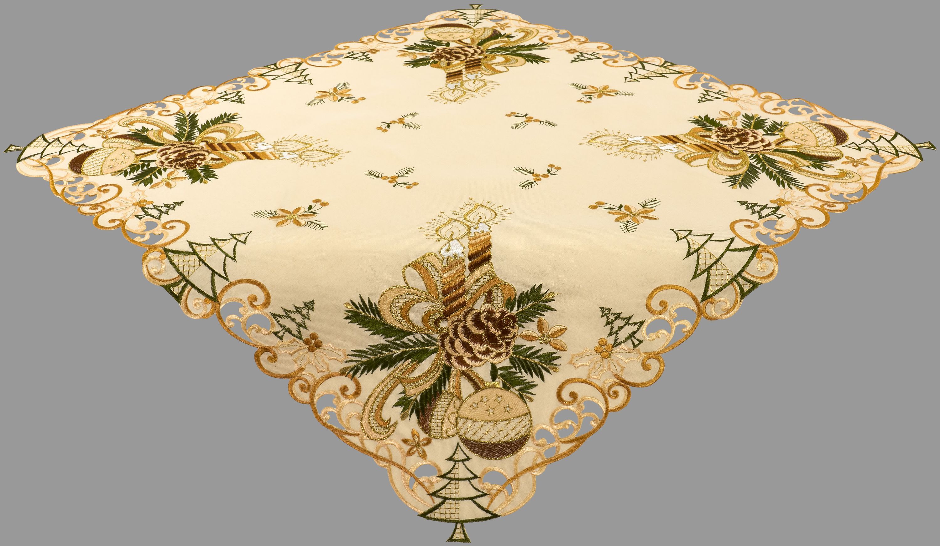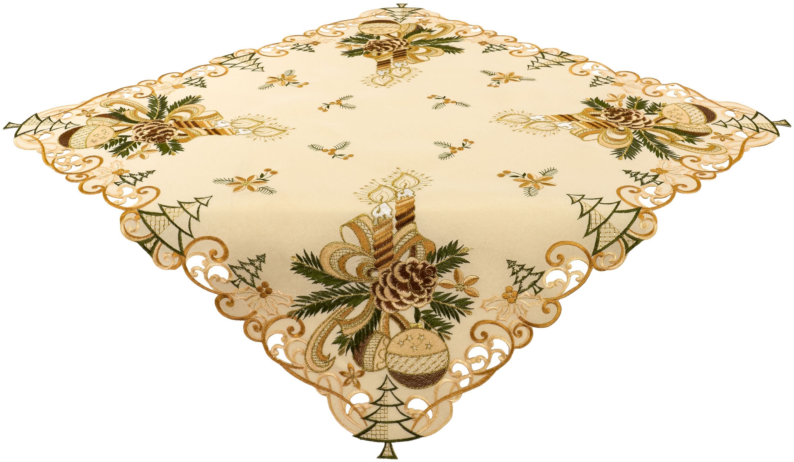 Tischdecke Weihnachten Mitteldecke Weihnachtsdecke 110 x 110 Decke Gold Bestickt