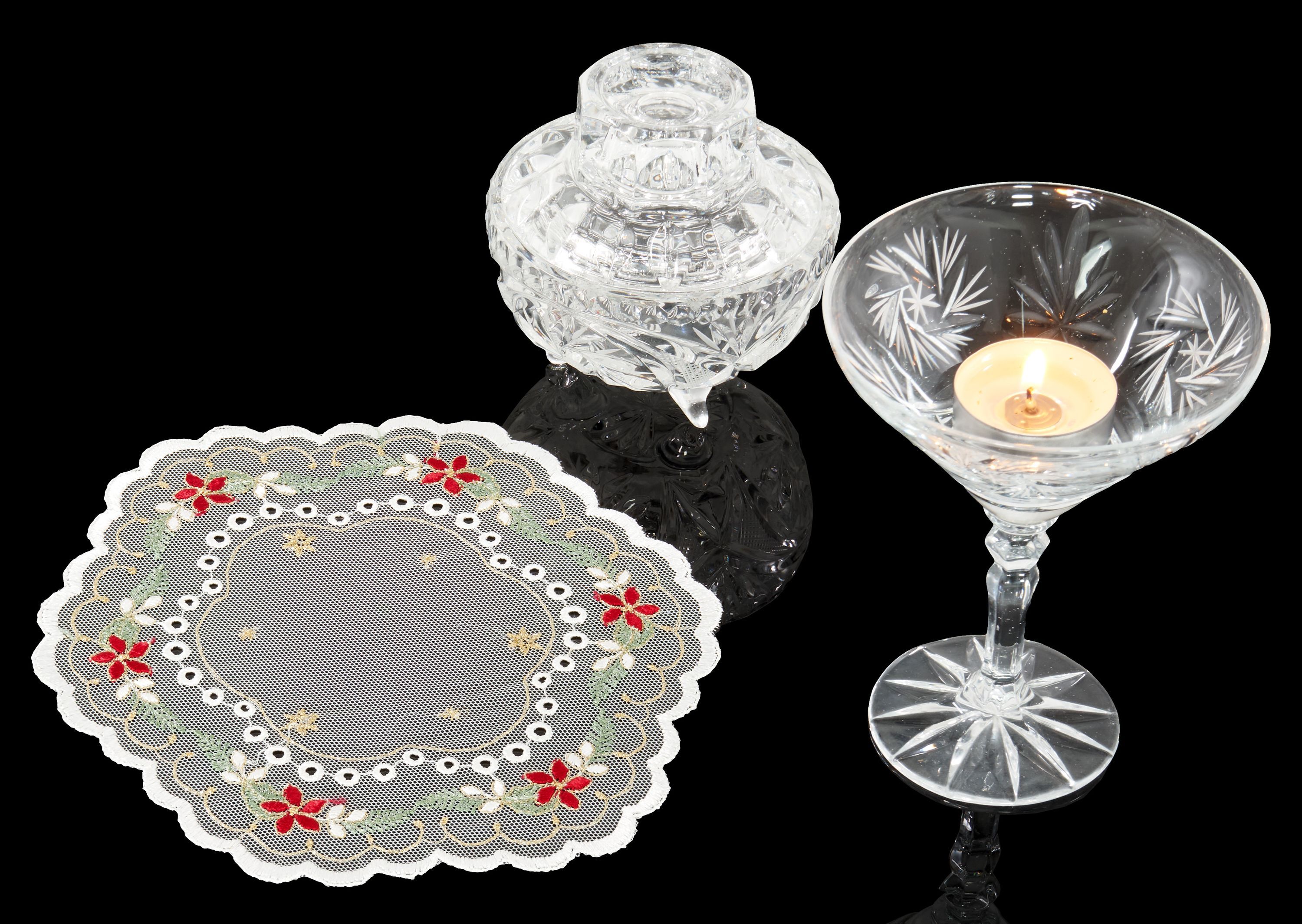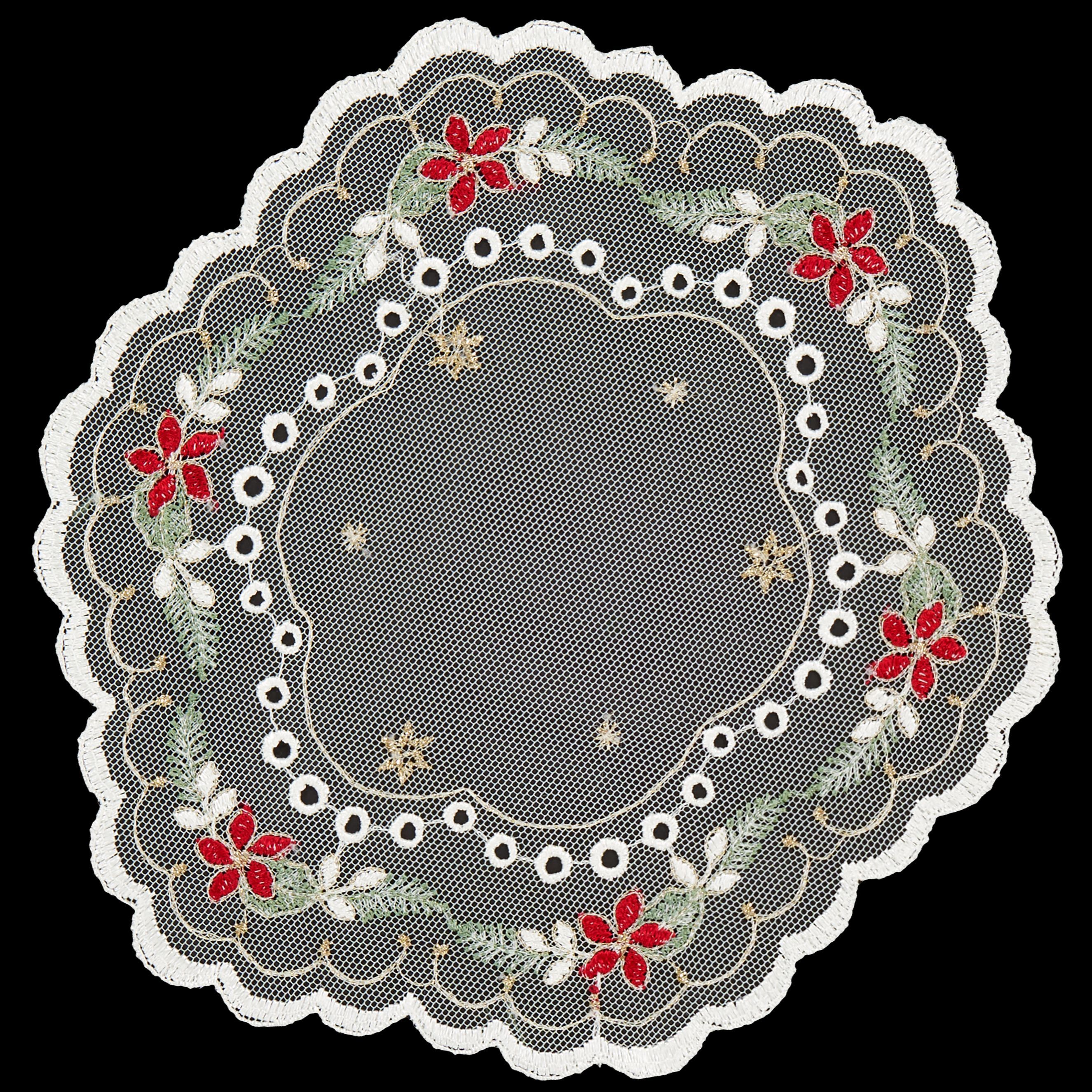 Tischdecke Weihnachten Plauener Spitze Deckchen Tüll Stickerei Gold Rund 20 cm