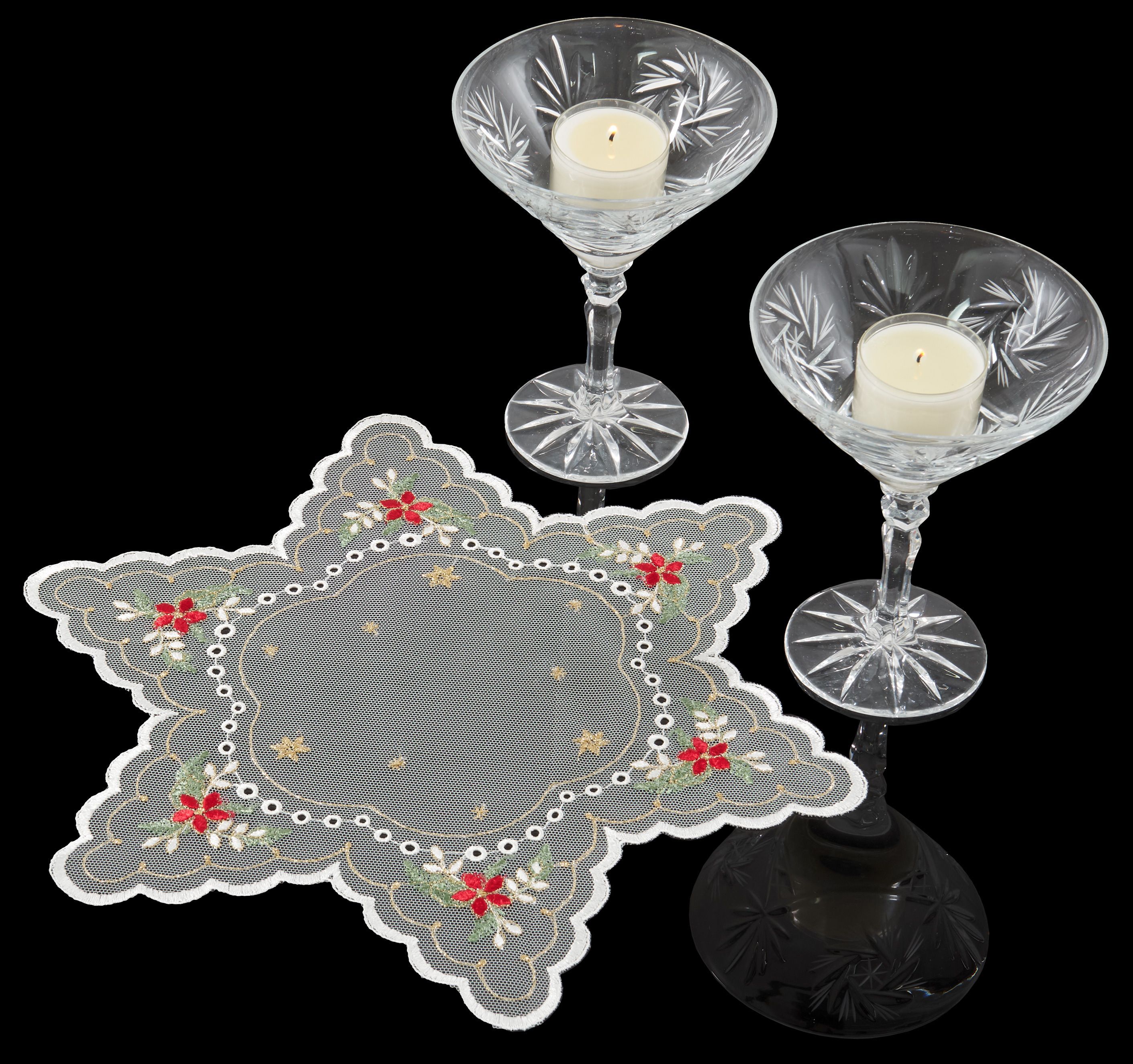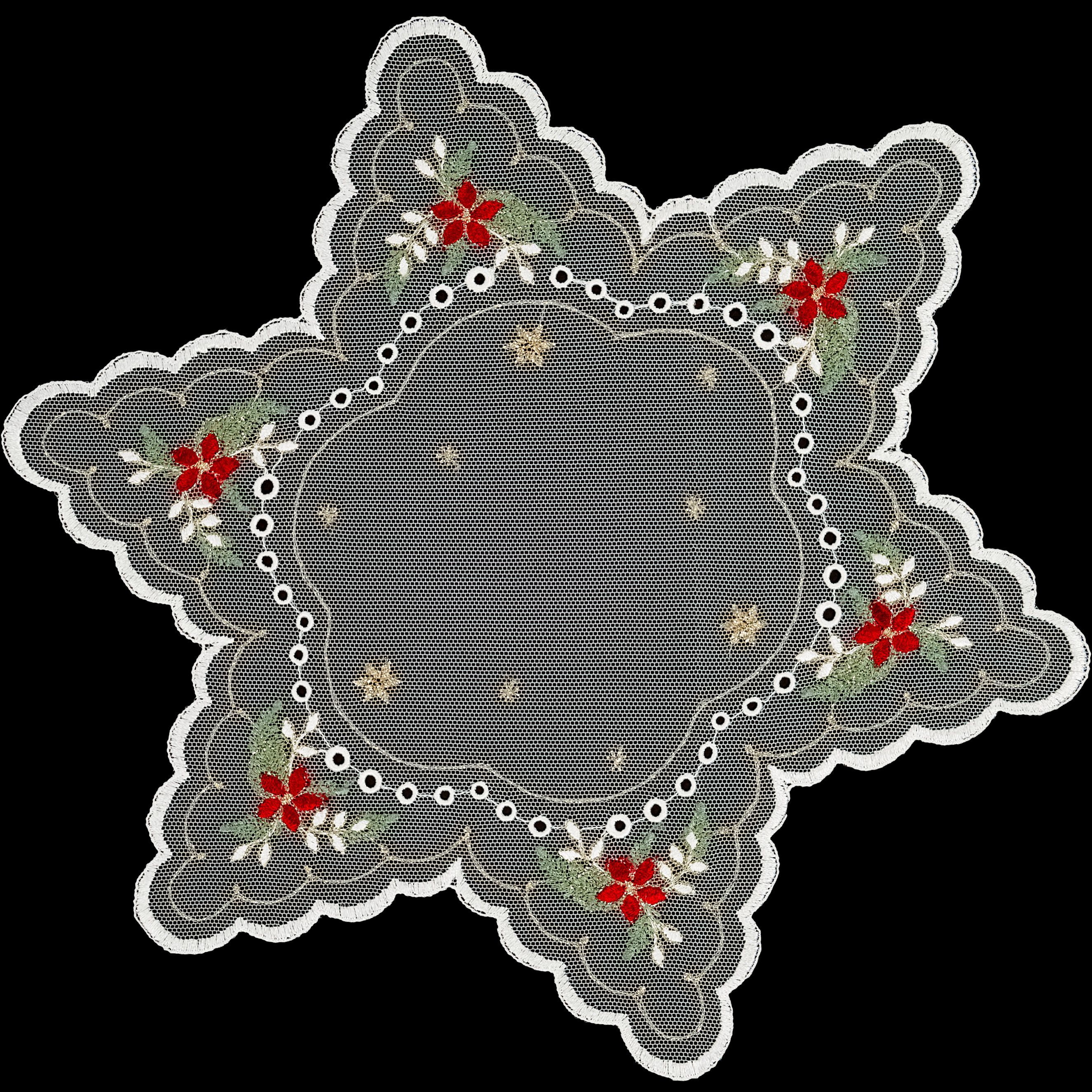 Tischdecke Weihnachten Plauener Spitze Deckchen Tüll Stickerei Gold Stern 30 cm