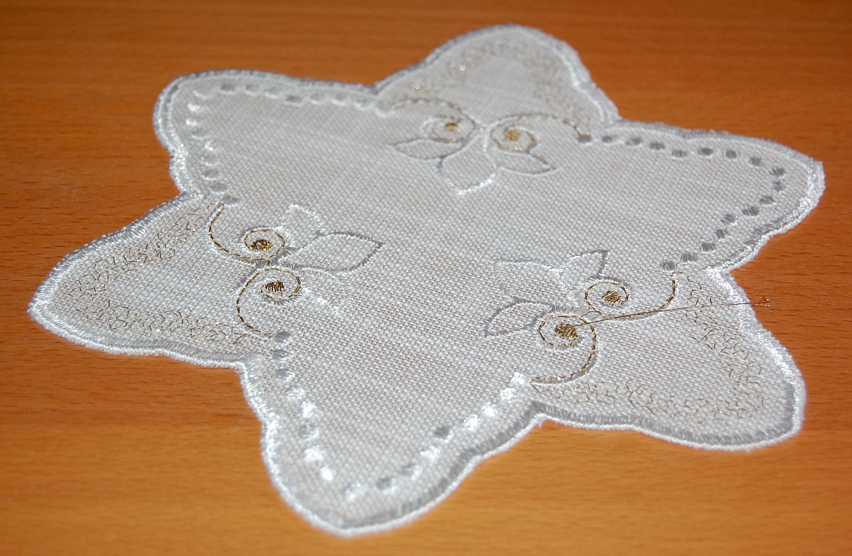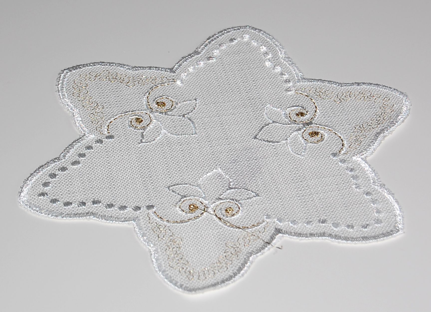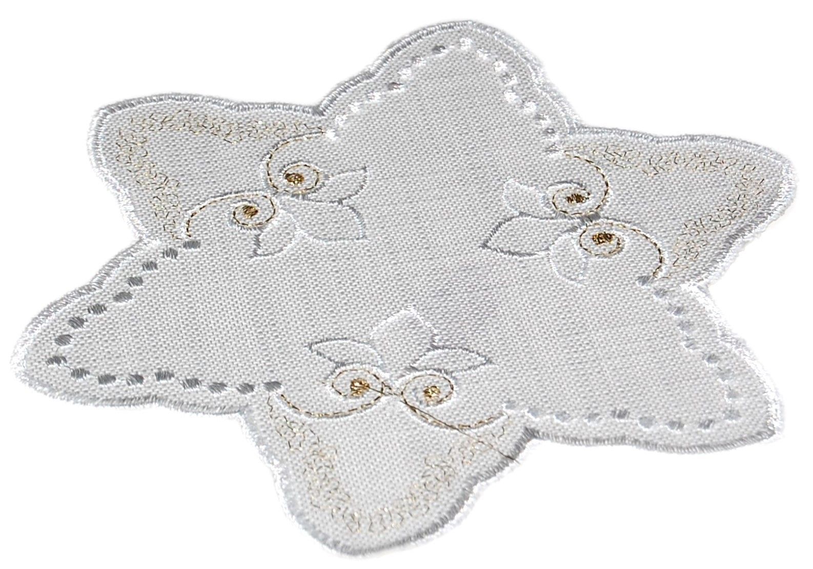 Tischdecke Weihnachten Plauener Stickerei Gold Stern 20 cm Untersetzer Deckchen