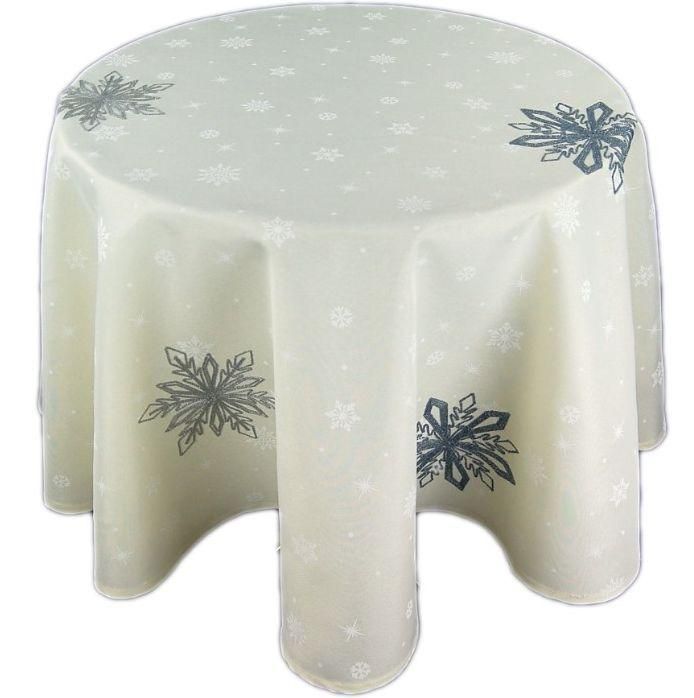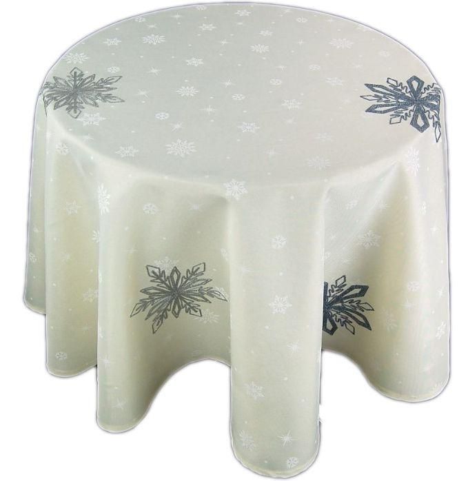 Tischdecke Weihnachten Rund 150 cm Ecru Sterne Silber Weihnachtsdecke Weihnachtsdekor
