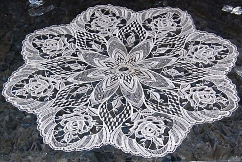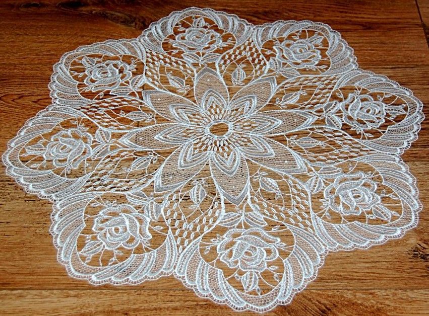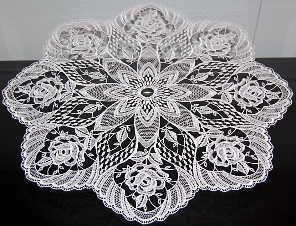 Tischdecke Weiß Rund Plauener Spitze Mitteldecke Spitzentischdecke Rosen 85 cm