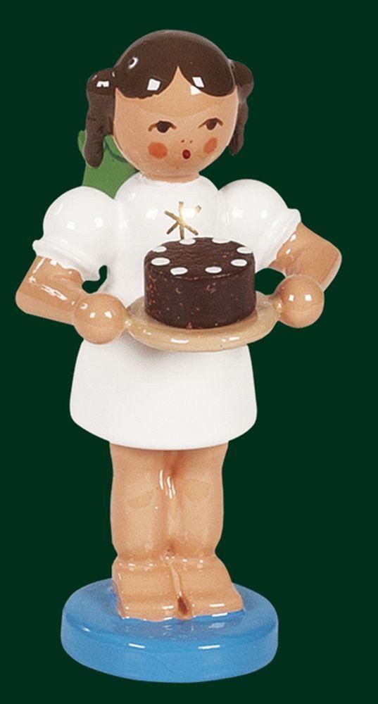 Tischdekoration Engel mit Schokotorte Höhe= 6cm NEU Seiffen Erzgebirge Holzfigur