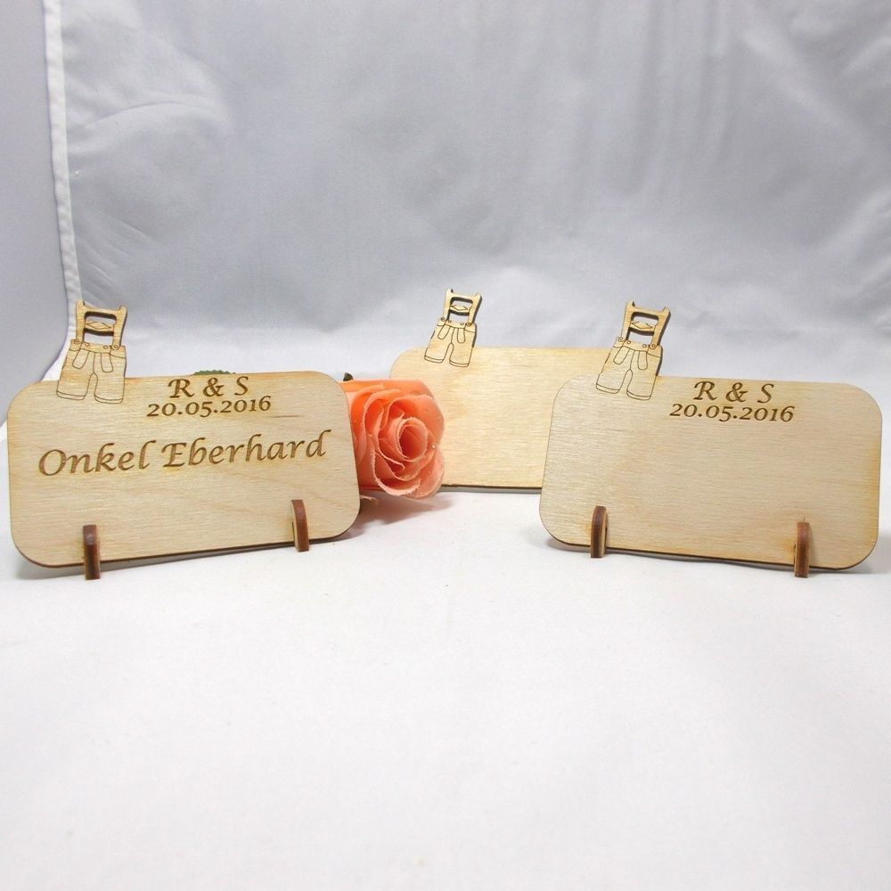 Wir bieten Ihnen hier die ideale Dekoration für viele Festlichkeiten! Namensschild mit einer Lederhose und graviert nach Ihren Wünschen. Sie können selbst entscheiden, ob Sie die Tischkarten selbst beschriften oder durch uns gravieren lassen. Eine einheitliche Gravur bedeutet, auf mehreren Karten st