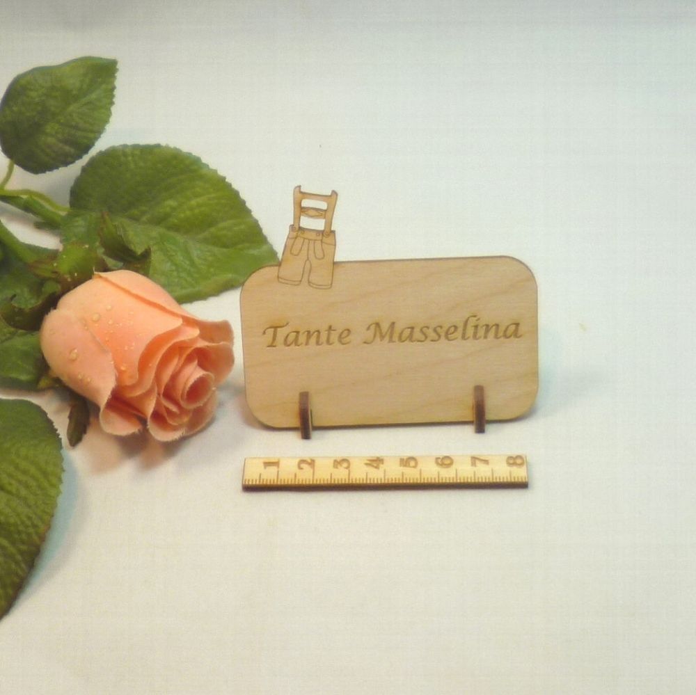Tischkarte aus Holz Lederhose, Blanko oder mit Gravur Hochzeit, Geburtstag