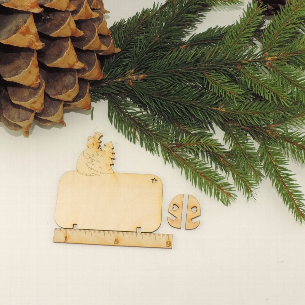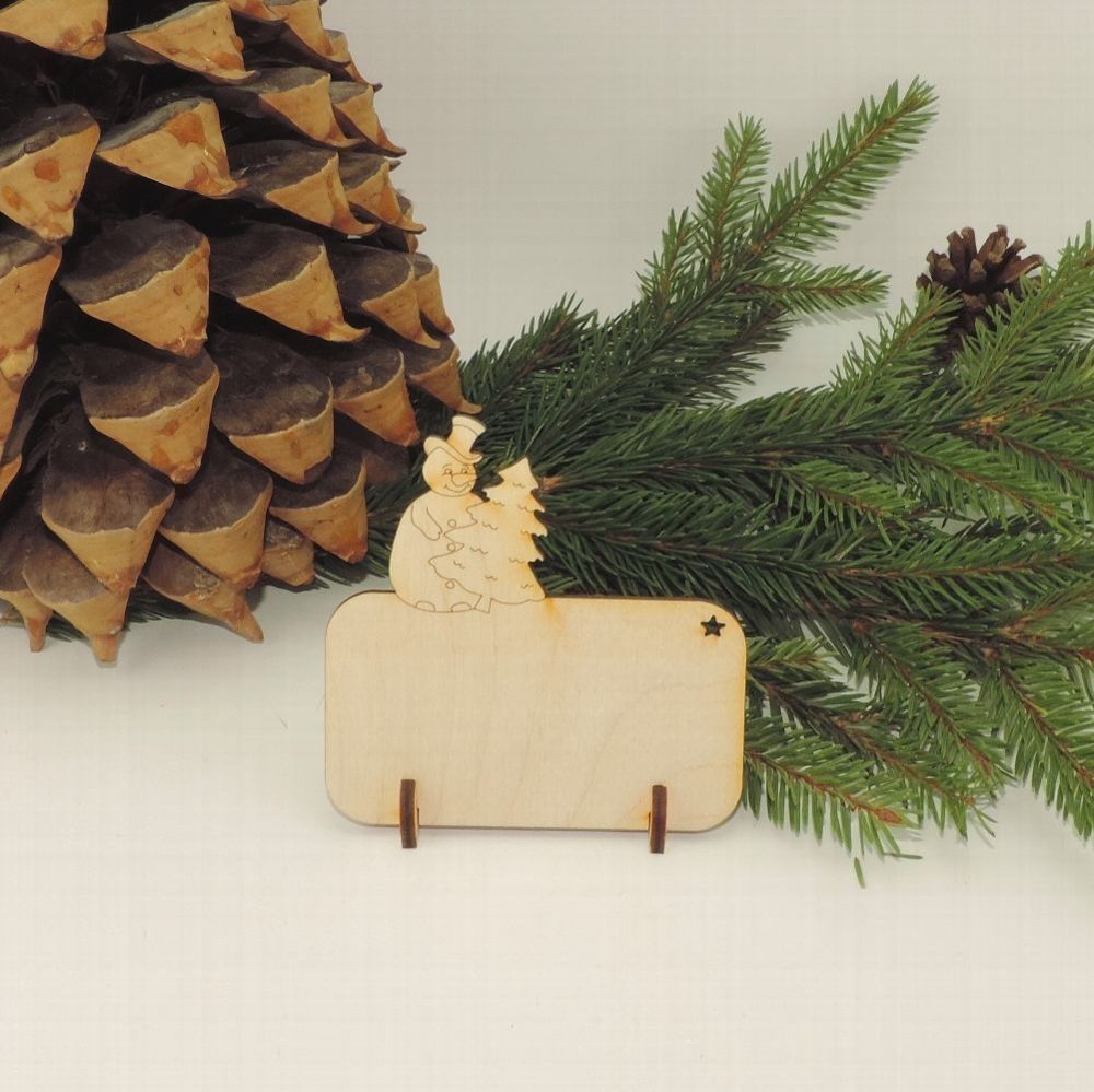 Tischkarte aus Holz, Schneeman mit Tanne, Blanko oder mit Gravur Weihnachten