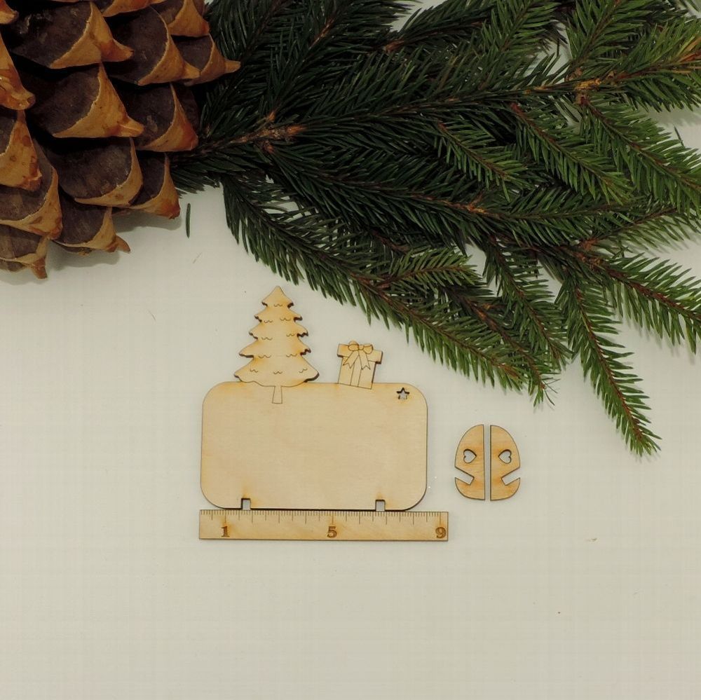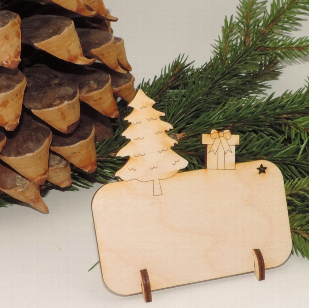 Tischkarte aus Holz Tannenbaum mit Geschenk, Blanko oder mit Gravur Weihnachten