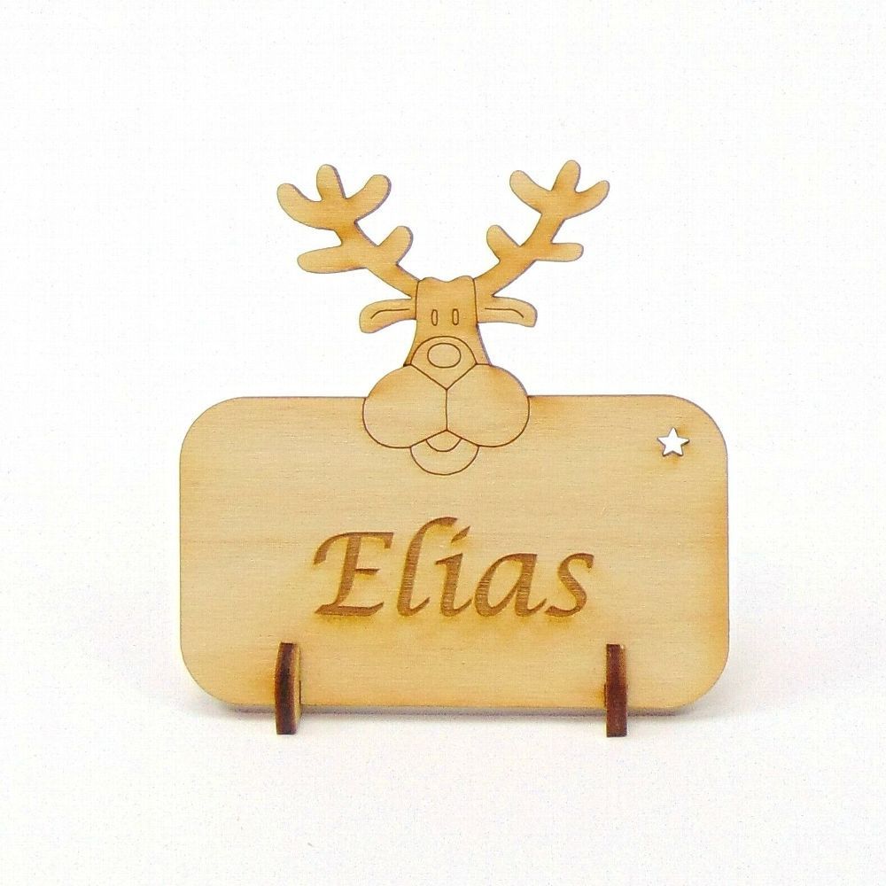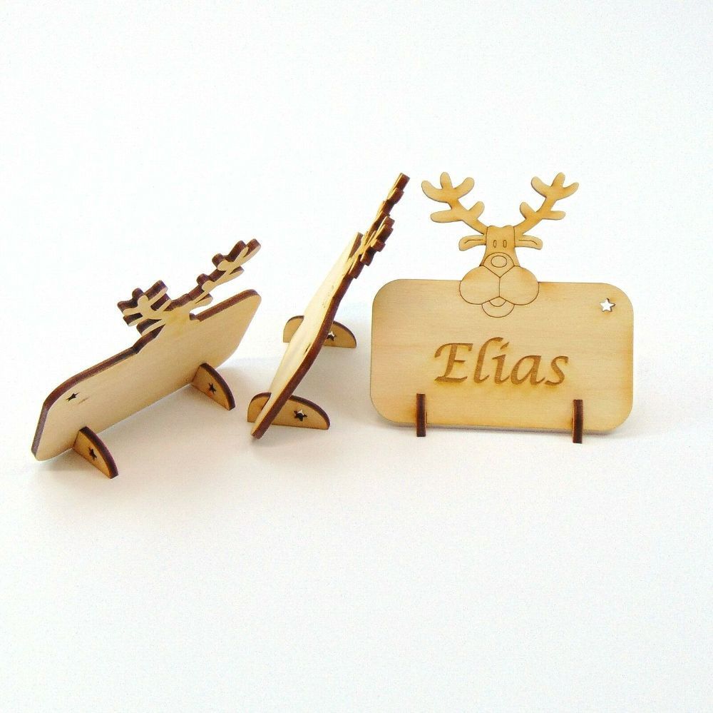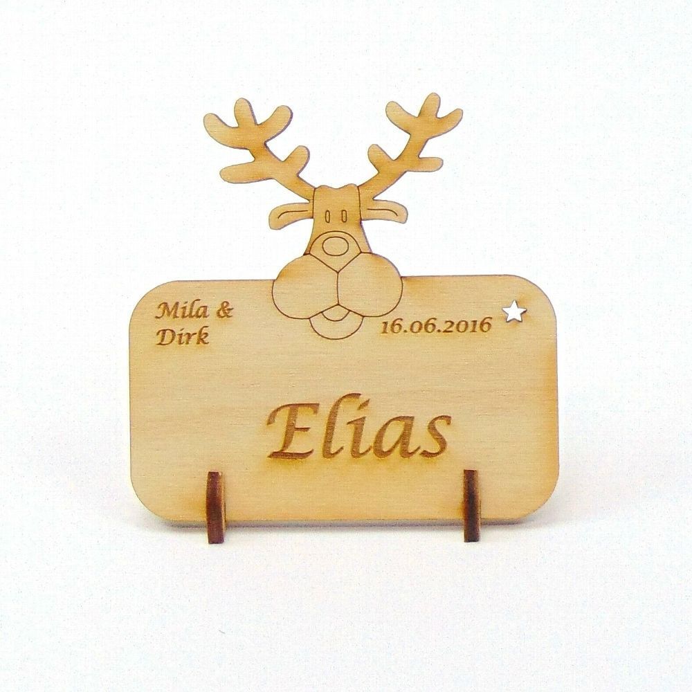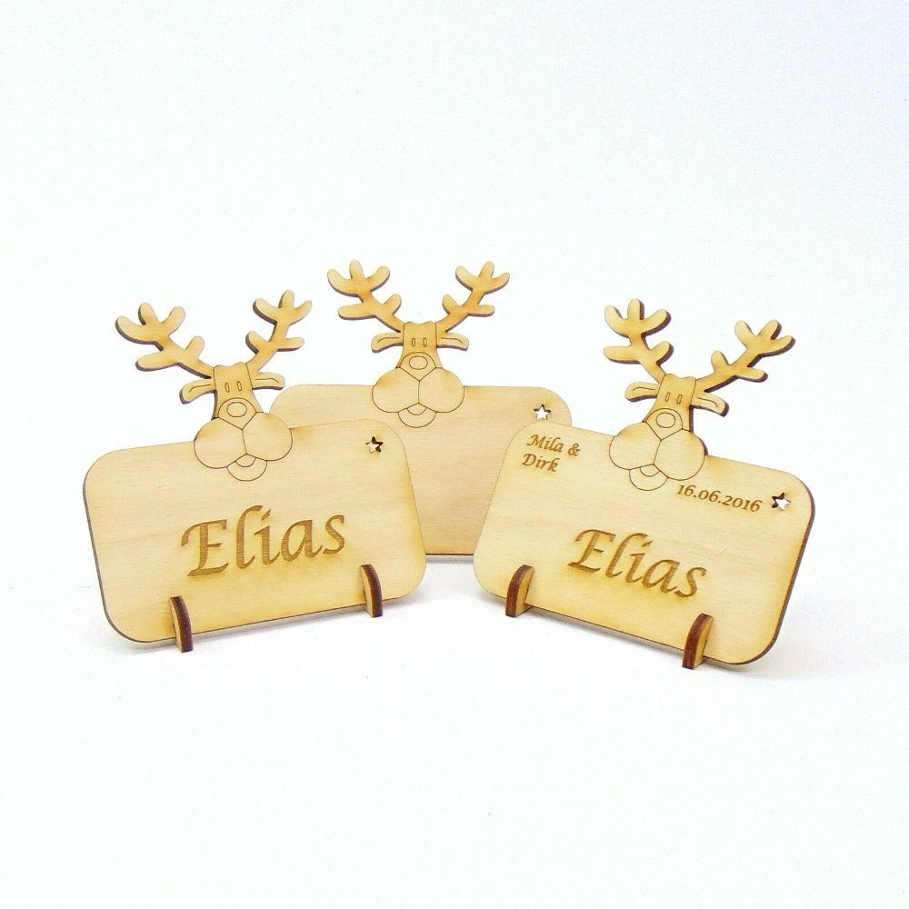 Tischkarte Namensschild Elch, Renntier Blanko oder mit Gravur Weihnachtskarte