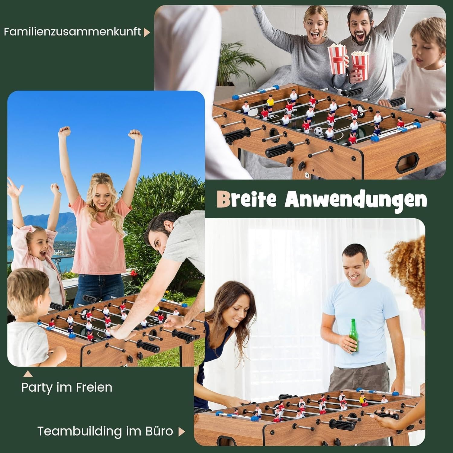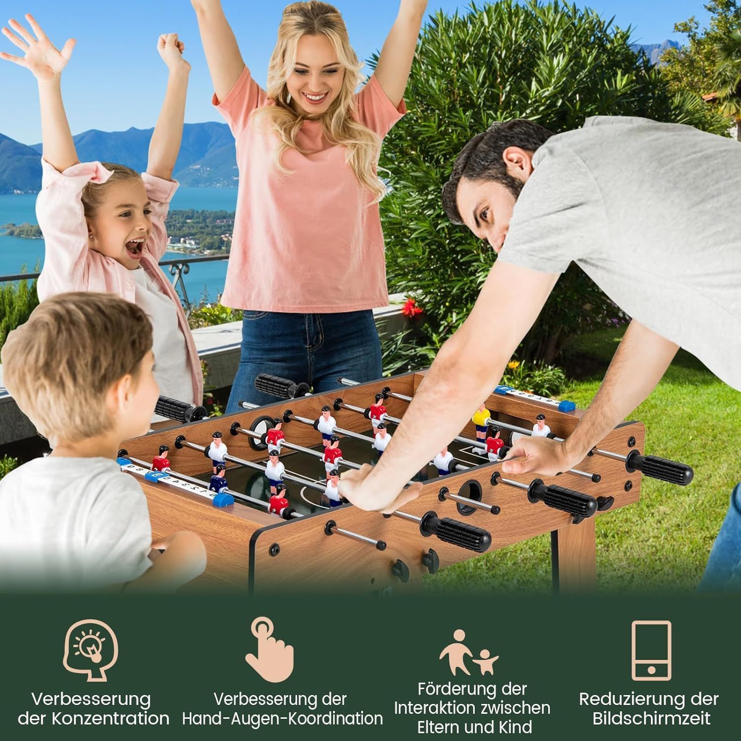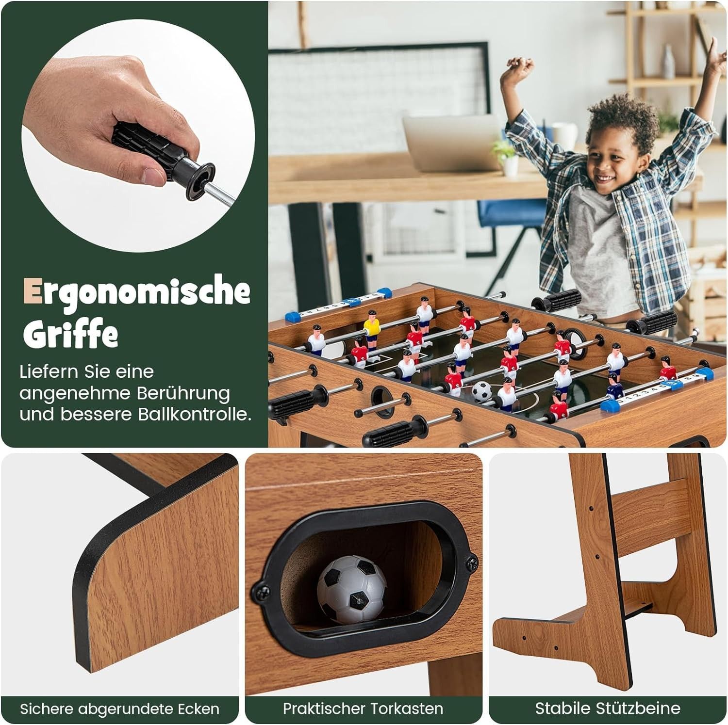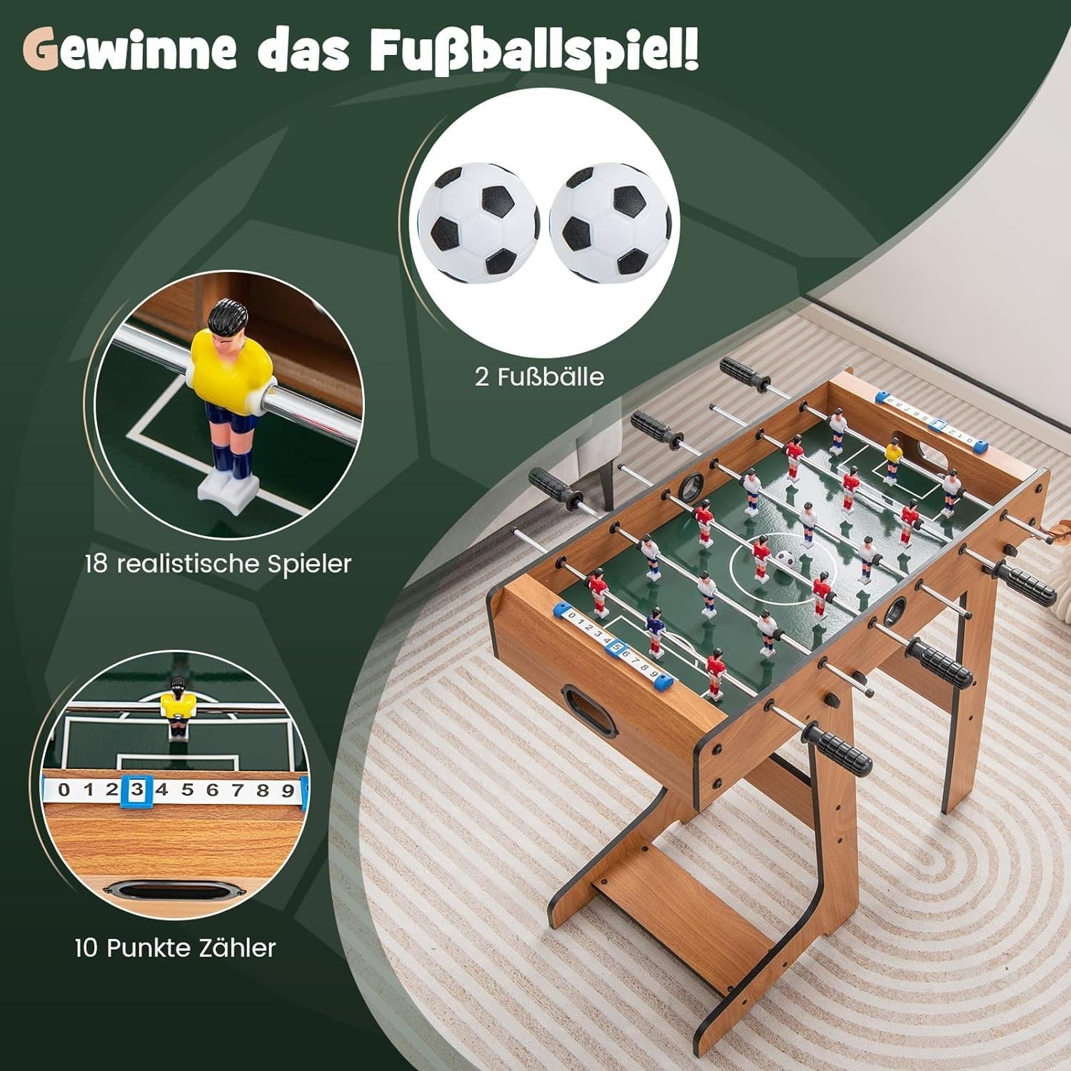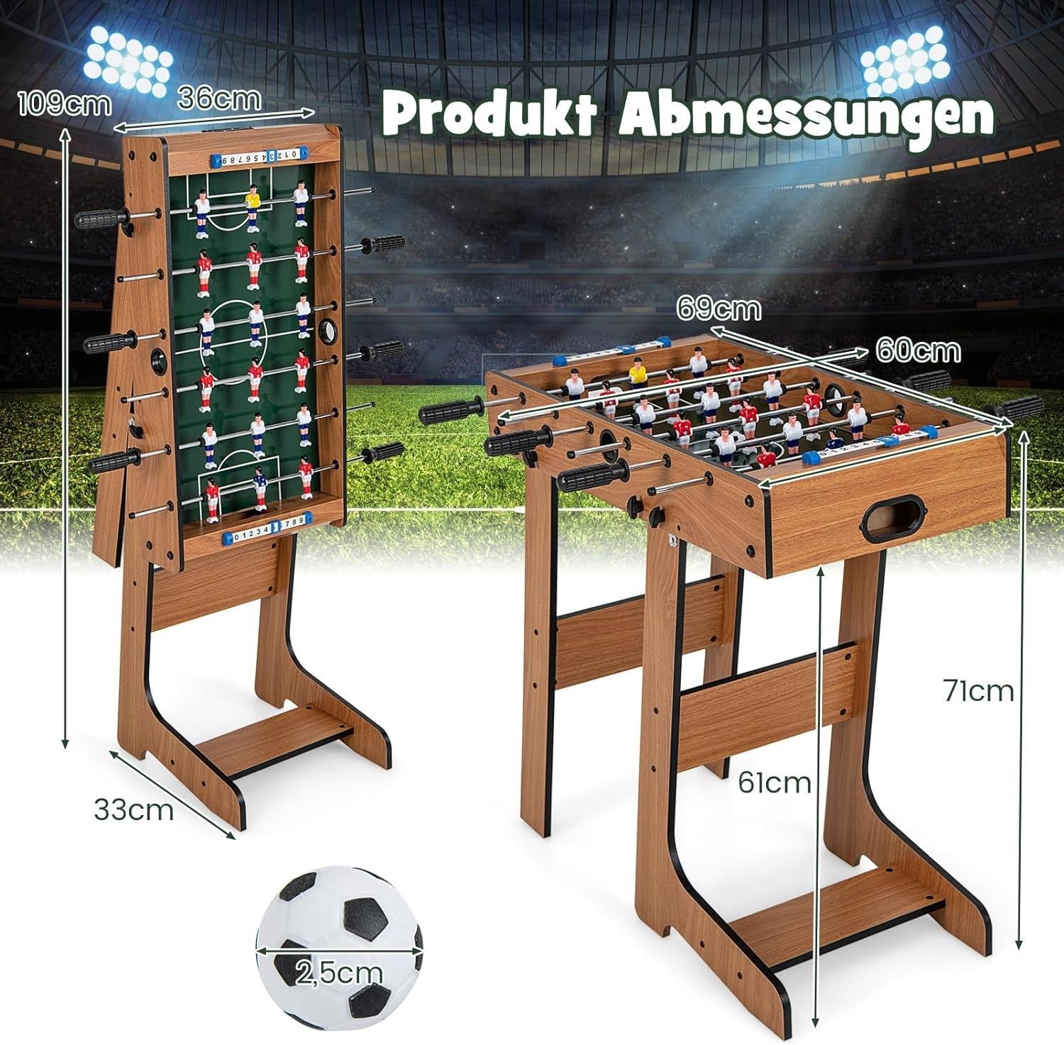 Tischkicker klappbar, Kickertisch inkl. 18 Kicker und 2 Bällen, 69 x 60 x 71 cm