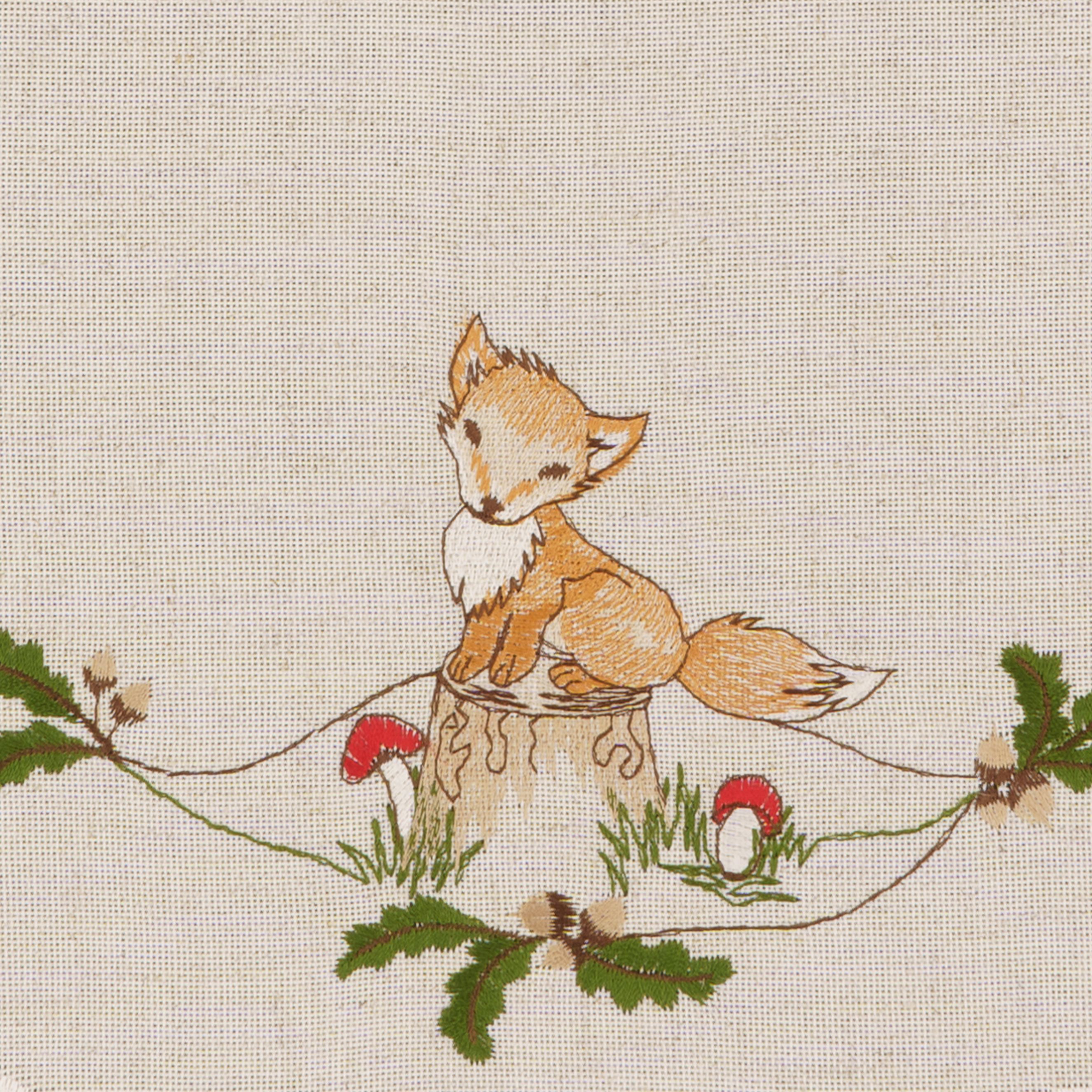 SANDNER Fuchs - Tischläufer oval circa 28x56 cm mit tierischer Stickerei in elegantem Design. Tischdecke Made in Germany für Ihre Tischdekoration mit Stil. Material 85% Polyacryl, 15% Leinen. Weitere passende Größen finden Sie in unserem Shop.