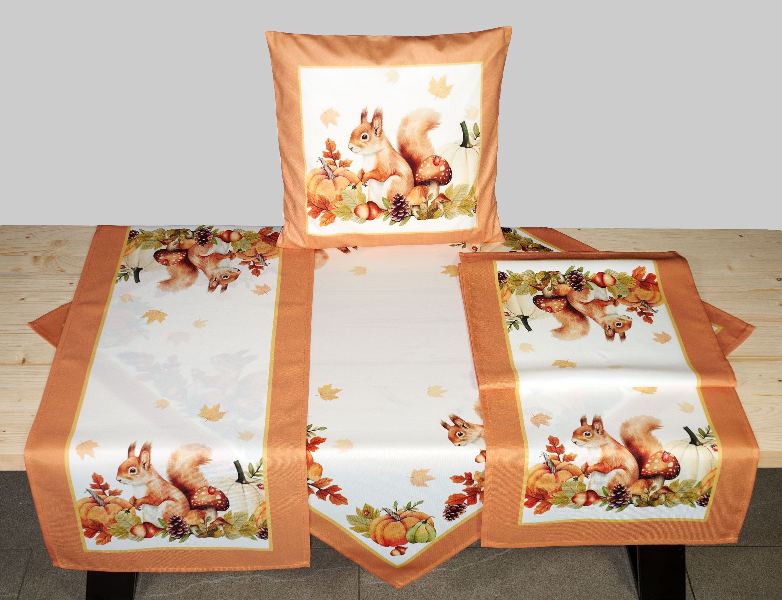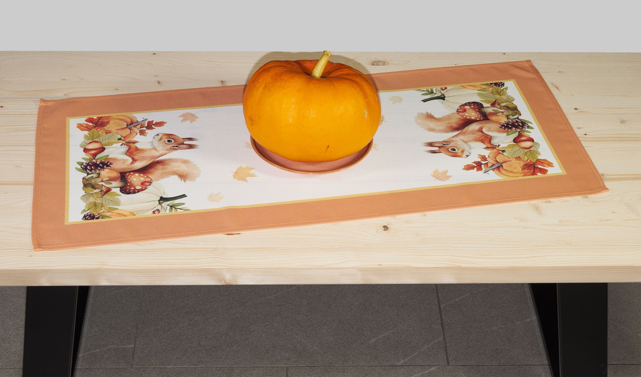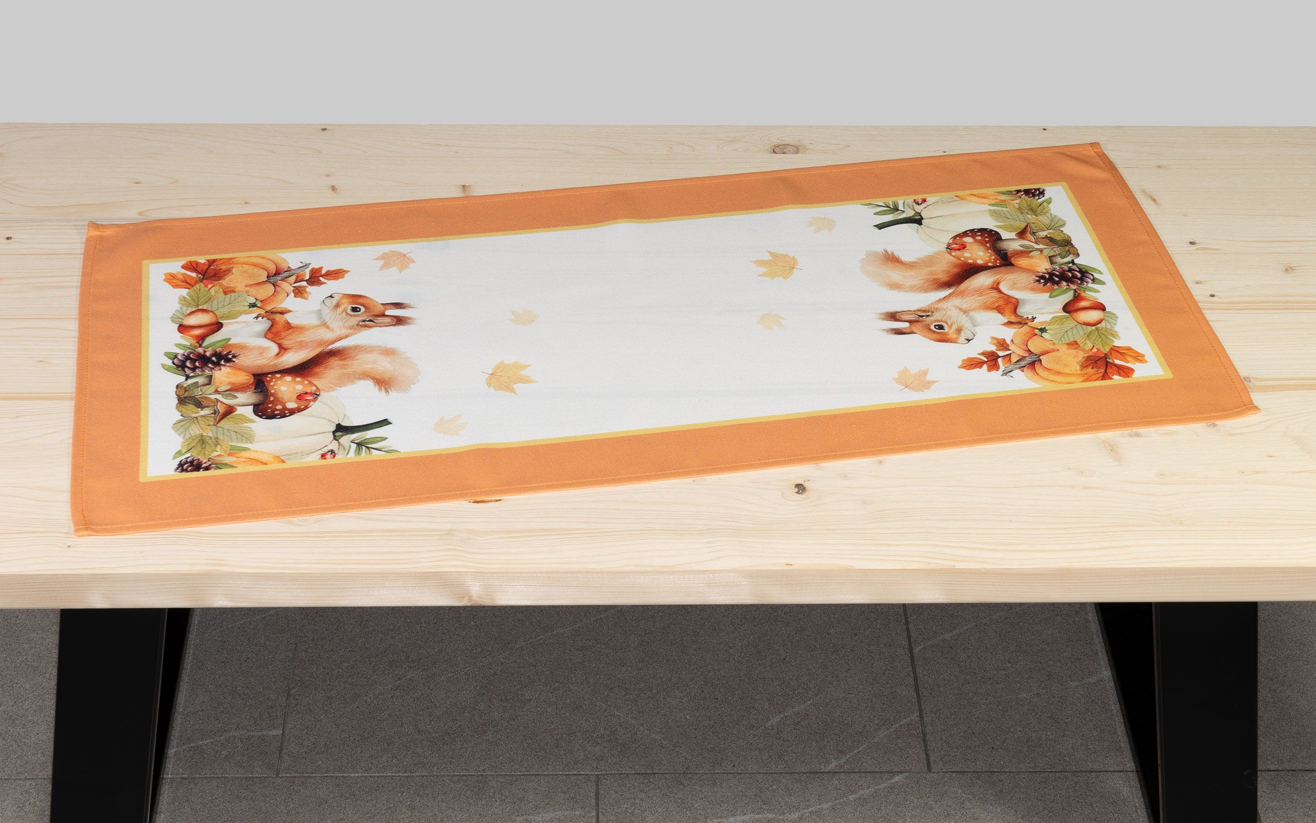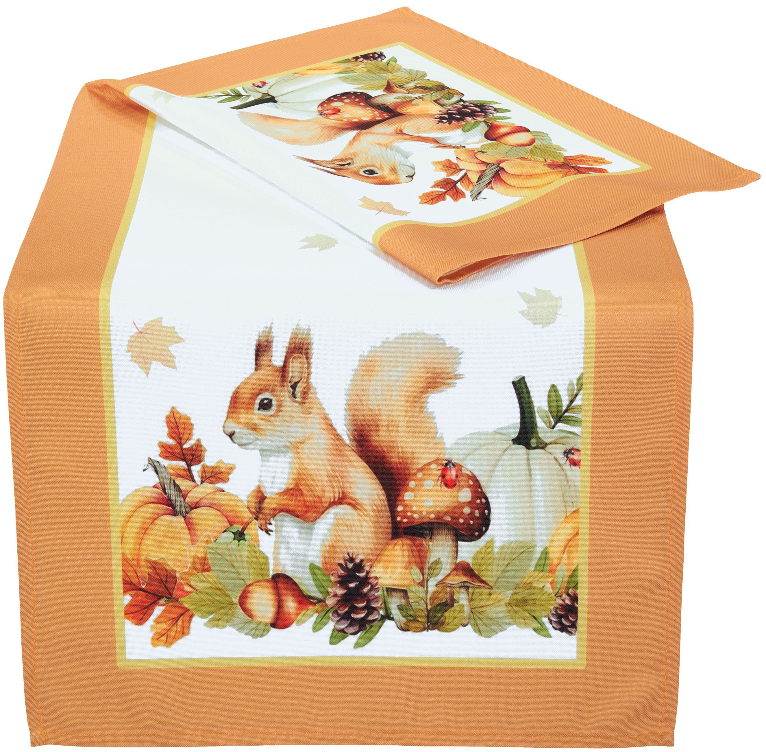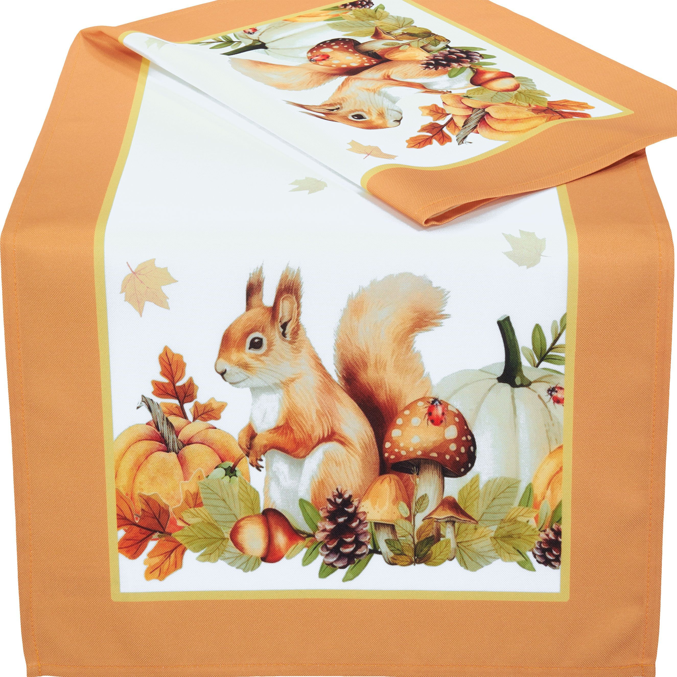 Tischläufer Herbst Tischdecke 40 x 90 Tischwäsche Halloween Eichhörnchen Orange