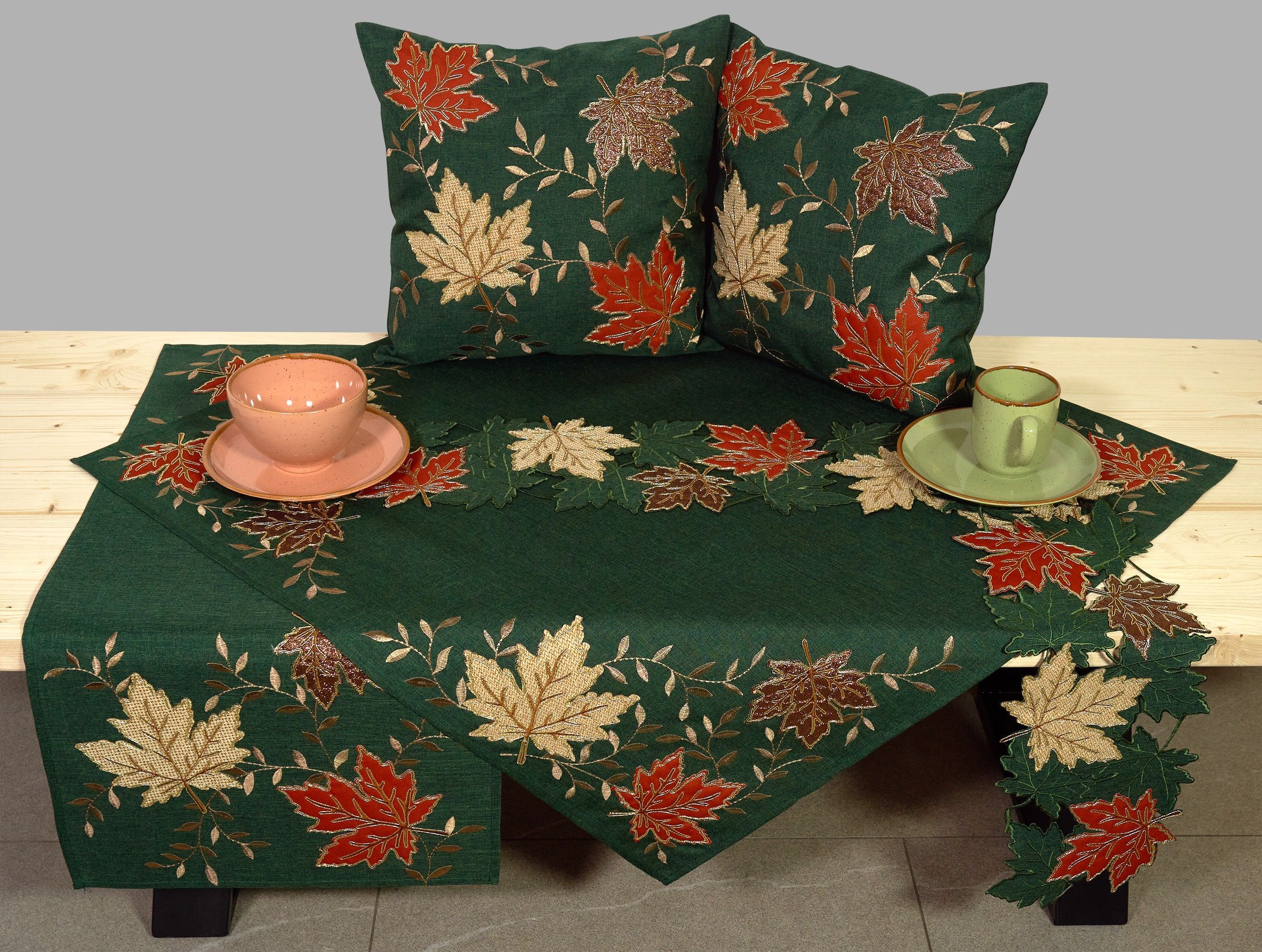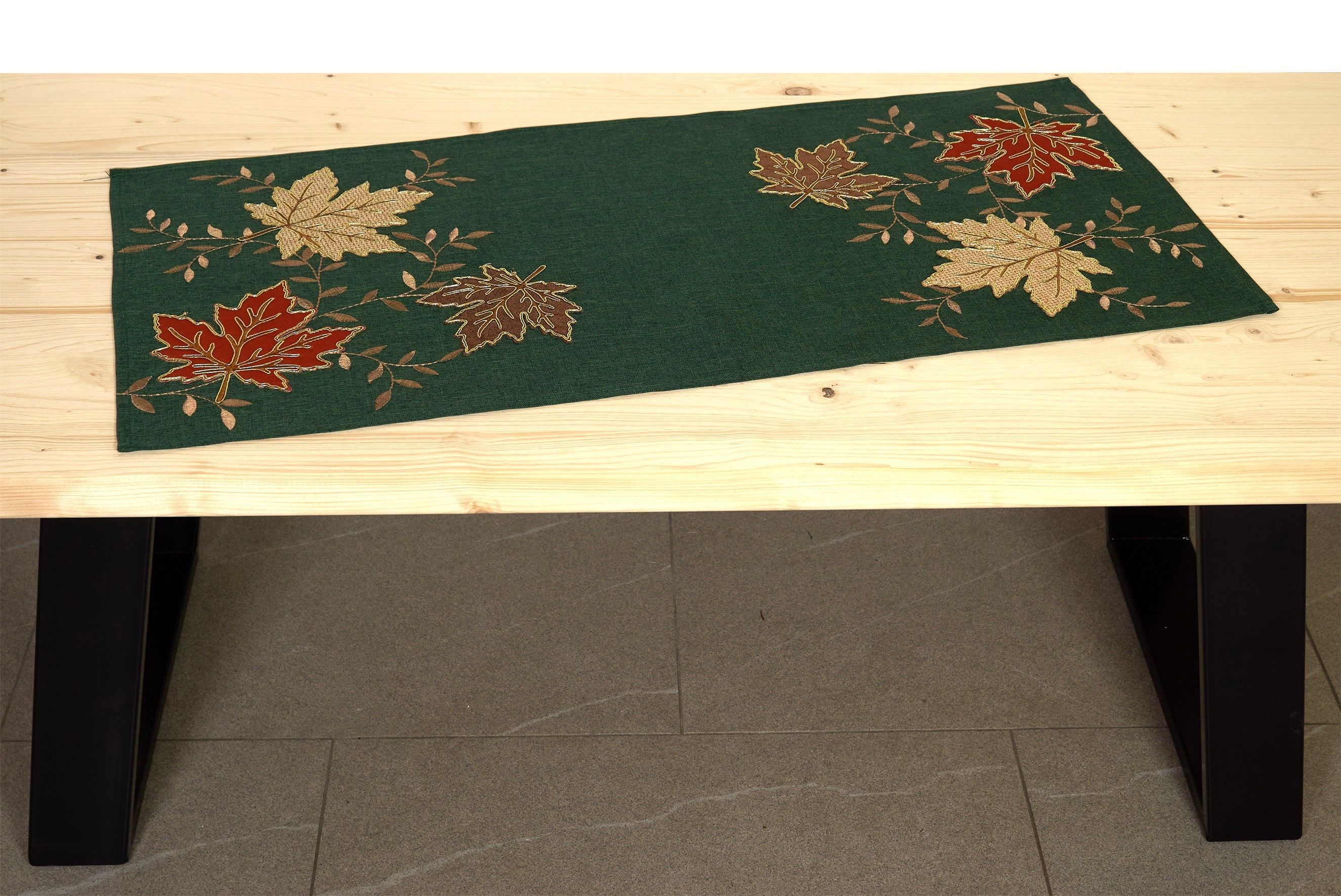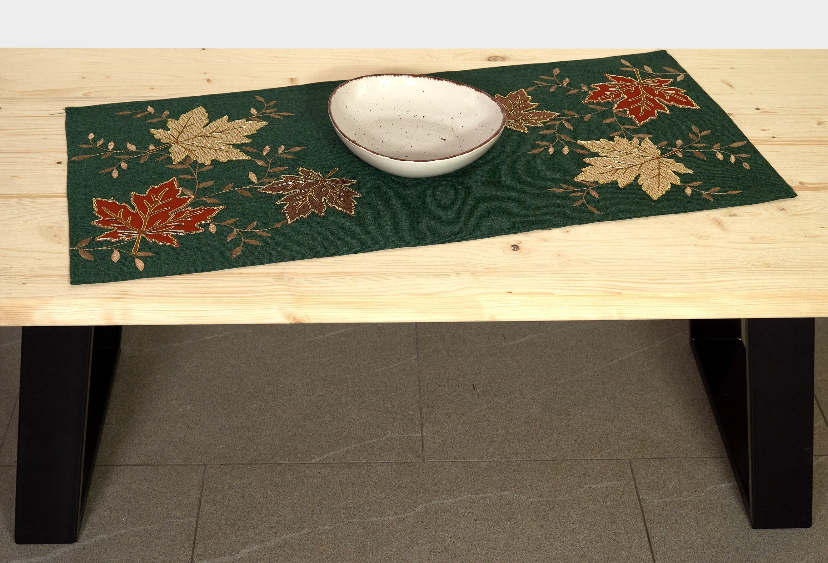 Tischläufer Herbstlich Tischdecke 40 x 90 Grün Bestickt Tischwäsche Herbst Ahorn