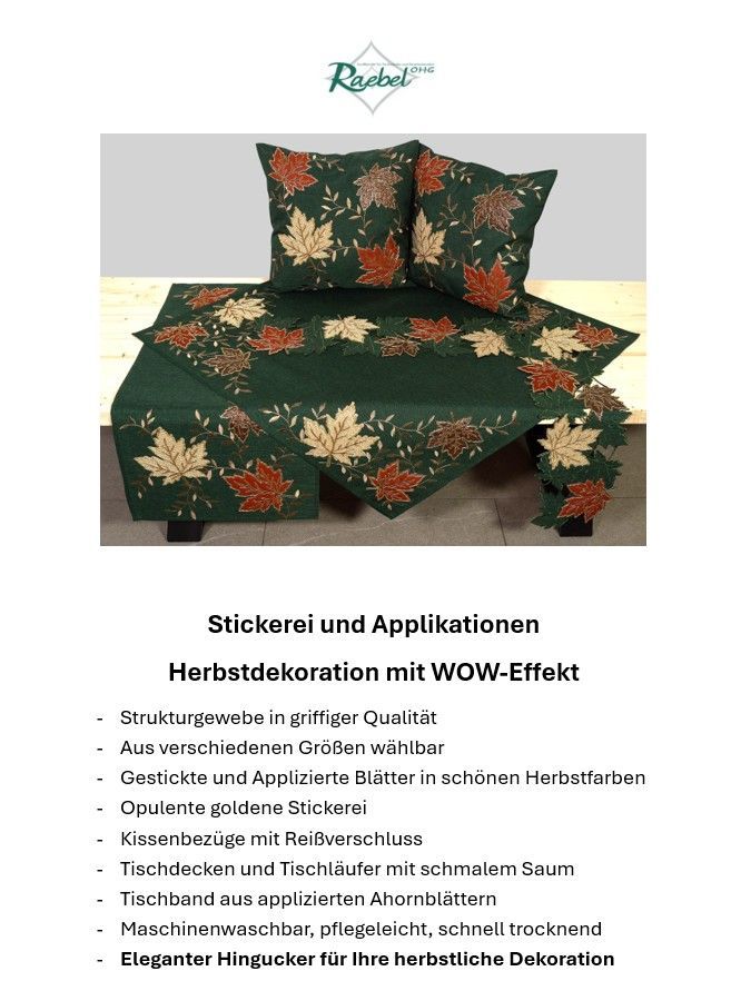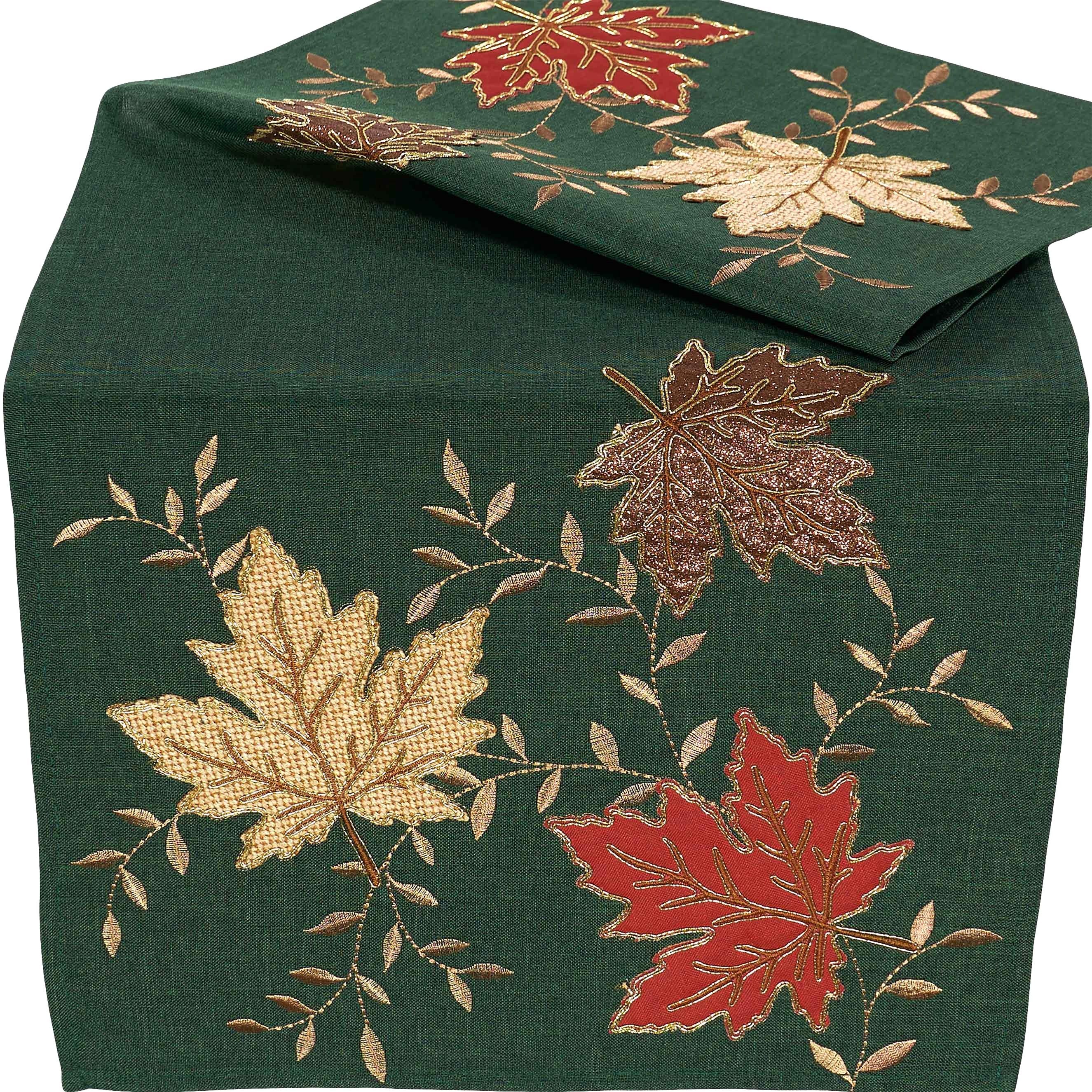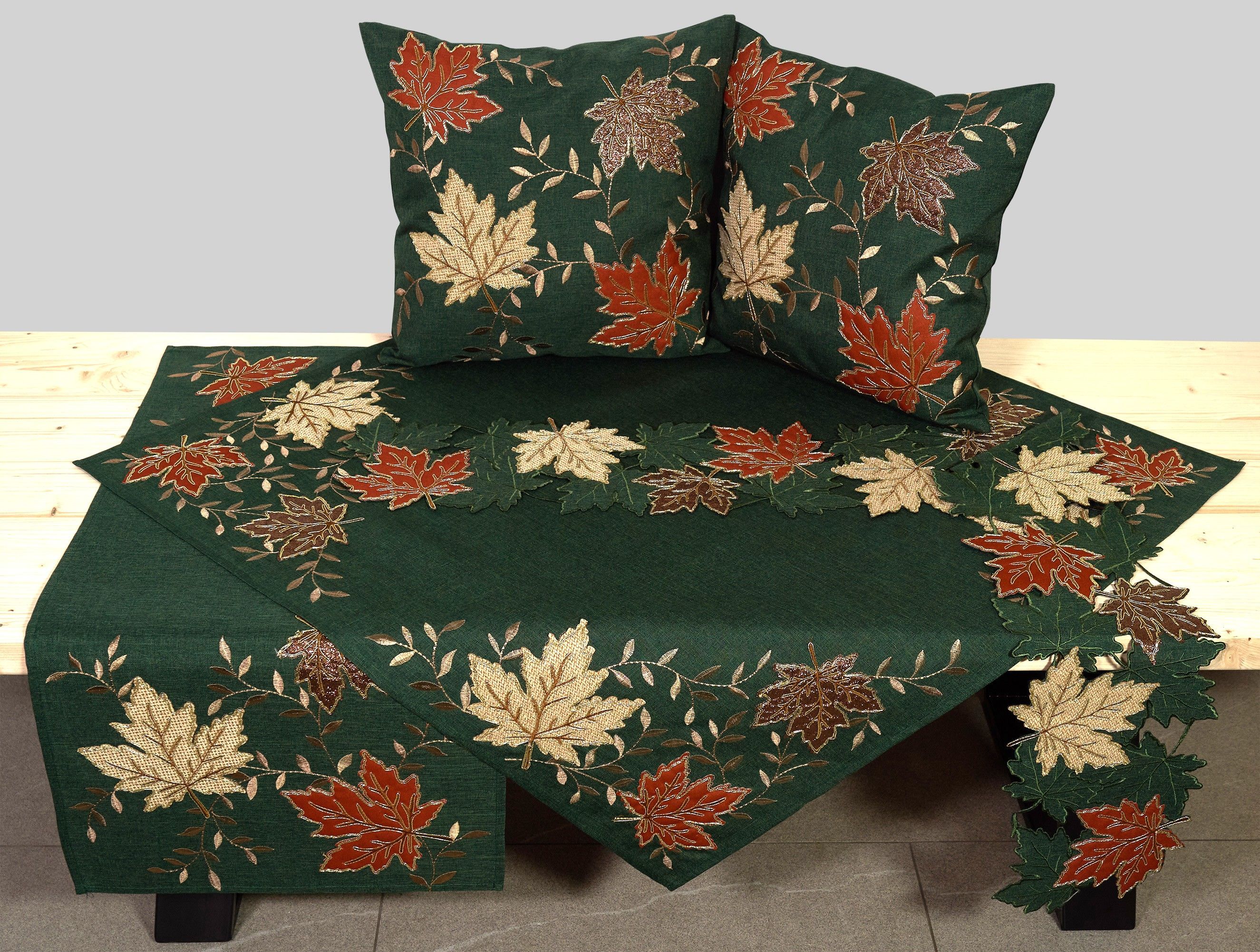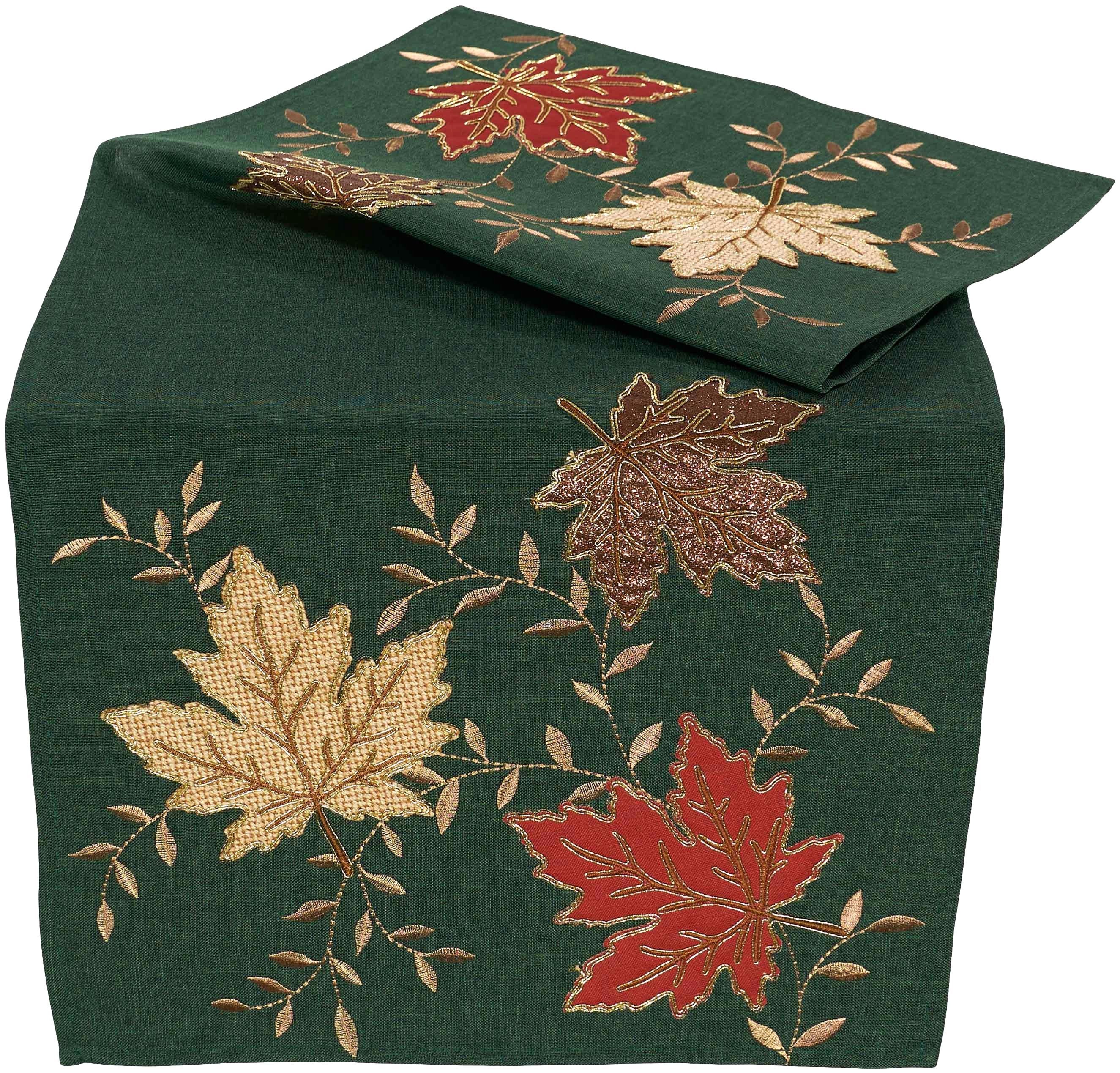 Tischläufer Herbstlich Tischdecke 40 x 90 Grün Bestickt Tischwäsche Herbst Ahorn