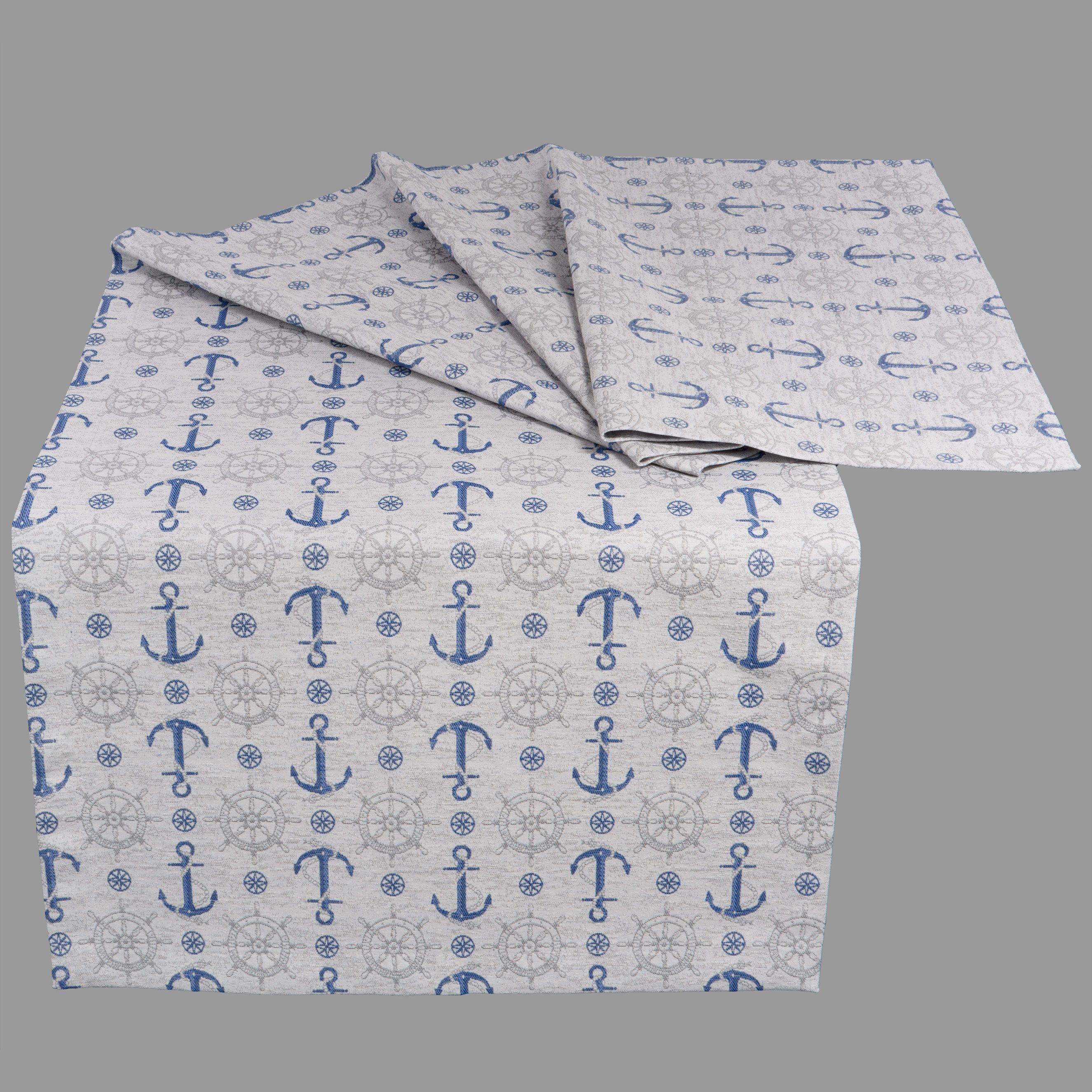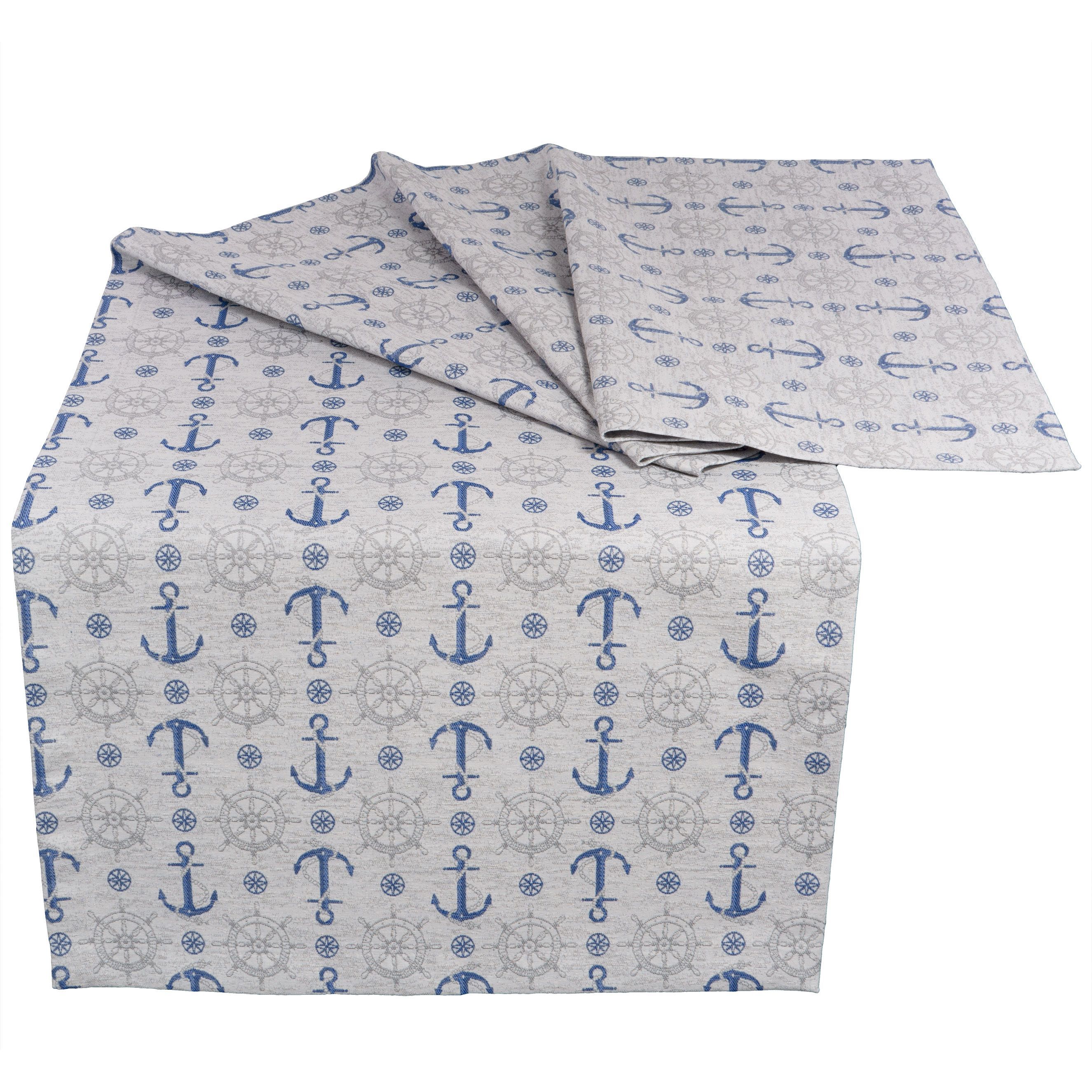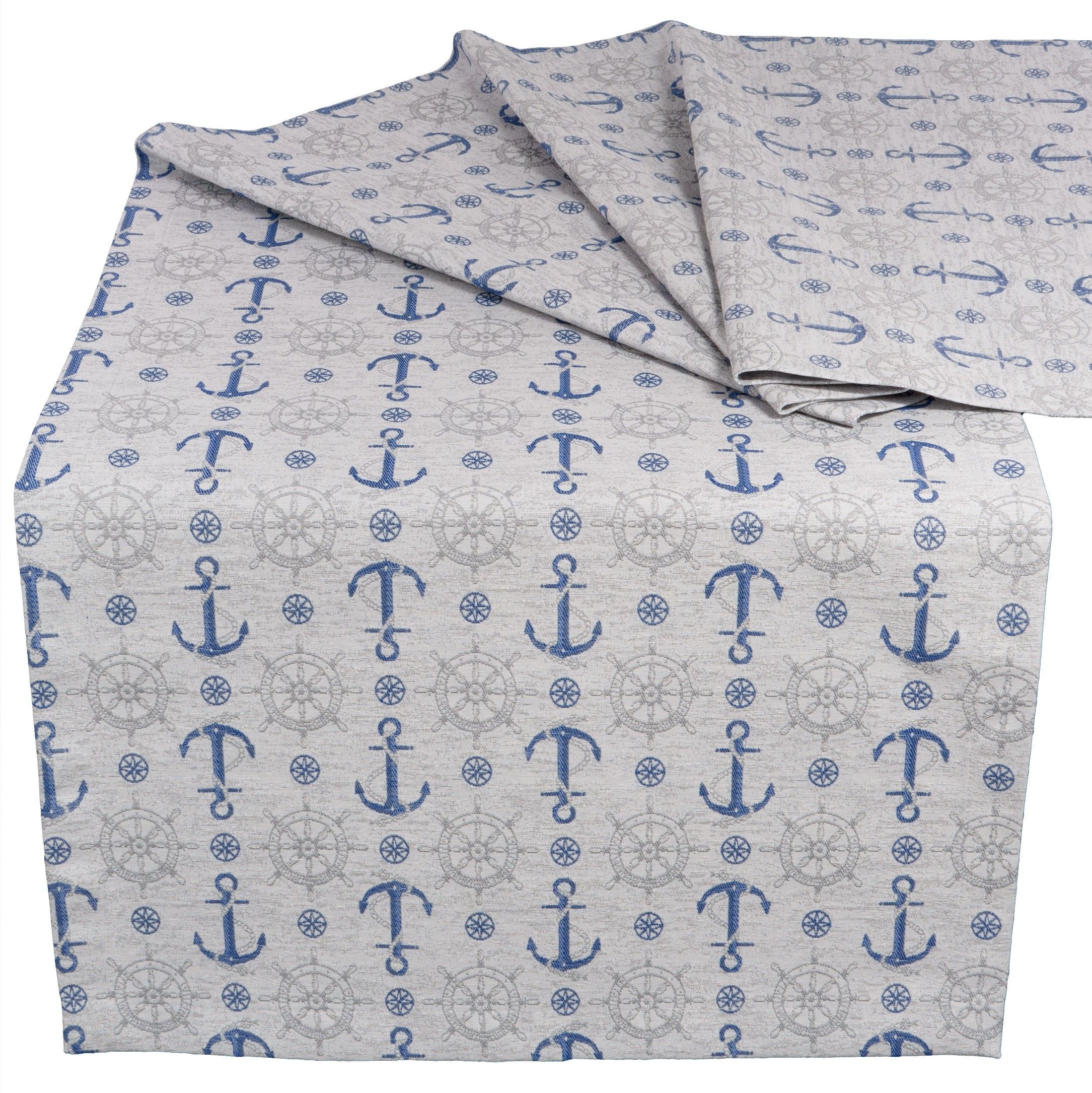 Tischläufer Maritim 50x150 Sandner Anker Tischdecke Aufleger Blau Tischdeko Hellgrau