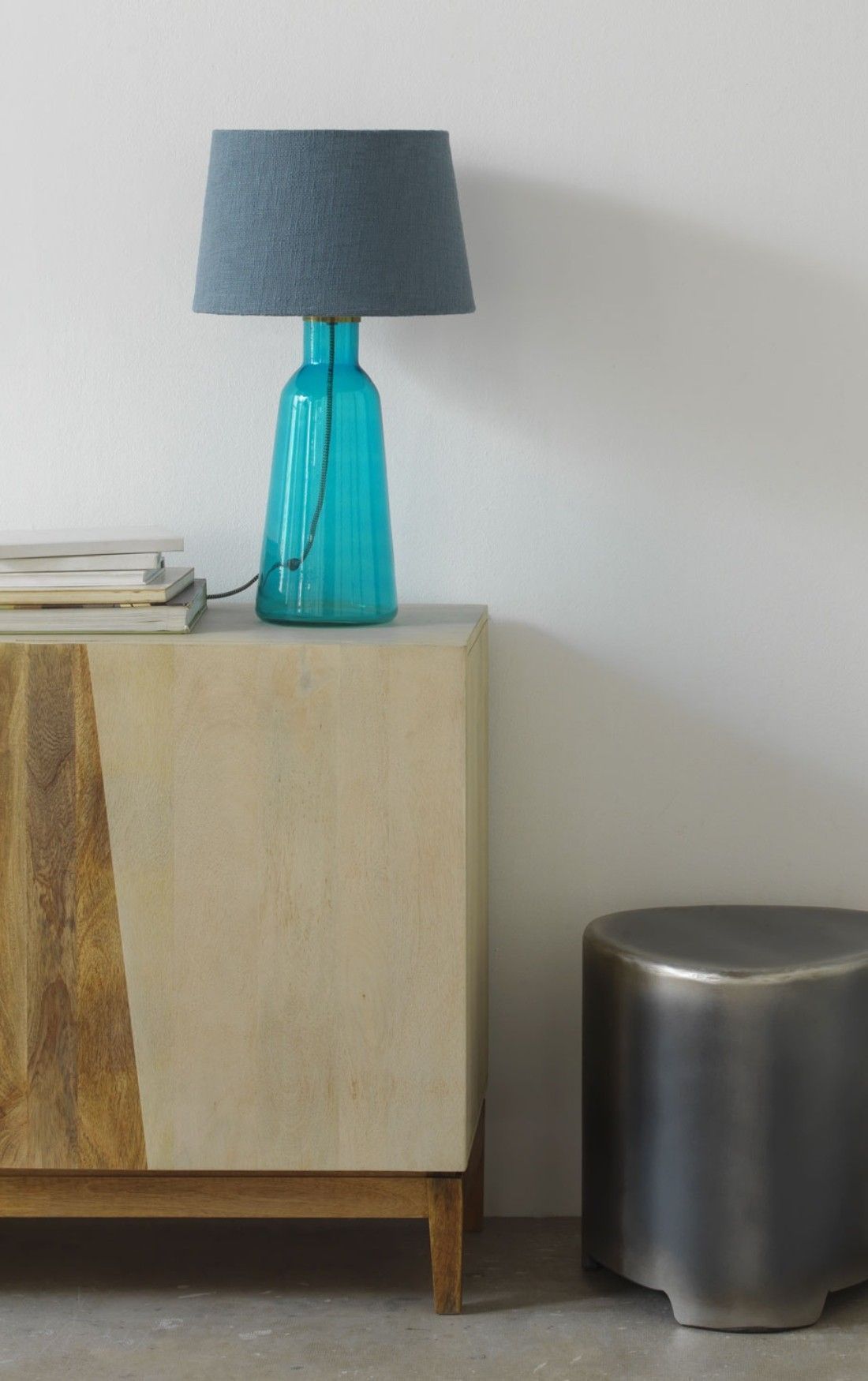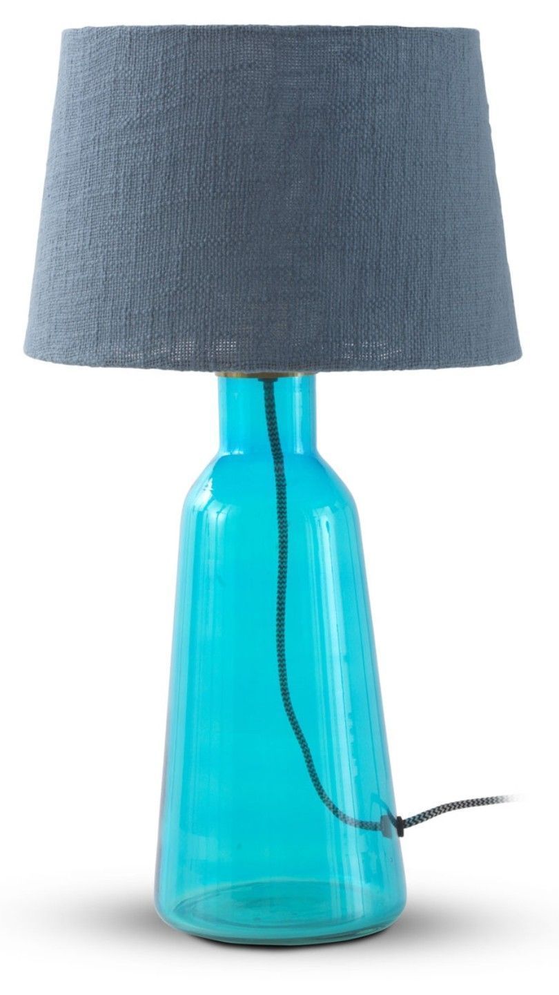 Tischlampe aus Glas mit blau Lampenschirm aus Baumwolle blau