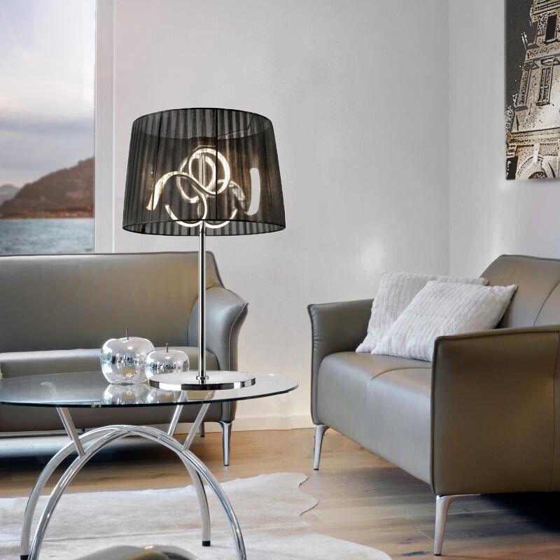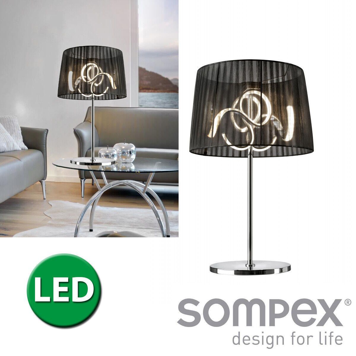 Sompex Tischlampe LED Design Tischleuchte modern Luxus Stoffschirm schwarz Wohnzimmer