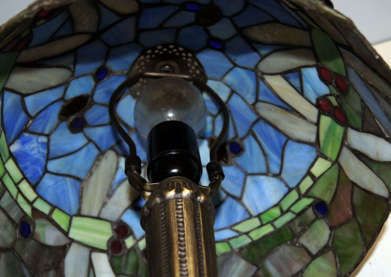 Tischlampe um 1970 (Jugendstil). Handarbeit im Tiffany-Stil. Sehr gute teure Ausführung. Material: Brüniertes Messing Glas. Für 1 Normalbirne E 27. Maße: H 45 cm. Sehr gut erhalten! Antikes am Deich - Inh: Oliver Kipp-Trense G M T Sprache erkennen Afrikaans Albanisch Arabisch Armenisch Aserbaidschan