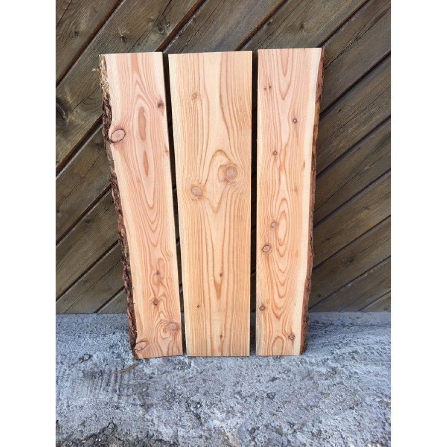Tischplatte für Eigenbau im Set, unbesäumte Bohlen, Baumscheibe, Bretter, Lärche 90x6