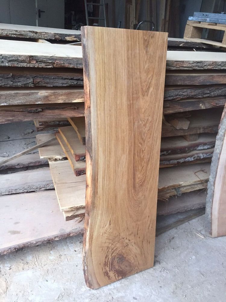 Tischplatte, Waschtisch, Eiche, unbes./ gerade, geölt, Baumkante, rustikal 100x50