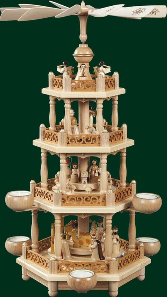 Tischpyramide Christi Geburt 3 stöckig mit Teelichter natur Höhe= 55cm NEU Holzpy