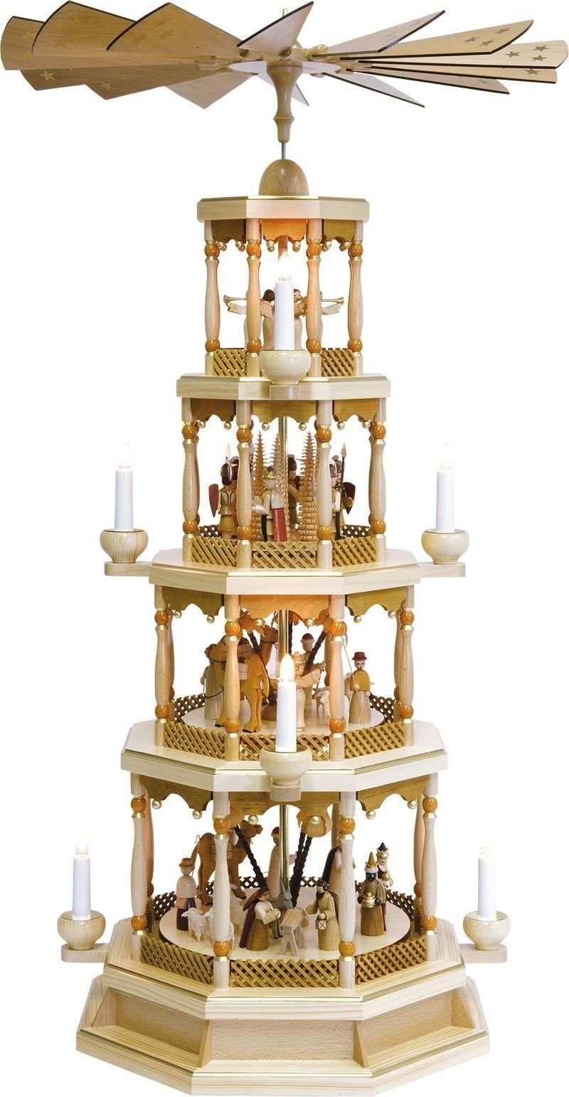 Tischpyramide Christi Geburt 4 stöckig natur elektrisch Höhe= 100cm NEU Holzpyram