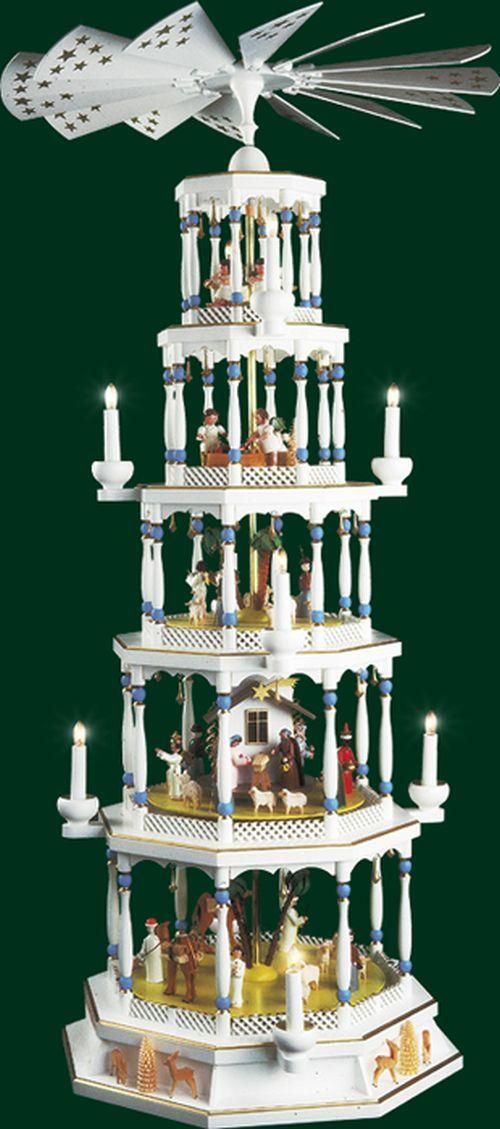Tischpyramide Christi Geburt 5 stöckig bunt mit Spielwerk elektrisch Höhe= 123cm
