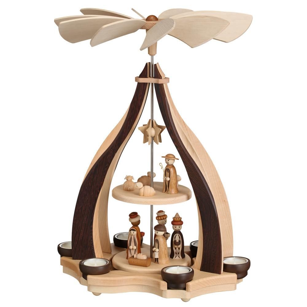 Tischpyramide Christi Geburt natur mit Teelichter HxLxB 47,5x34x34cm NEU